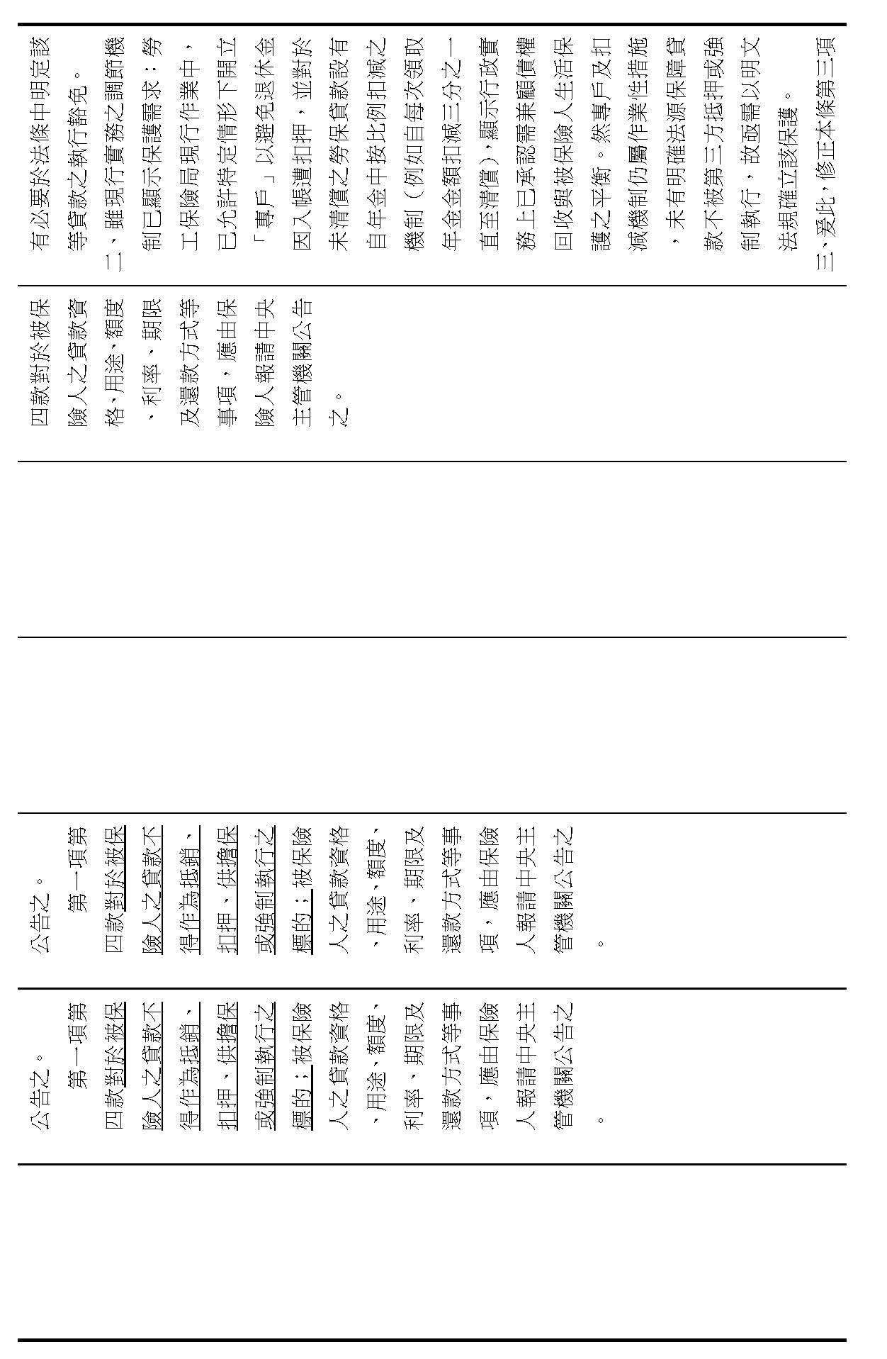 陳司長美女:現行第六十七條規範「第一項第四款對於被保險人之貸款資格、用途、額度、利率、期限及還款方式等事項,應由保險人報請中央主管機關公告之」,這個是我們紓困貸款在辦理公告的依據。委員陳秀寳等21人及委員廖先翔等18人的提案都是在第六十七條第三項增訂「對於被保險人之貸款不得作為抵銷、扣押、供擔保或強制執行之標的」,就是剛剛主席討論的第二十九條規定,剛剛已經修正了第二十九條第二項,委員的兩個提案都可以落實貸款的目的。但如果依照提案是在第六十七條明定的話,其沒有提到要設立專戶,只有提到不得作為抵銷、扣押、供擔保或強制執行,那麼這個專戶的來源就有可能是自己的存款、薪資或者是貸款的本金,而入帳了以後,就會沒有辦法分辨款項到底是不是貸款的本金,就仍然可能受到強制執行。所以我們建議把這個條文移列到剛剛講的第二十九條,在第二項增列,就是得以開立專戶,專供存入貸款本金之用,以利明確保障做法跟完備法制體例,以上報告。