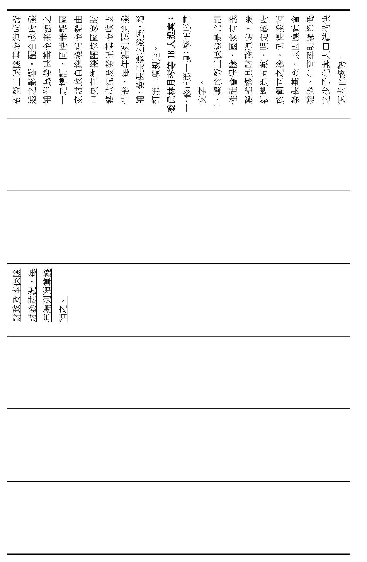 (二)委員林月琴等16人擬具「勞工保險條例第六十六條及第六十九條條文修正草案」案。