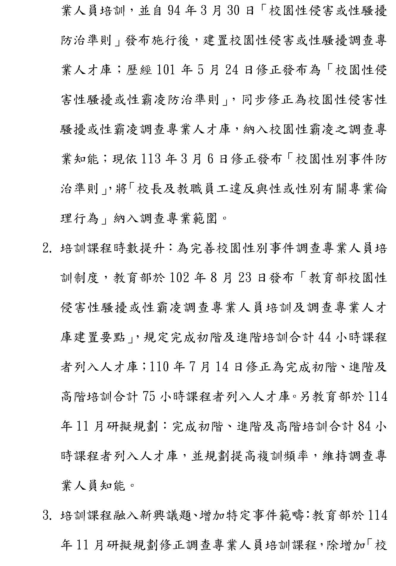 最後,希望透過制度化、專業化跟透明化這樣的改革,能夠回應社會對於校園性別事件調查公正性的期待,真正落實性平教育的精神。以上,謝謝。