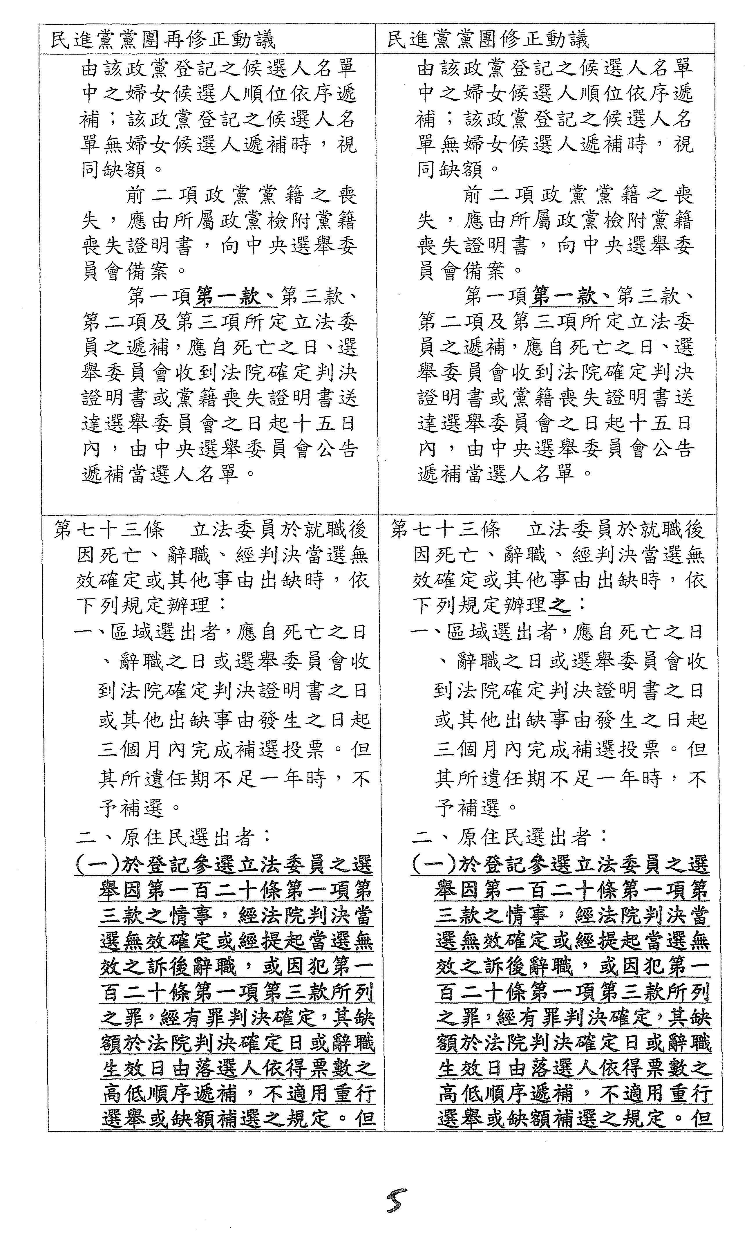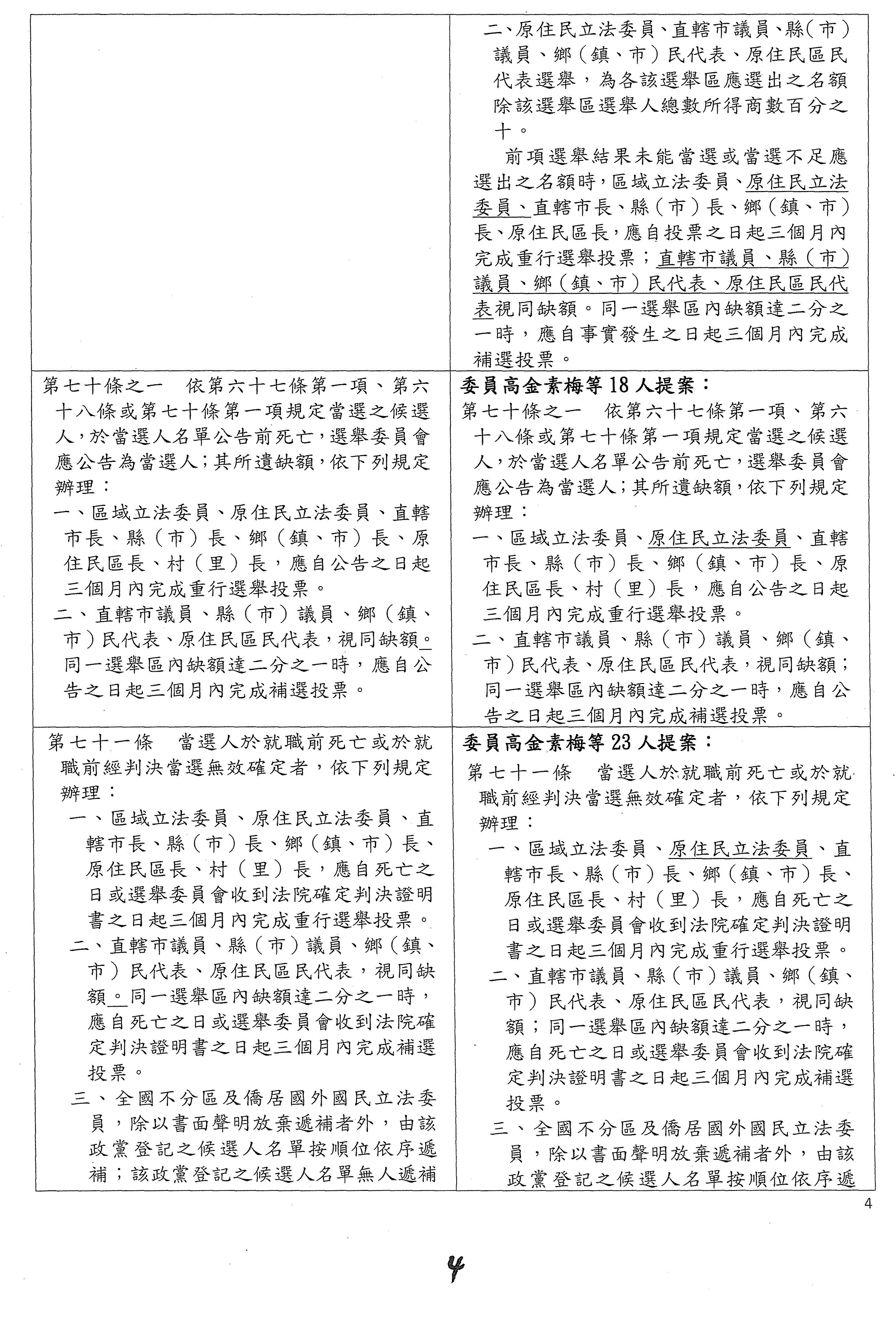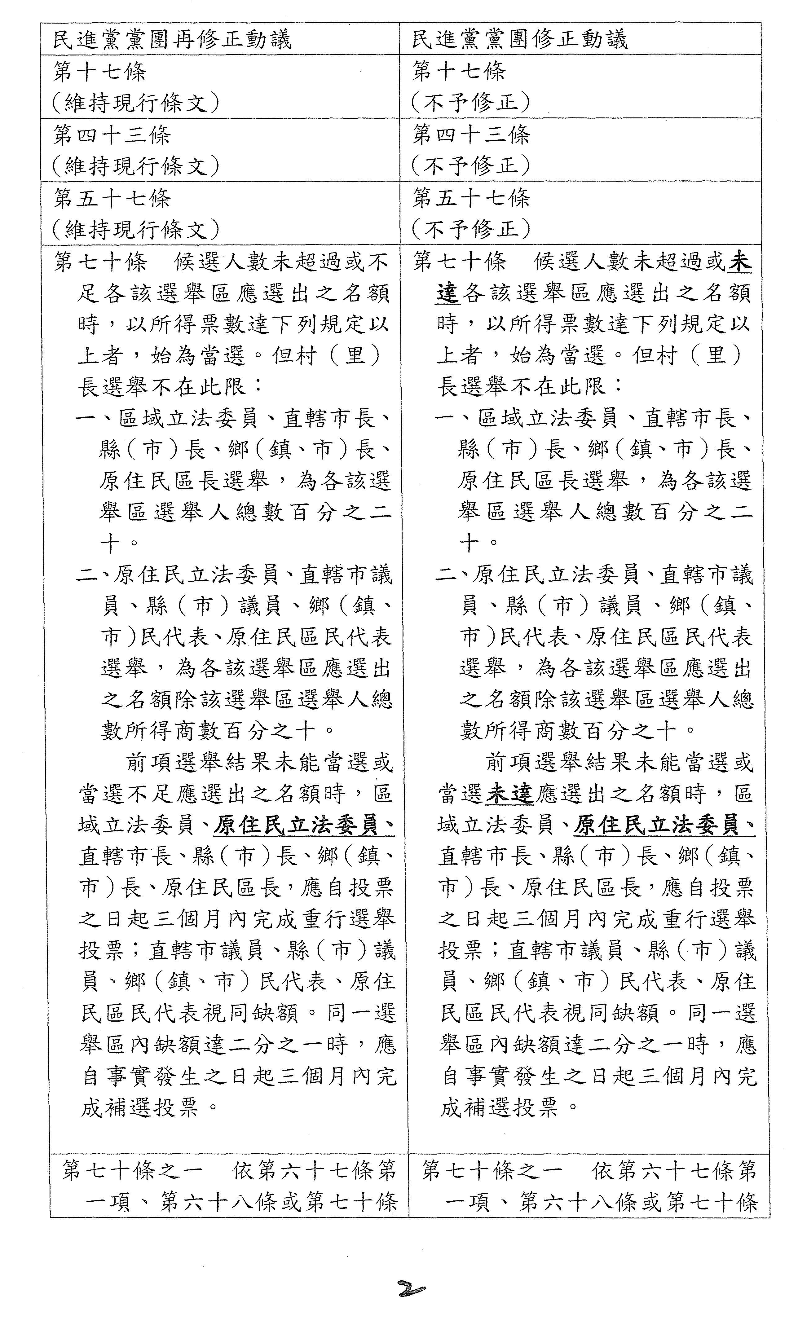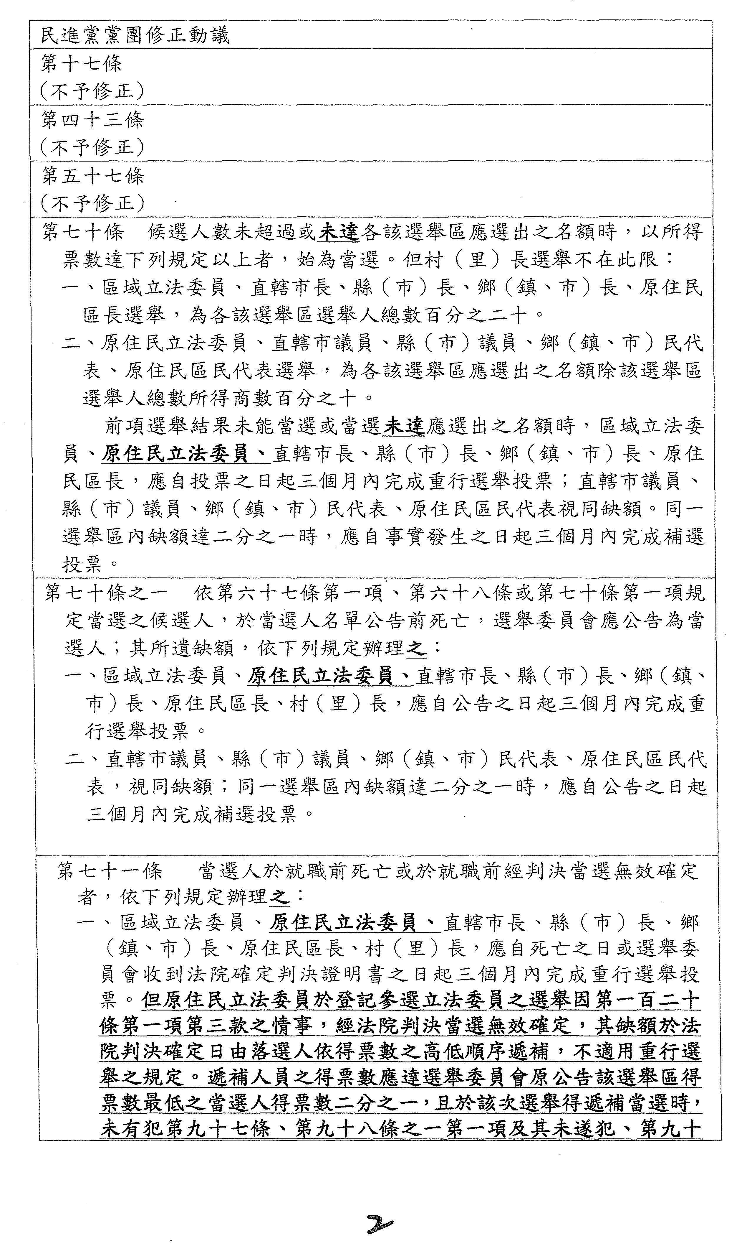 主席:補充說明:第七十條,國民黨黨團、民進黨黨團再修正動議條文相同,列入公報紀錄。