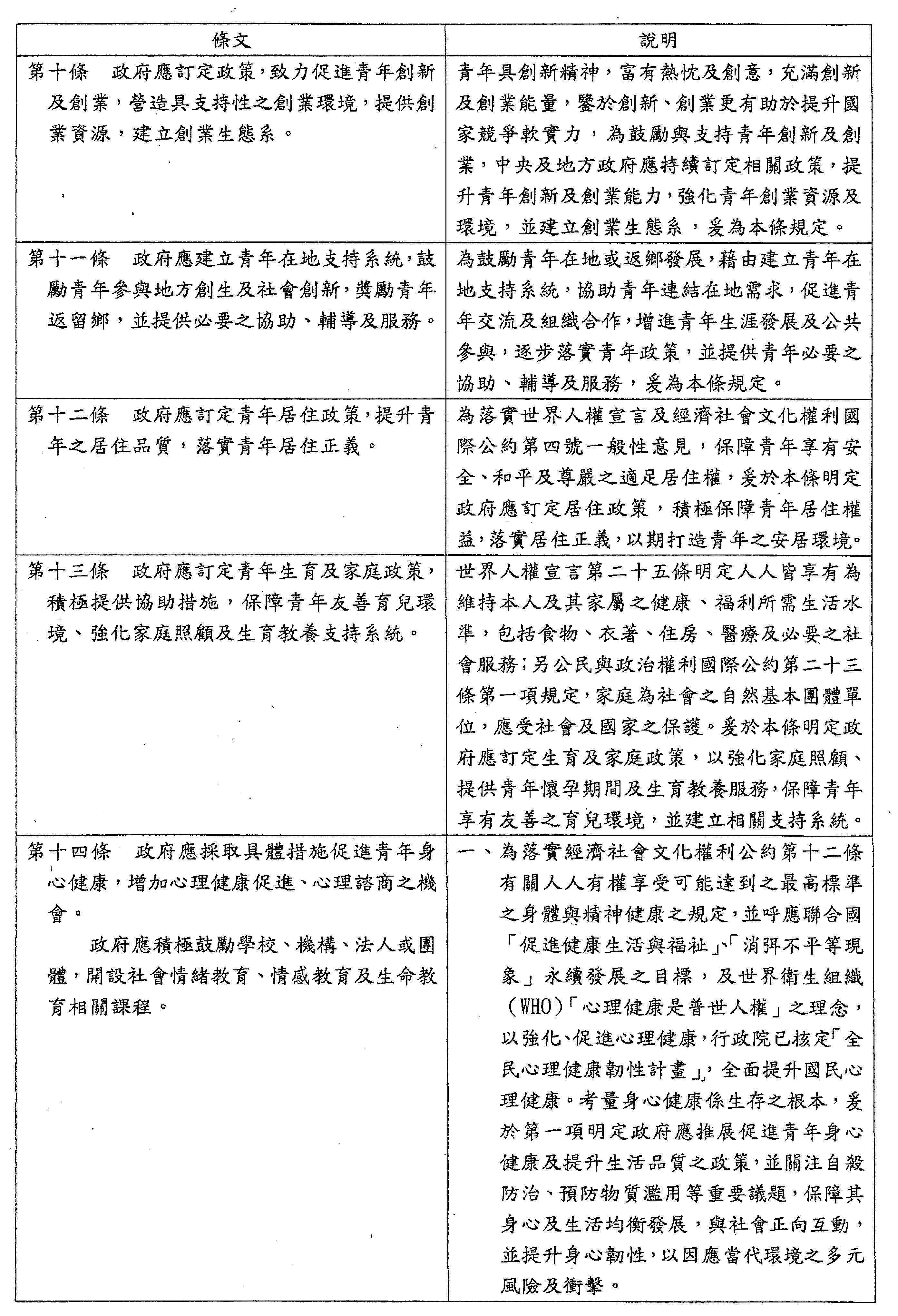在這裡我們希望去強調,應該的「應」與「得」的差別非常大,「得」代表可以不做,但是「應」就代表國家對青年的承諾,站在照顧青年的立場,我們認為應該要明確的設立青年發展基金,才能夠展現政府對青年政策的決心。