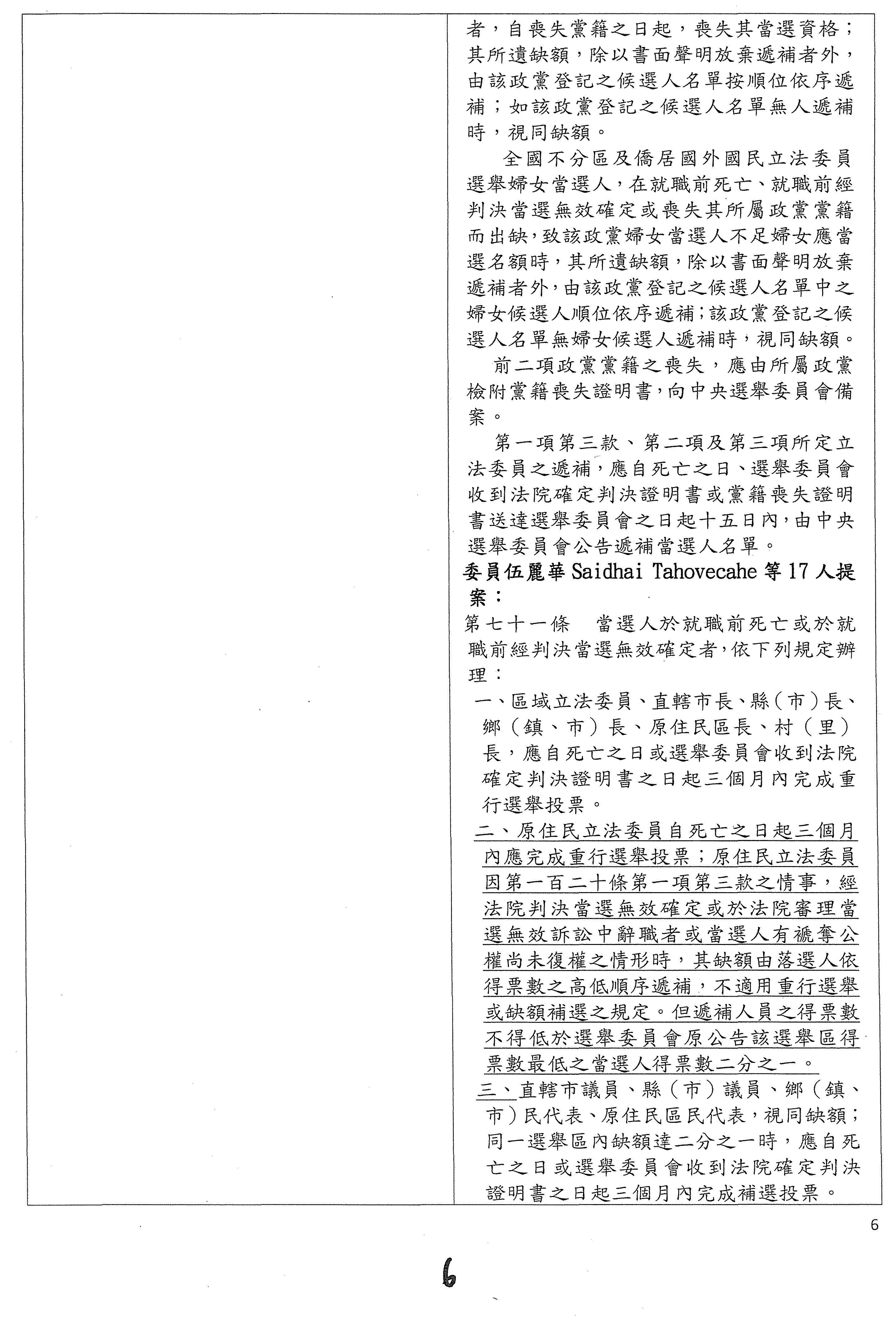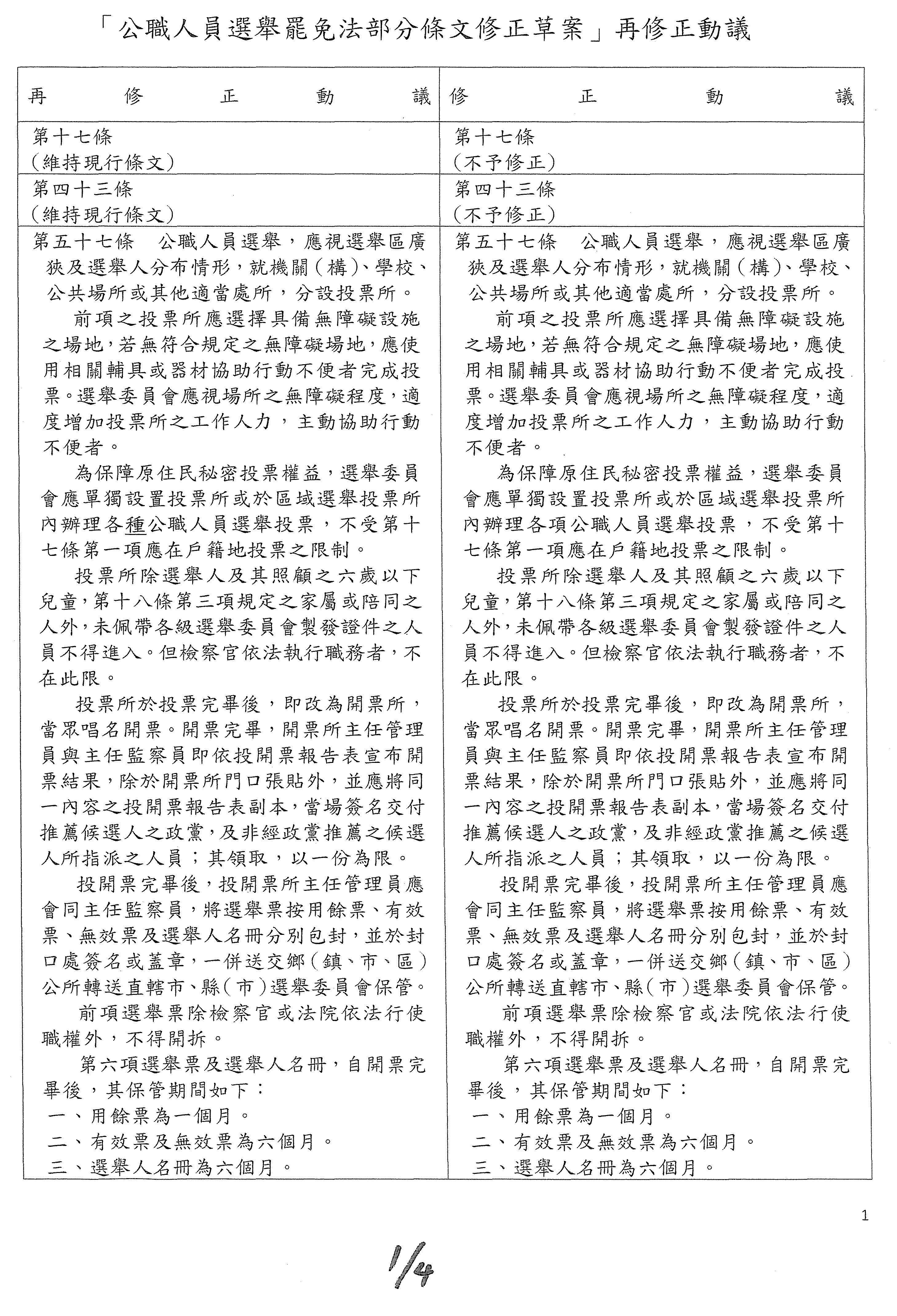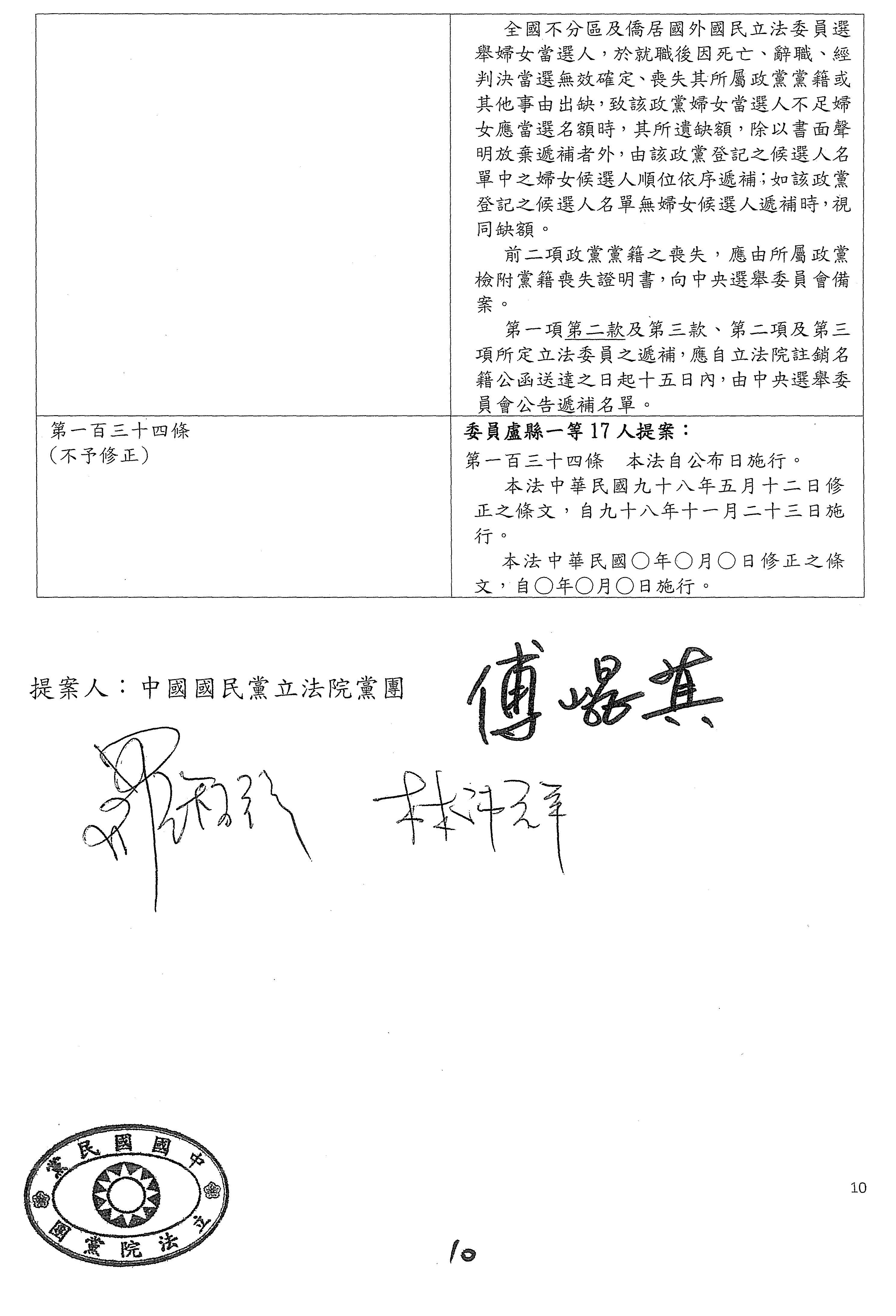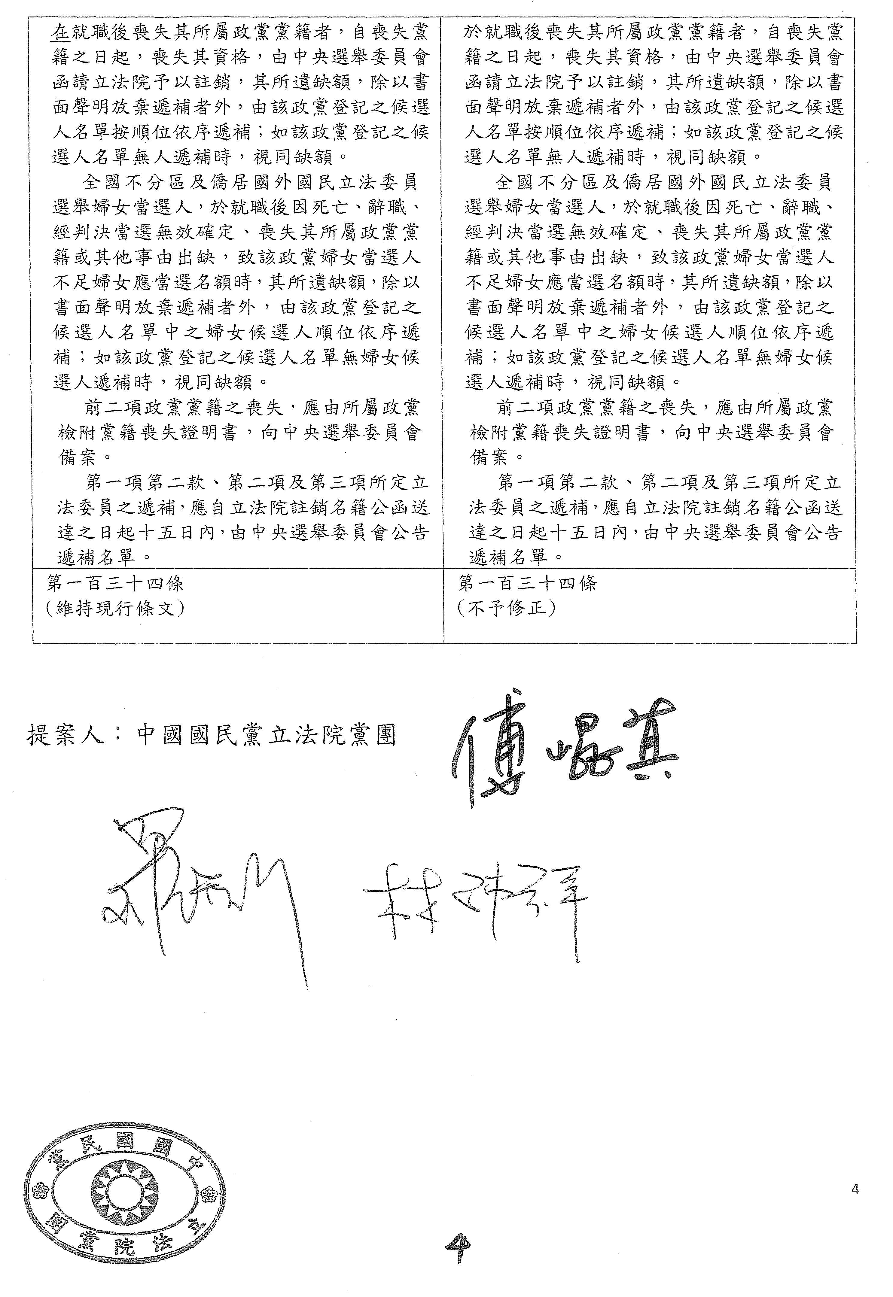 主席:我們現在開始表決國民黨黨團再修正動議條文。