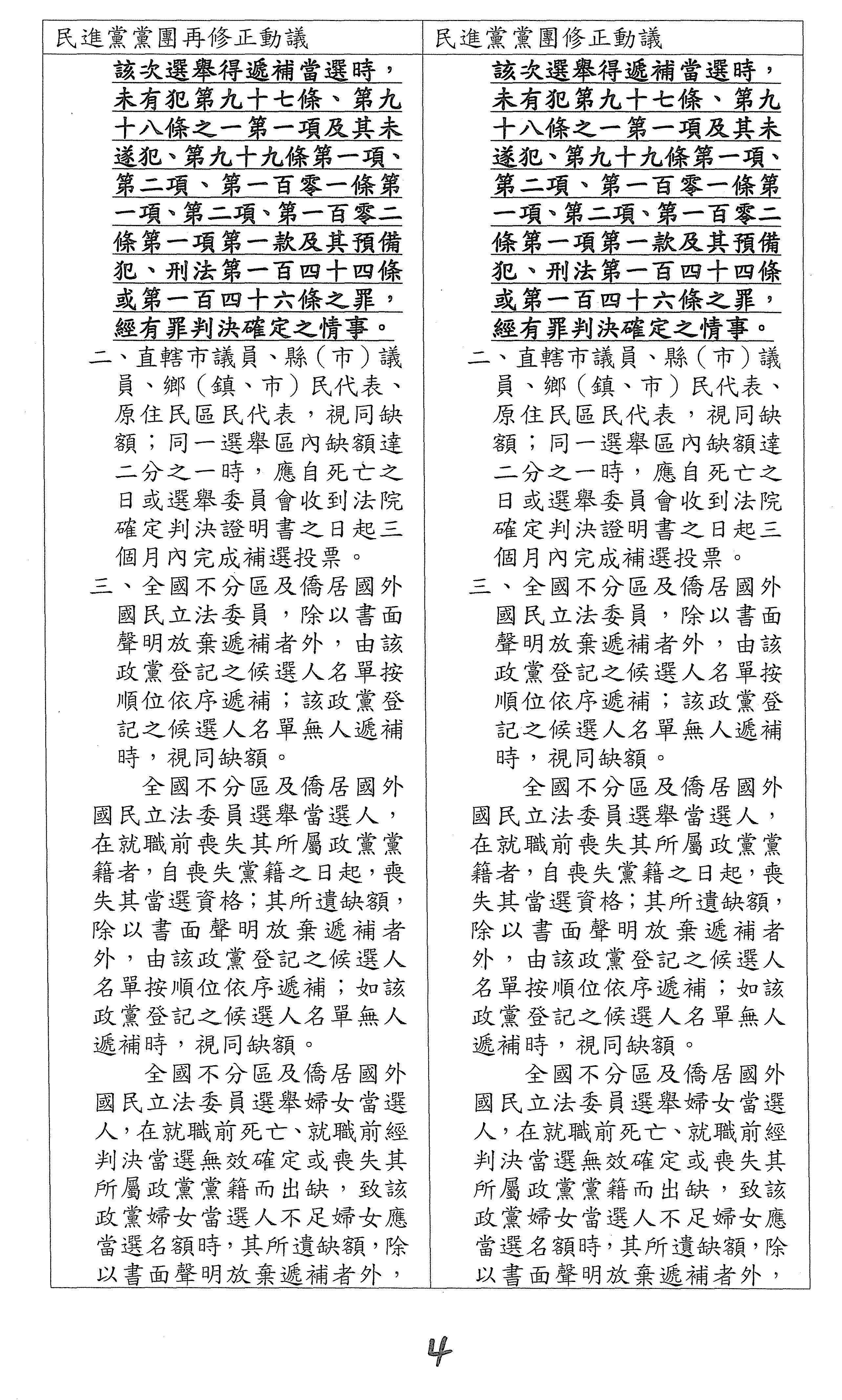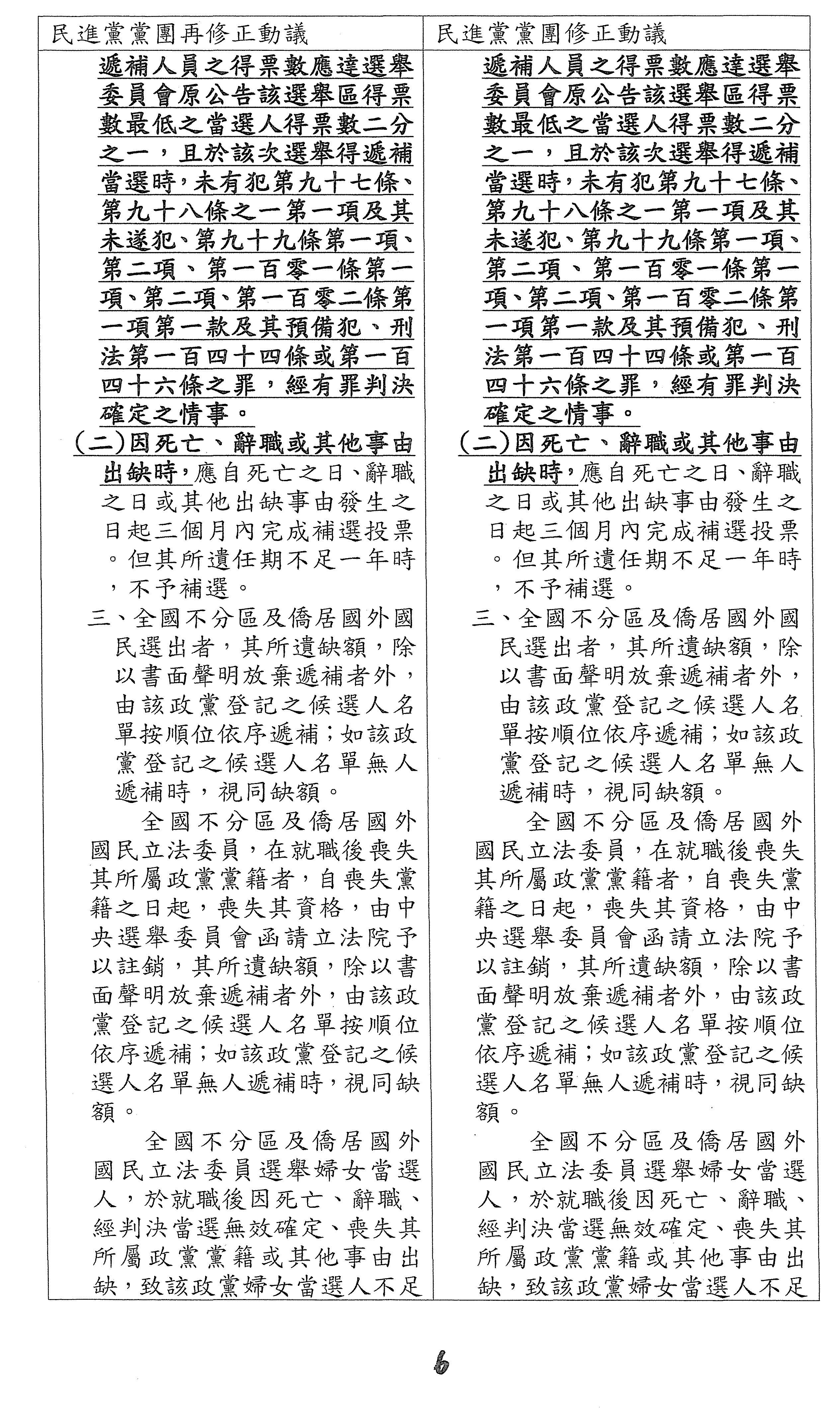 主席:報告院會,第七十條之一,民進黨黨團、國民黨黨團分別所提再修正動議條文相同,一併進行處理。