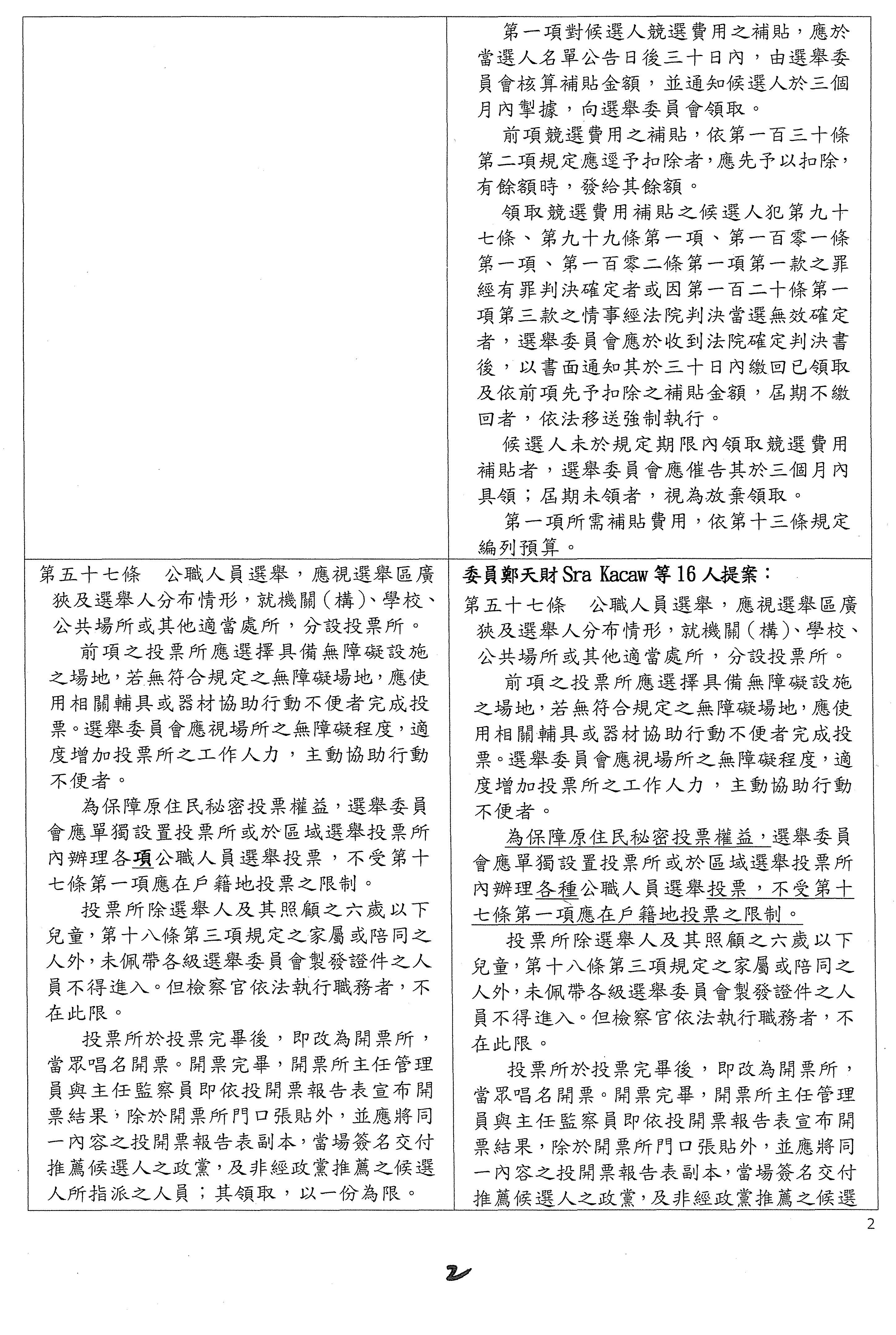 公職人員選舉罷免法修正第五十七條、第七十條至第七十一條及第七十三條條文(三讀)