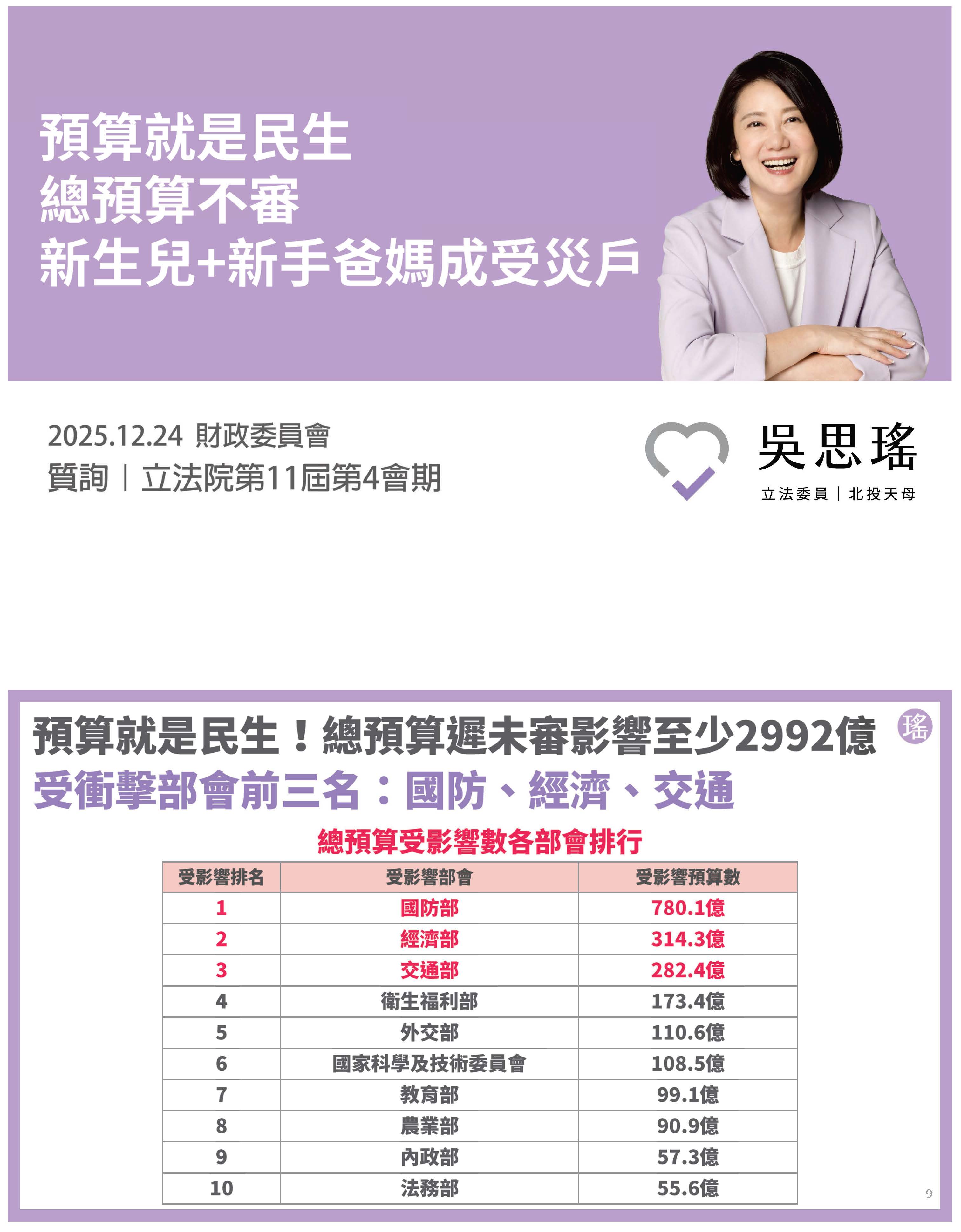 今天是就「115年度中央政府總預算案至今尚未審查,近3,000億元之新興、新增計畫將無法推動,對國家整體發展之影響」進行專題報告。