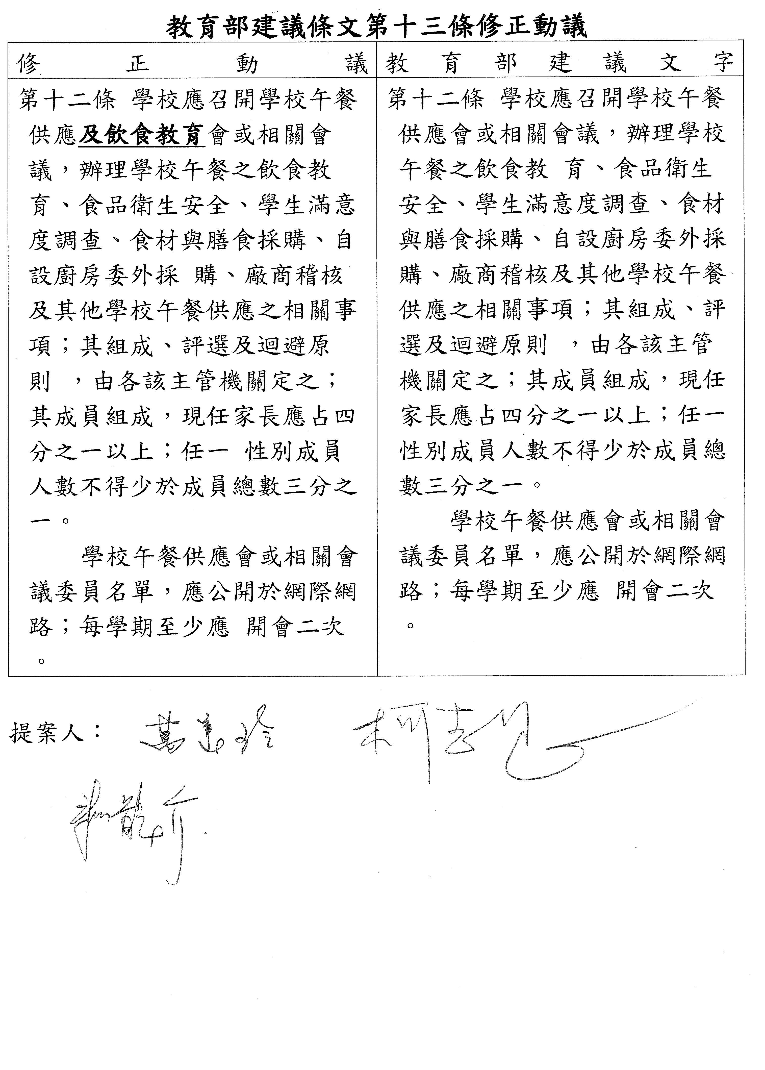 (十二)委員柯志恩等21人擬具「學校午餐及飲食教育條例草案」案。