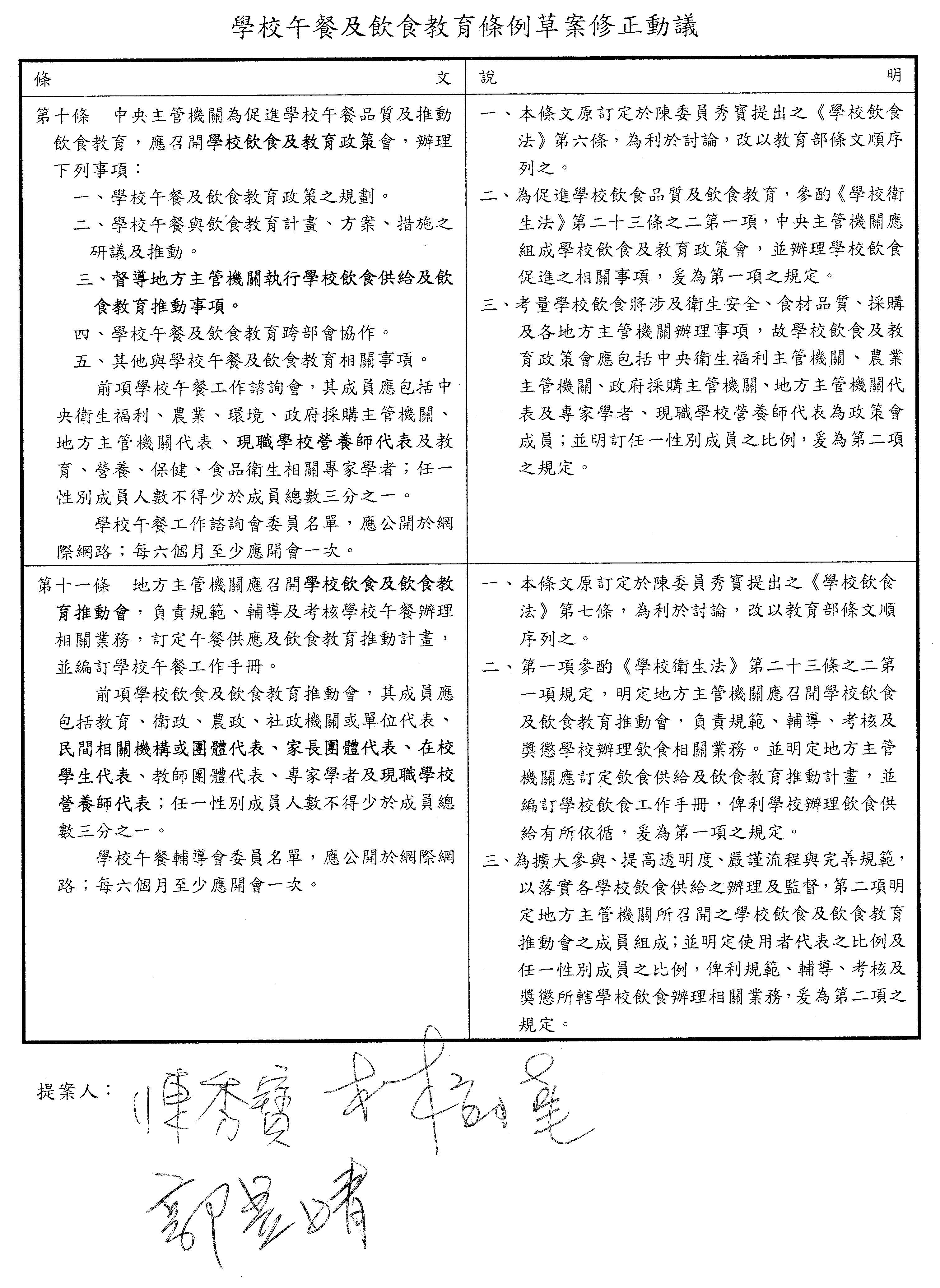 (十)委員郭昱晴等16人擬具「學校午餐及飲食教育法草案」案。