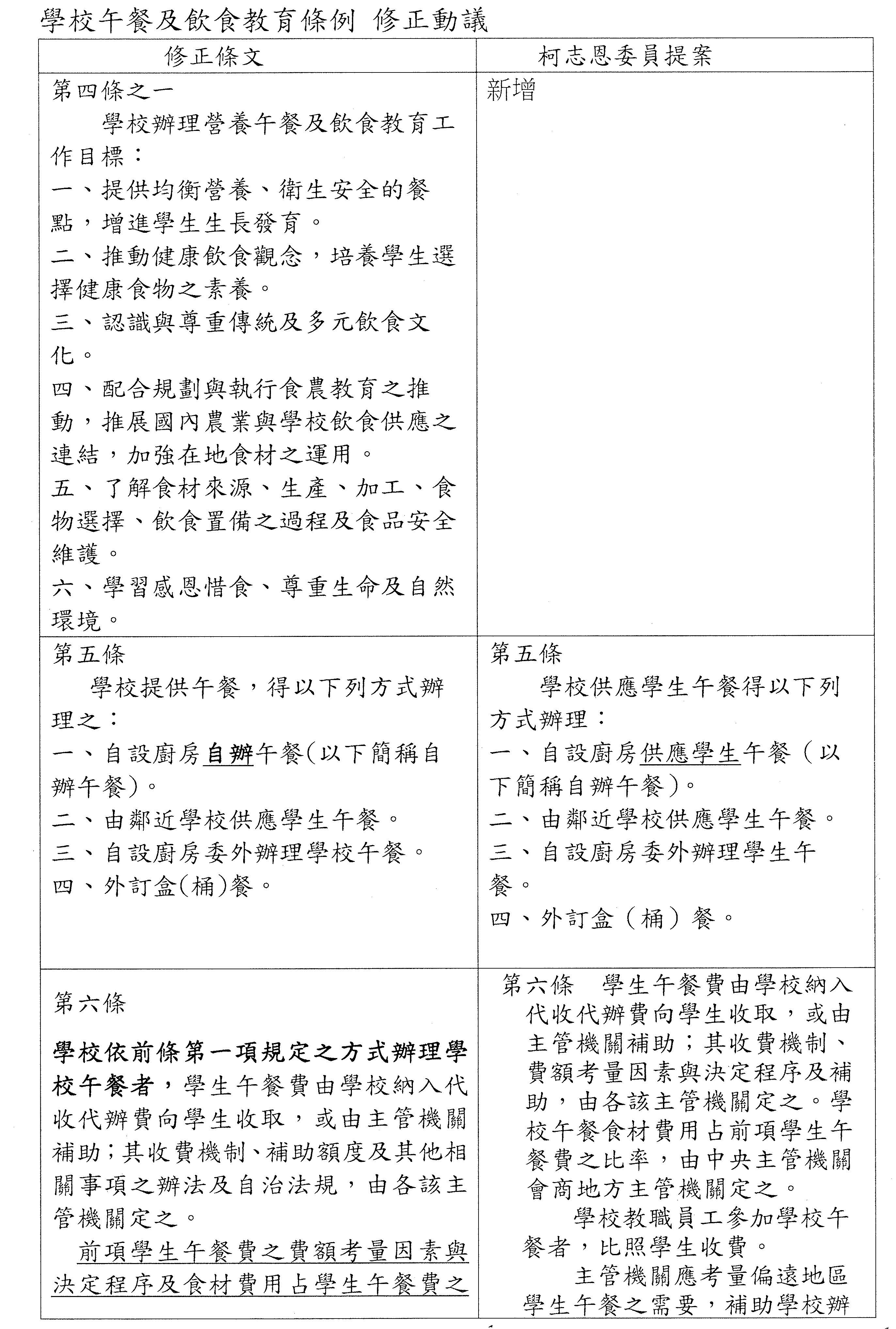 (四)委員王育敏等17人擬具「學校供餐法草案」案。