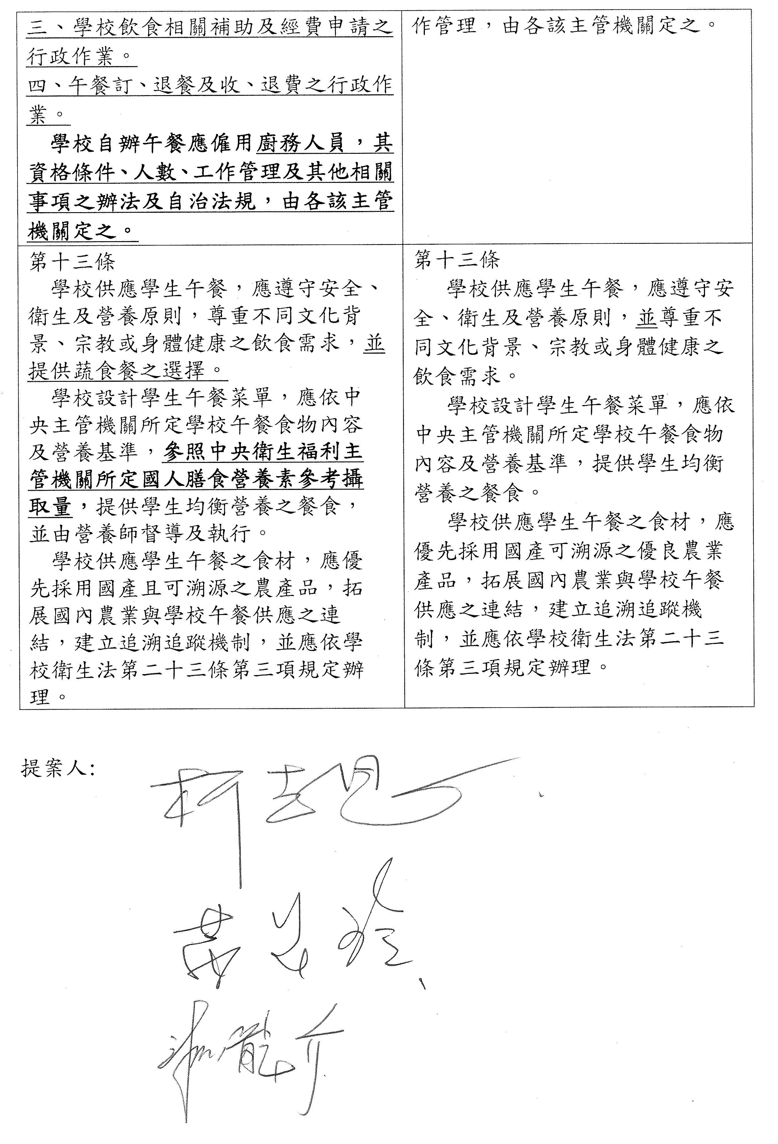 (三)委員魯明哲等24人擬具「學校供餐法草案」案。