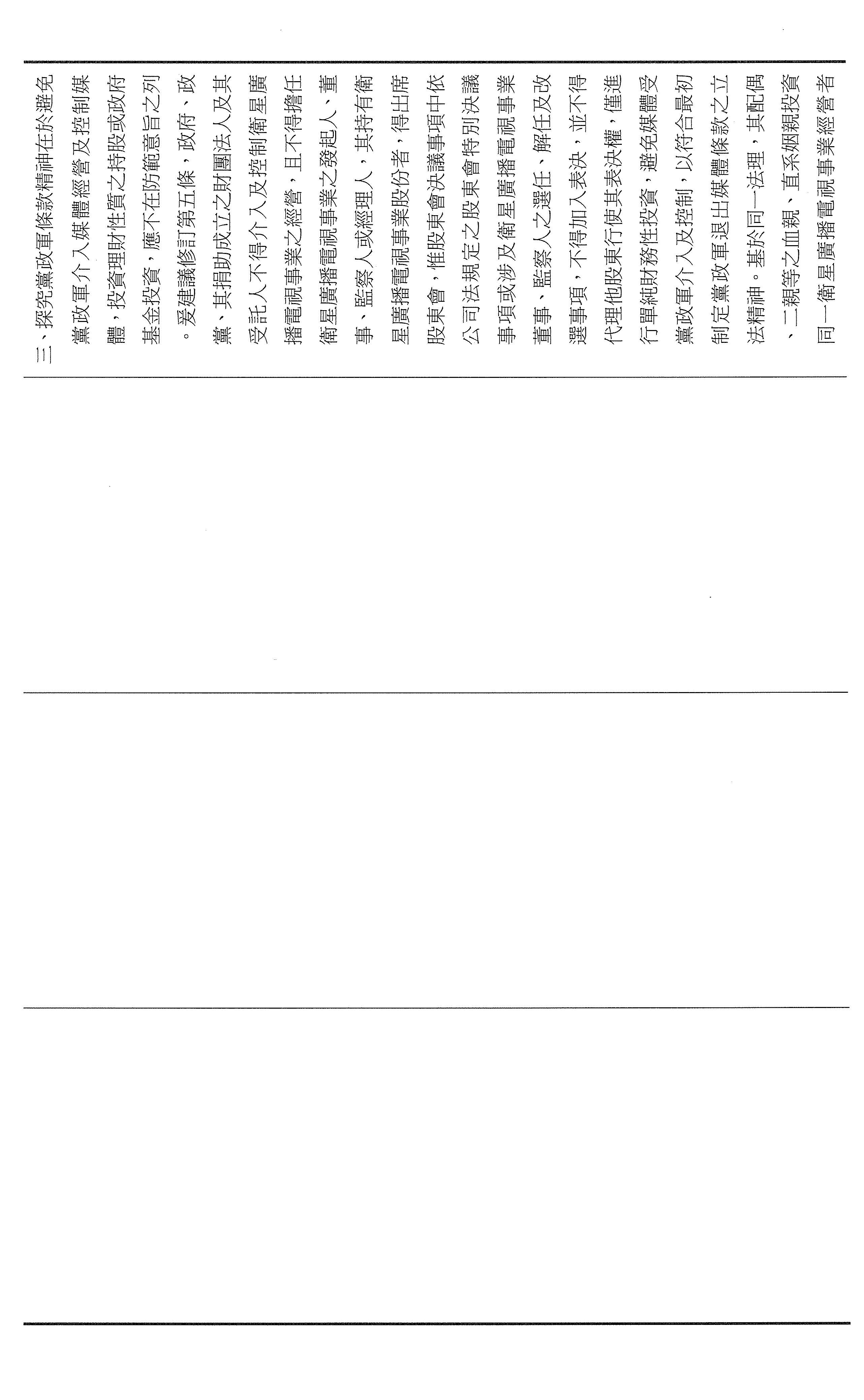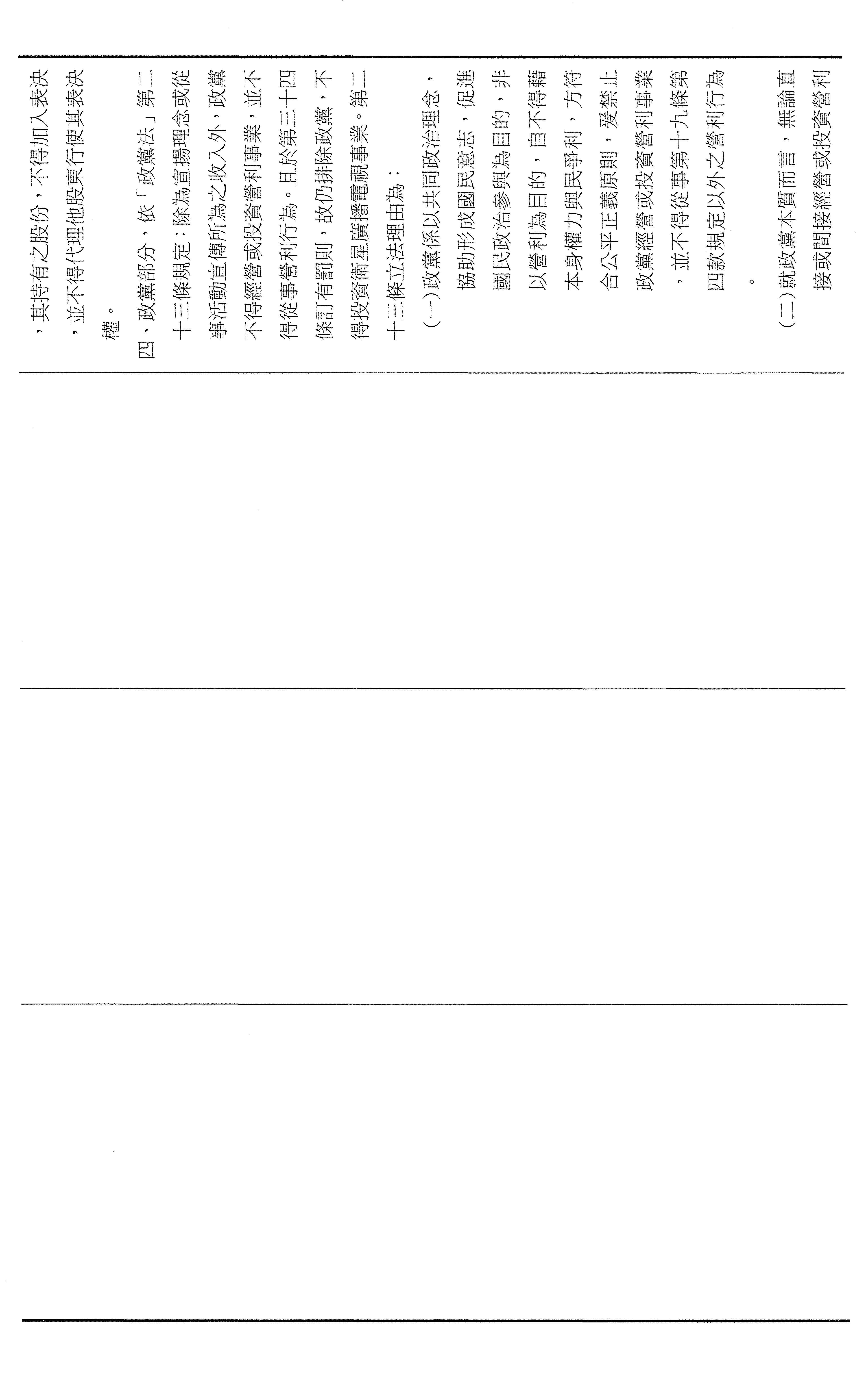 另外,翁委員所提版本是扣合黨政軍條款的第五十條,將這一條予以刪除,如果黨政軍條款對應的罰則刪掉,黨政軍條款就變成是宣示性的規定,這邊也要請大家來思考、考量。就是兩個部分,民眾黨團所提的是對應第四條的公開發行,翁委員所提的是刪除黨政軍條款的罰則。