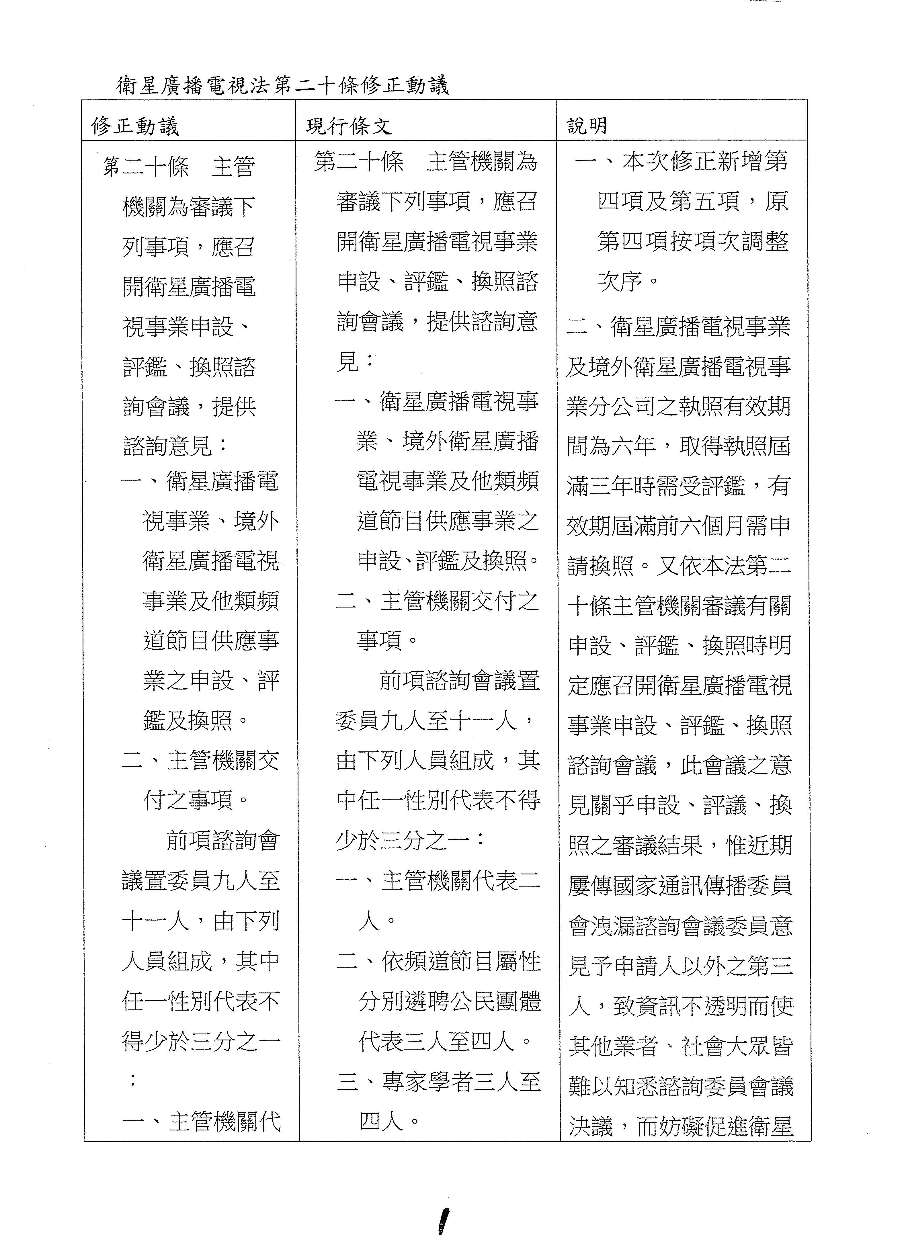 表決議題:衛星廣播電視法第二十條