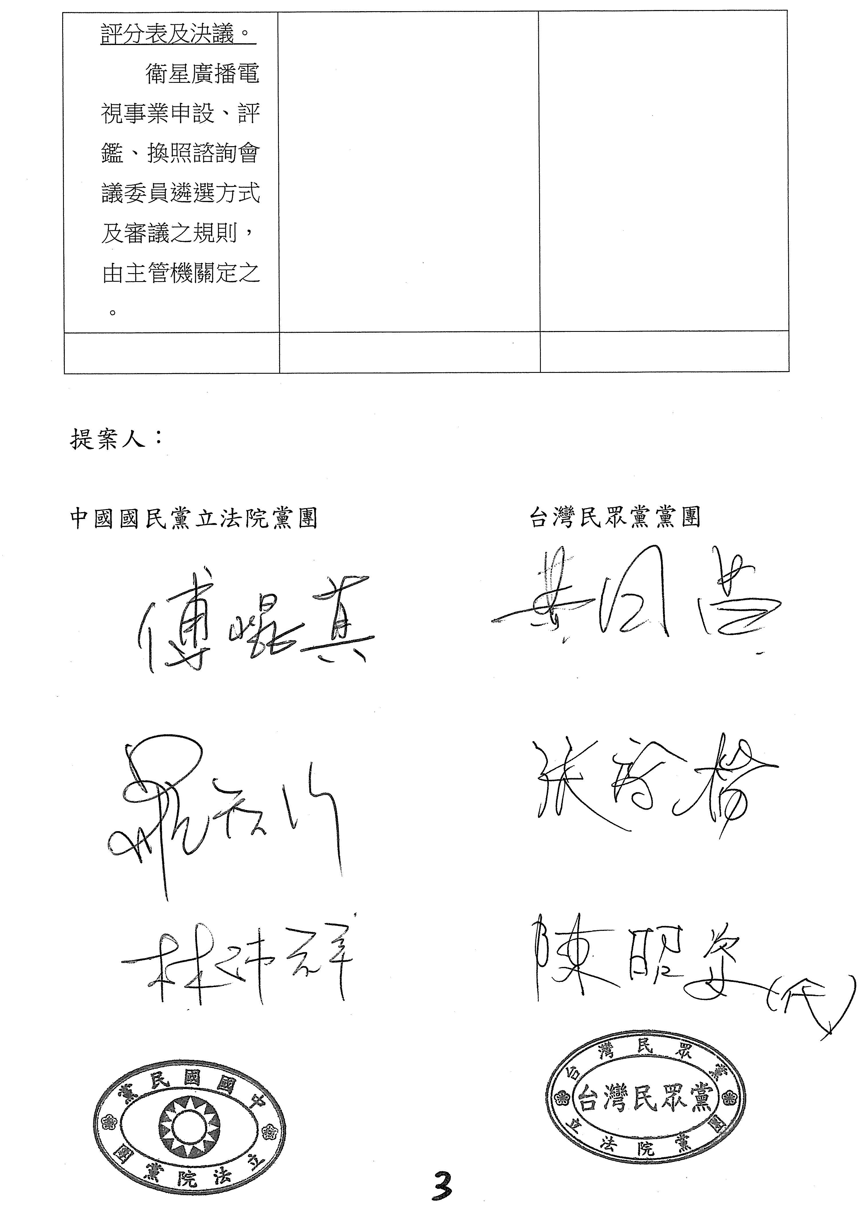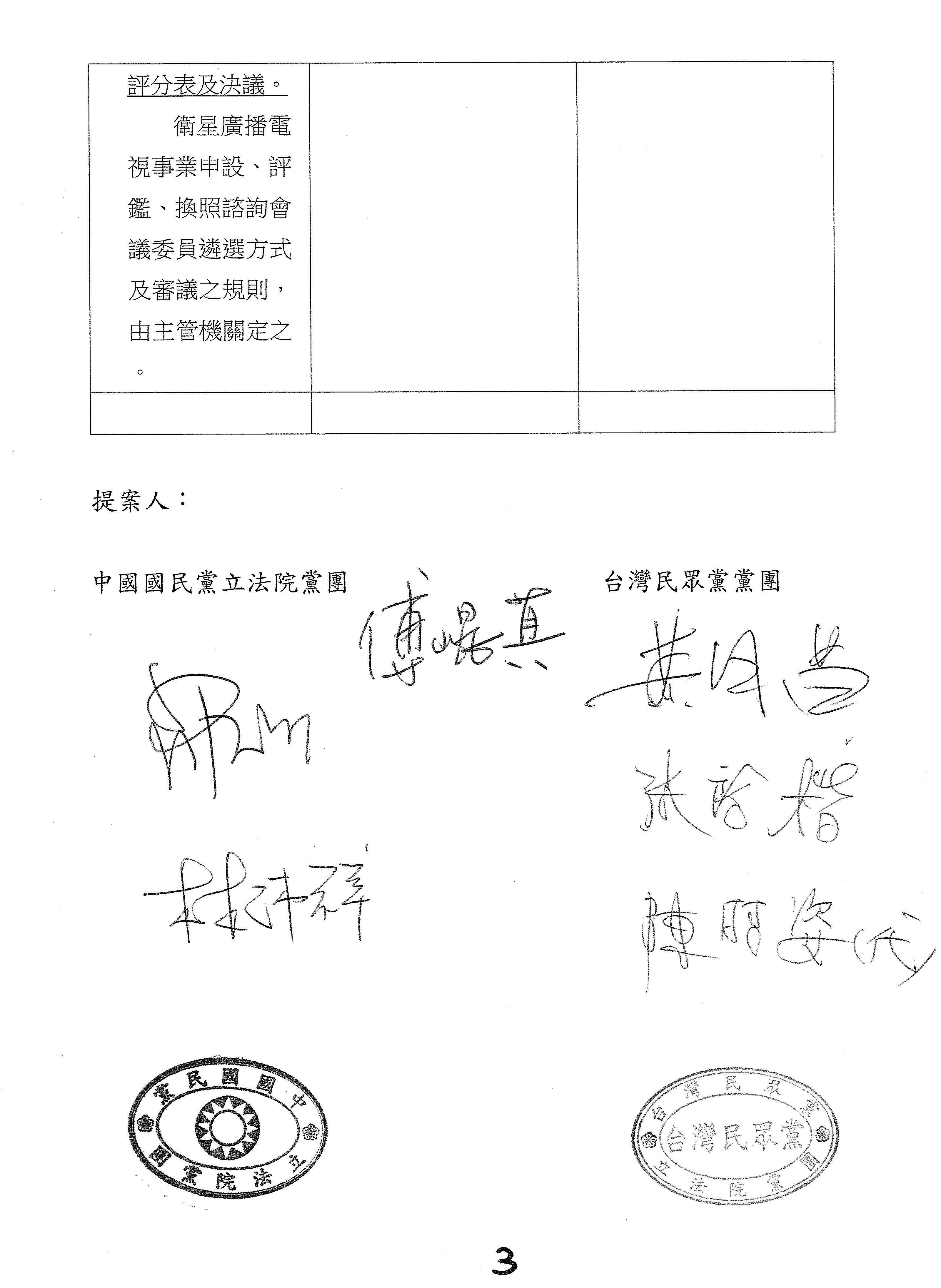 國民黨黨團、台灣民眾黨黨團共同修正動議提案: