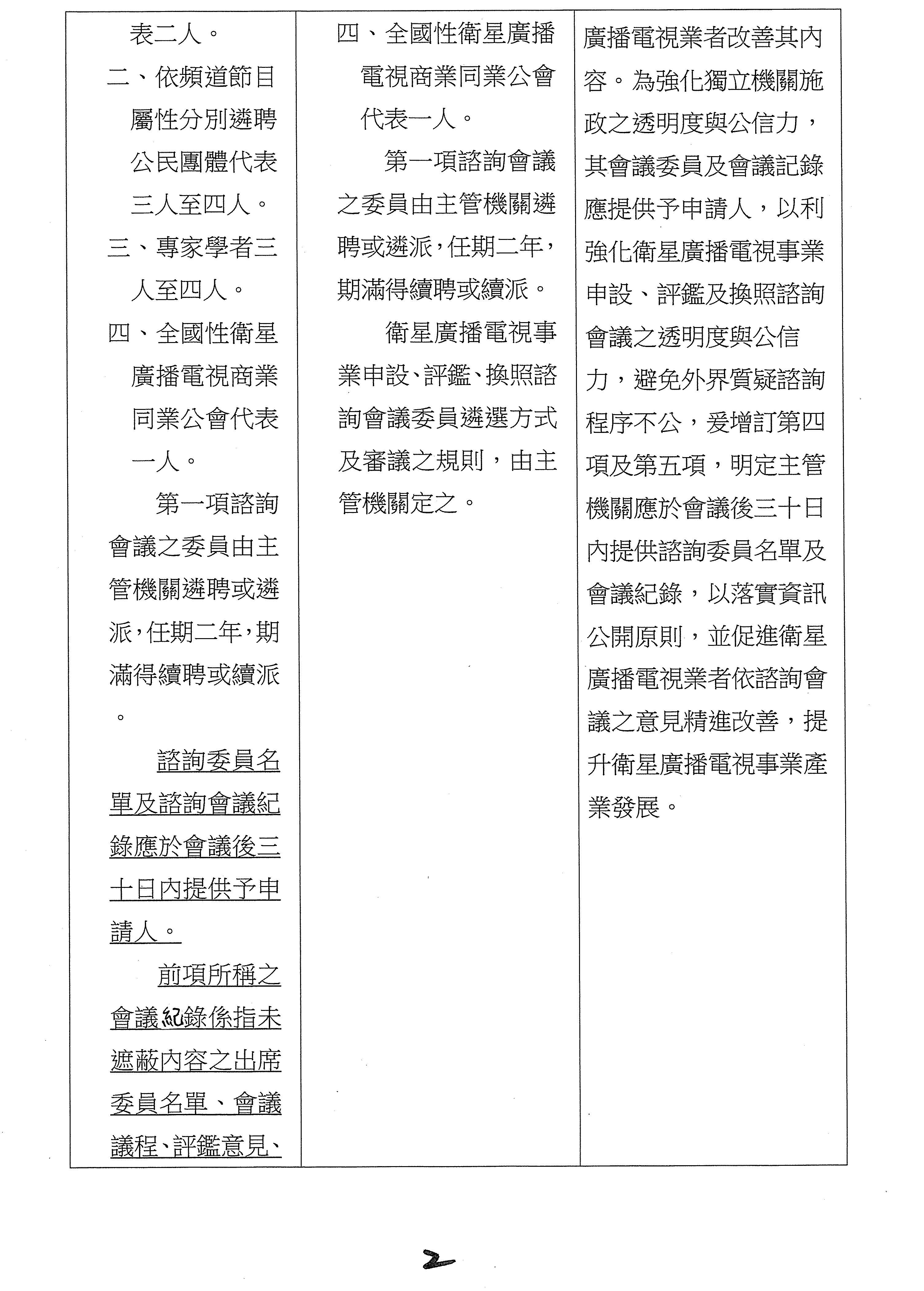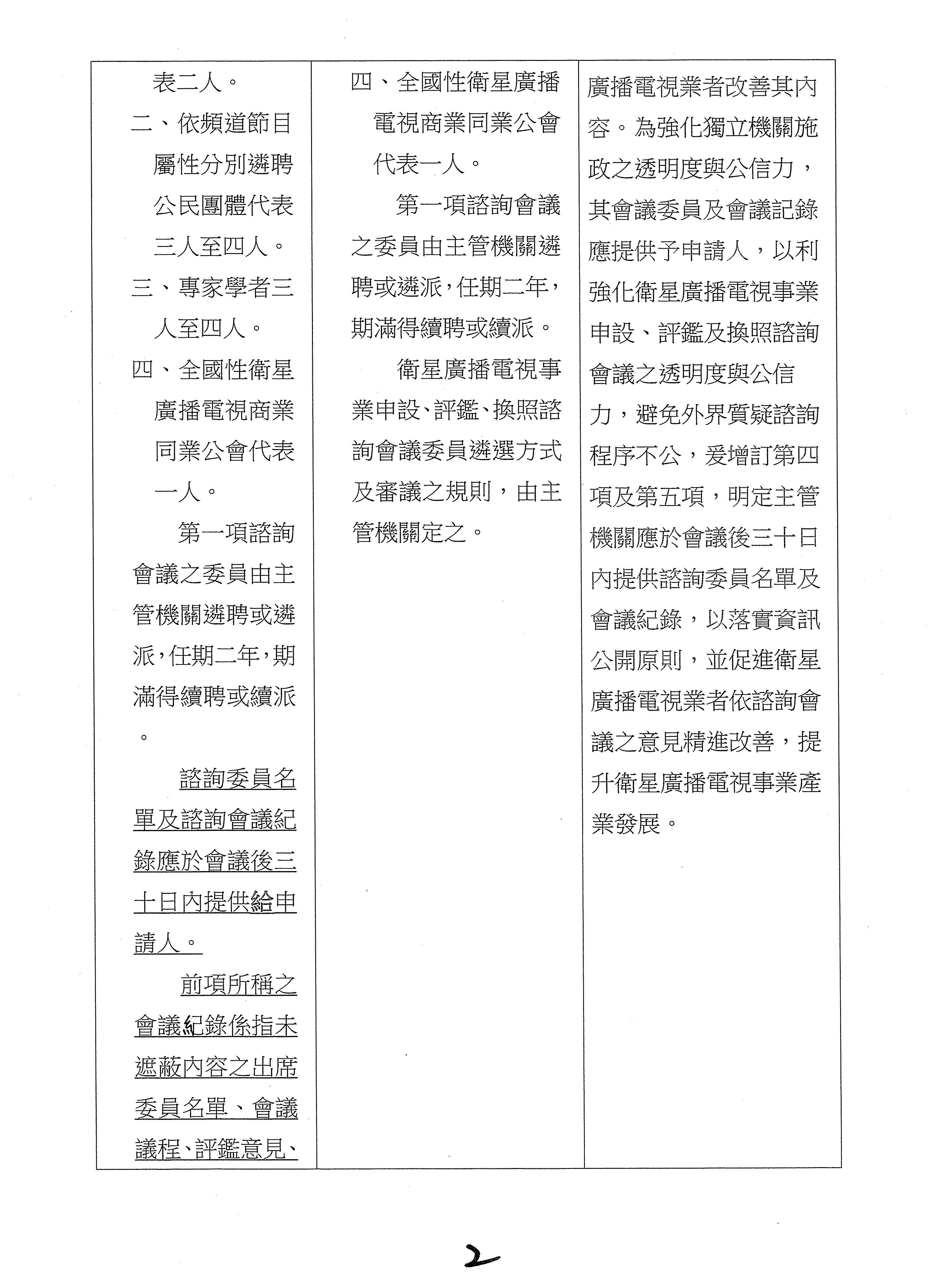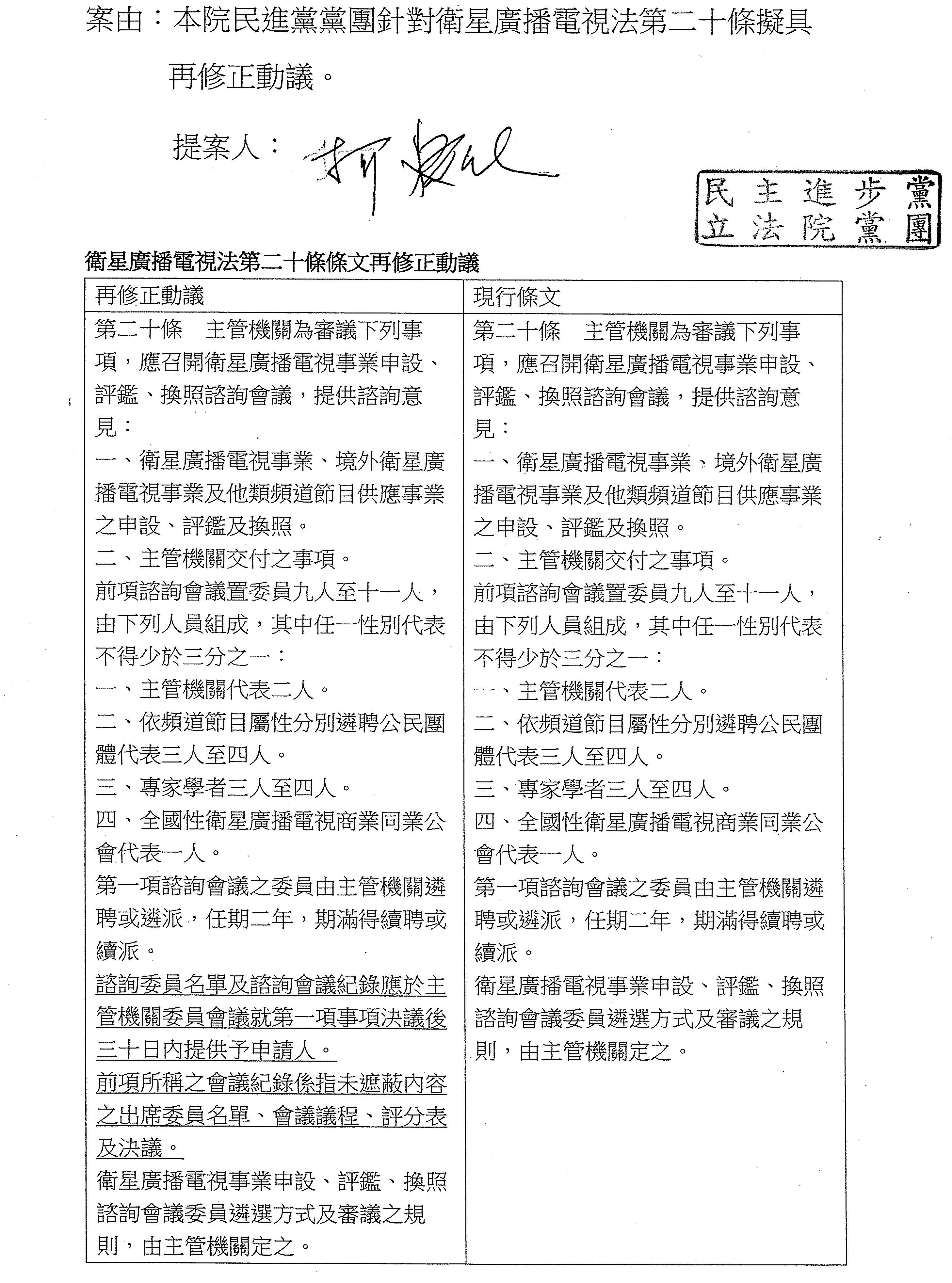 衛星廣播電視法第二十條條文修正草案(二讀)