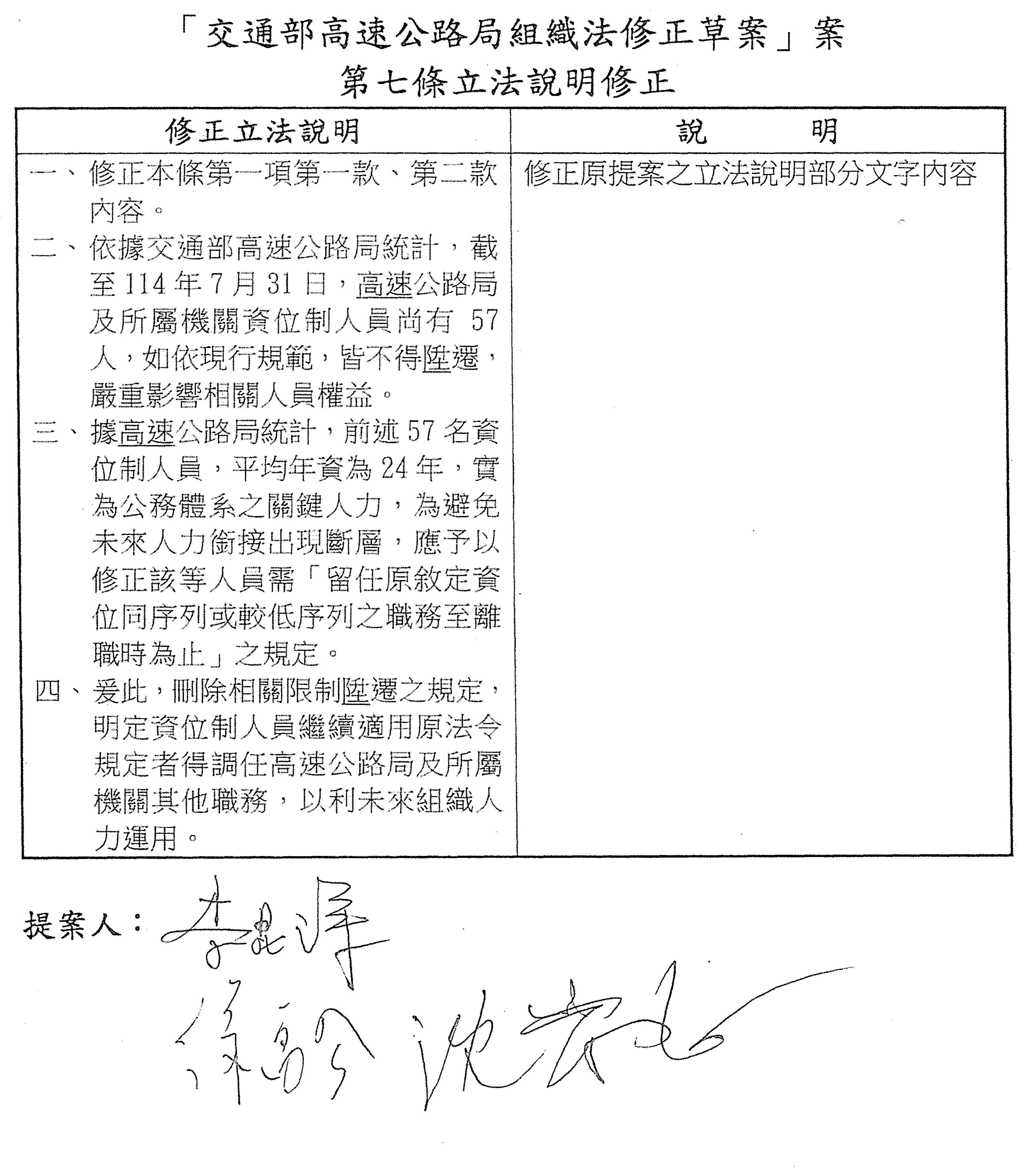 2.交通部高速公路局組織法第七條條文修正草案