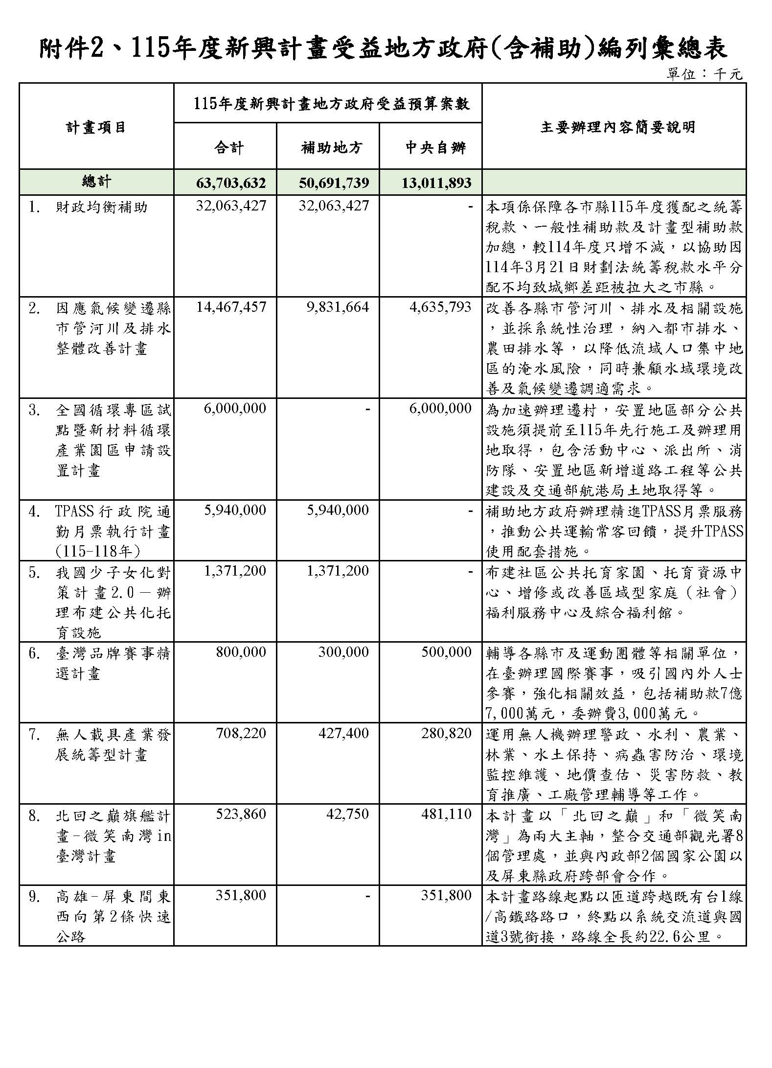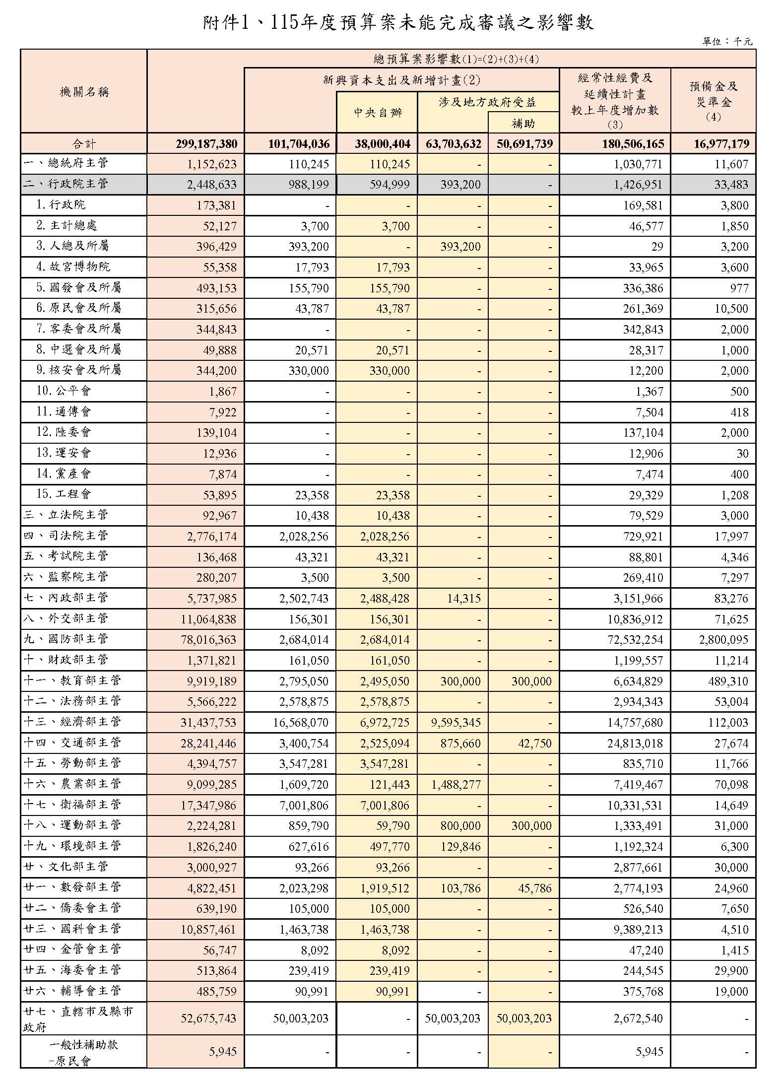 二、邀請行政院主計總處主計長陳淑姿、財政部部長莊翠雲、國防部副部長、海洋委員會副主任委員、海巡署副署長就「115年度中央政府總預算案至今尚未審查,對國家安全及地方建設的影響」進行專題報告,並備質詢。
