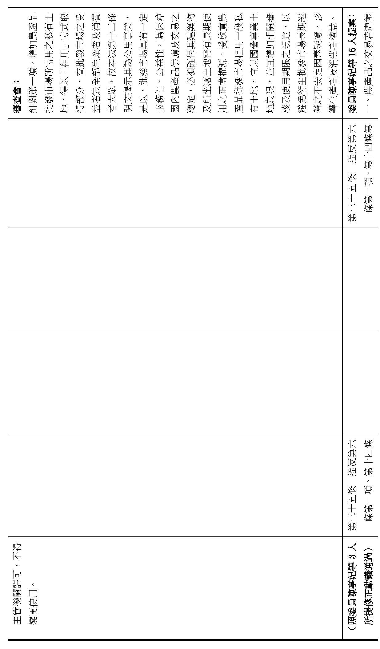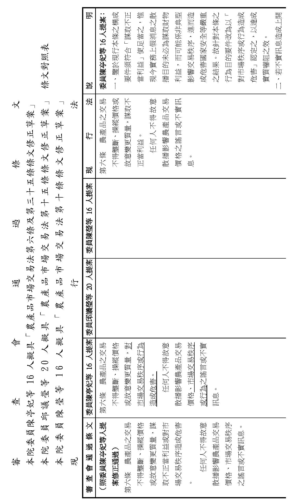 (三)委員陳亭妃等16人擬具「農產品市場交易法第六條及第三十五條條文修正草案」提案要旨:(參閱關係文書11007985號)
