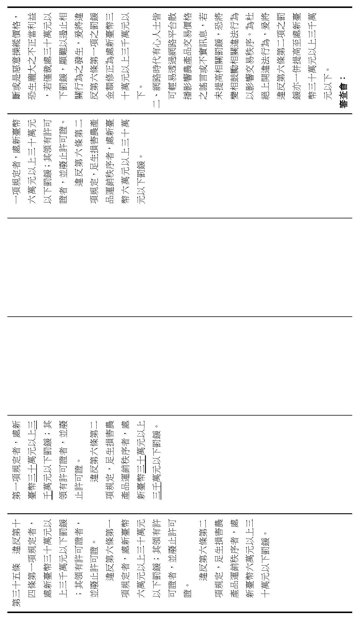 ②違反第六條第一、二項規定之罰鍰,係針對承銷人及自然人處罰,基於法規衡平性及違法行為與處罰內容宜相當,如農產品生產及驗證管理法第二十七條規定,故意散播有關農產品之謠言或不實訊息,足生損害於公眾或他人者,處新臺幣6萬元以上30萬元以下罰鍰,以及糧食管理法第十八條之三規定,對故意散播影響市場糧食交易價格或主管機關執行糧食產銷、收購公糧計畫之謠言或不實訊息者處新臺幣6萬元以上30萬元以下罰鍰,並兼考量行政罰法第十八條已規定針對所得之利益超過法定罰鍰最高額者,得不受法定罰鍰最高額之限制;爰倘違法情節嚴重,符合前開行政罰法規定,亦得據該法處以法定罰鍰最高額以上之罰鍰,爰本部建議維持現行規定額度。