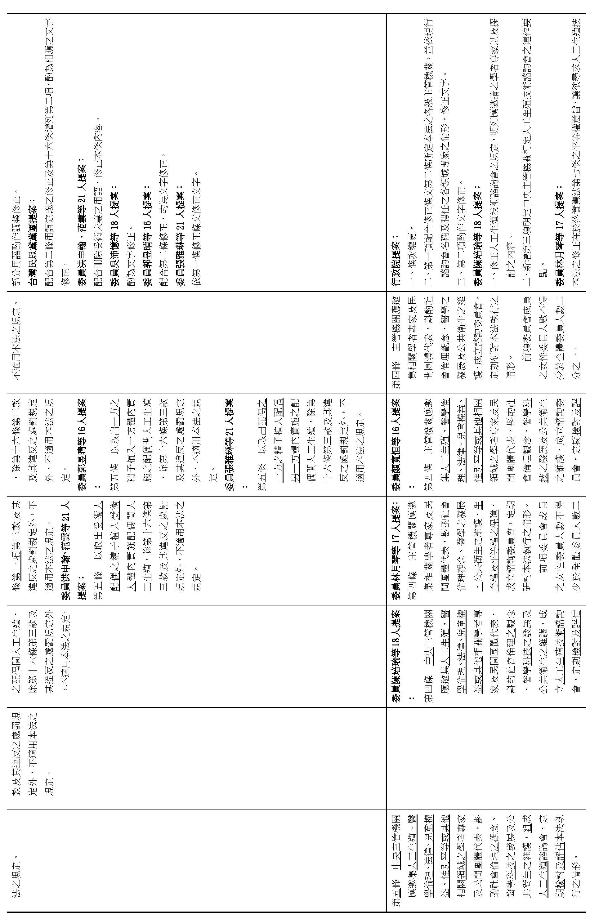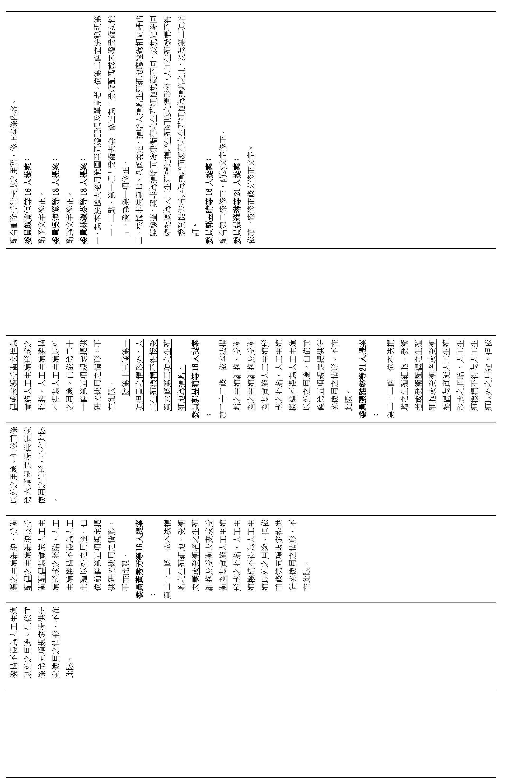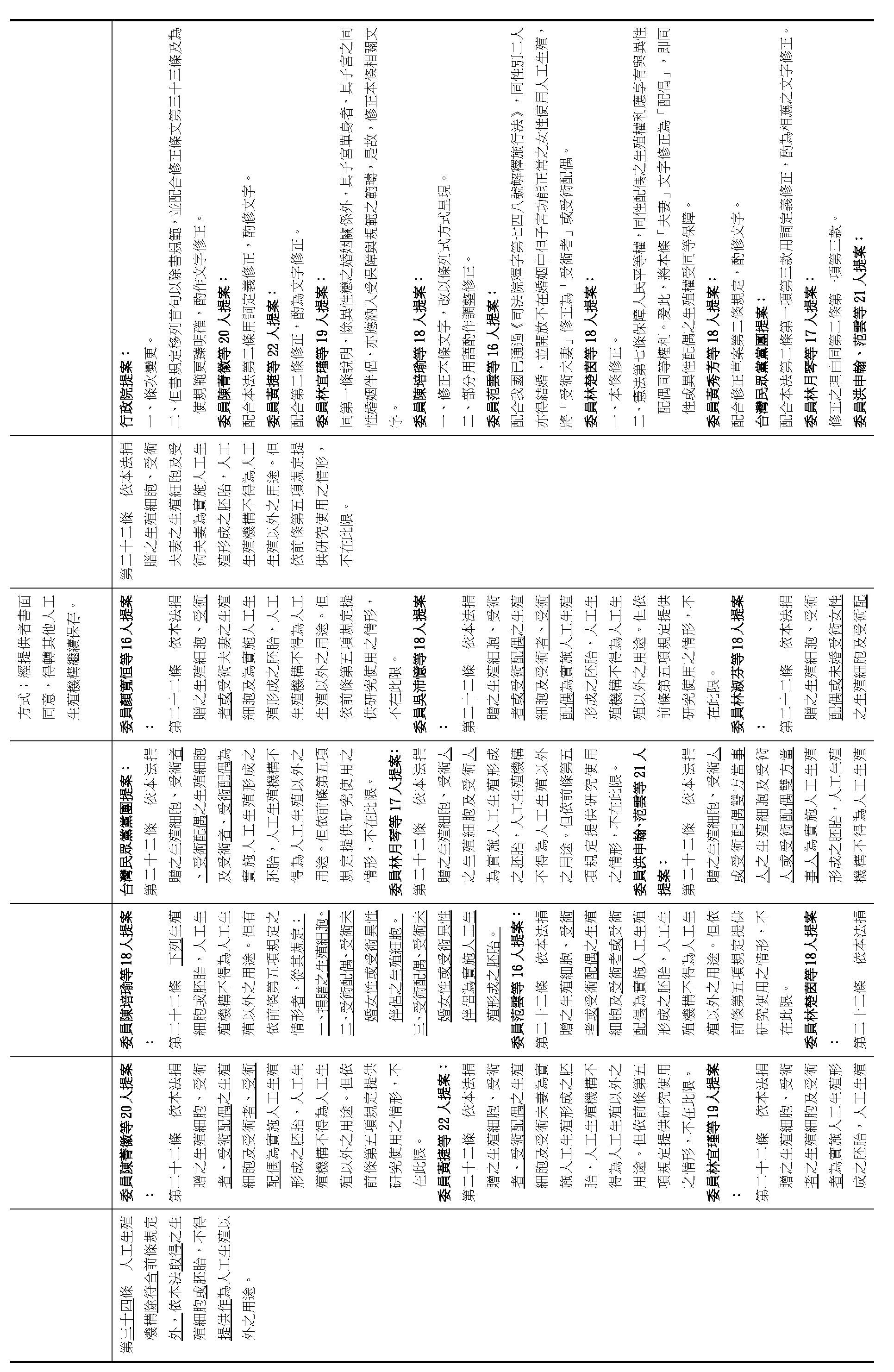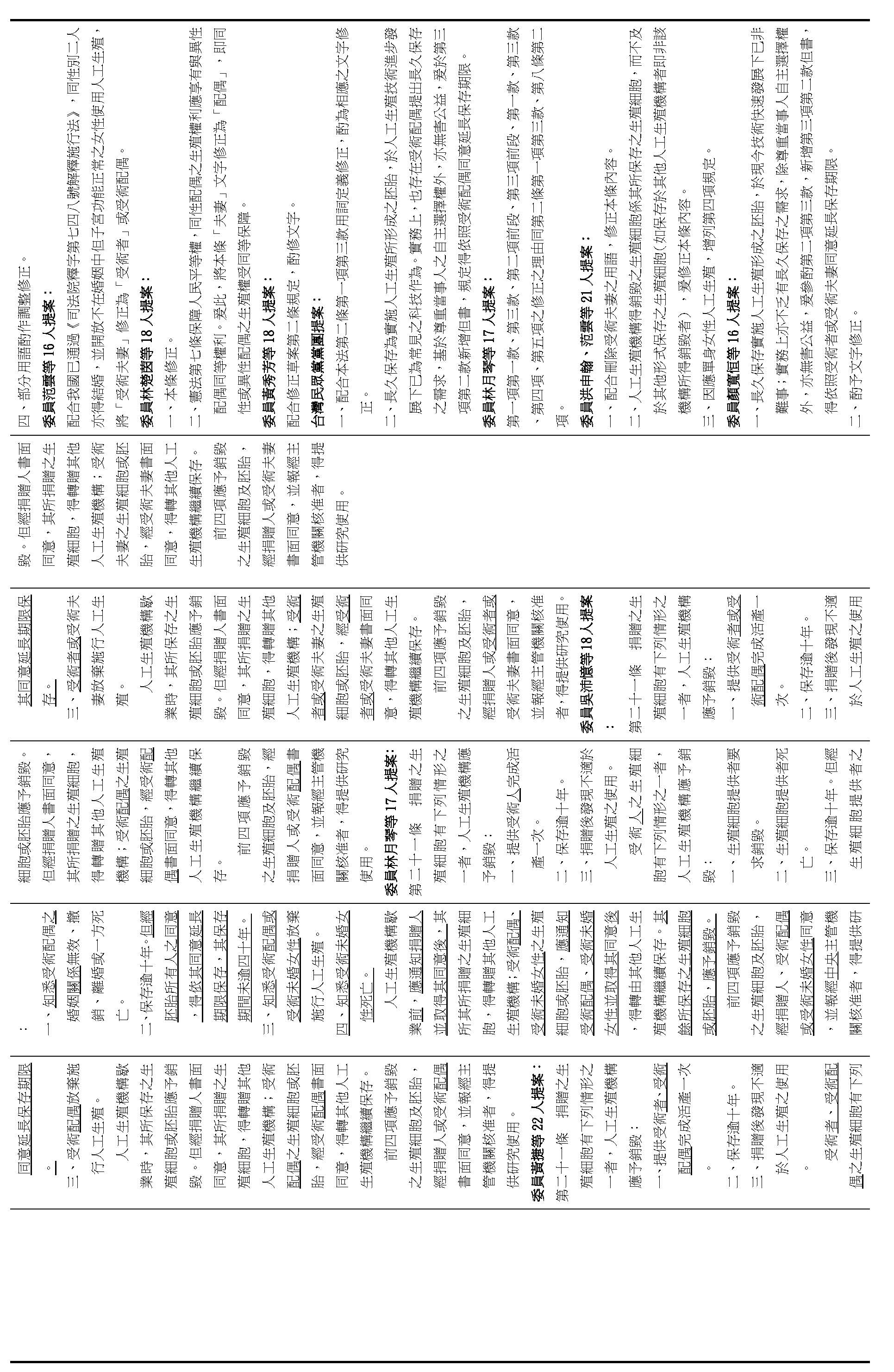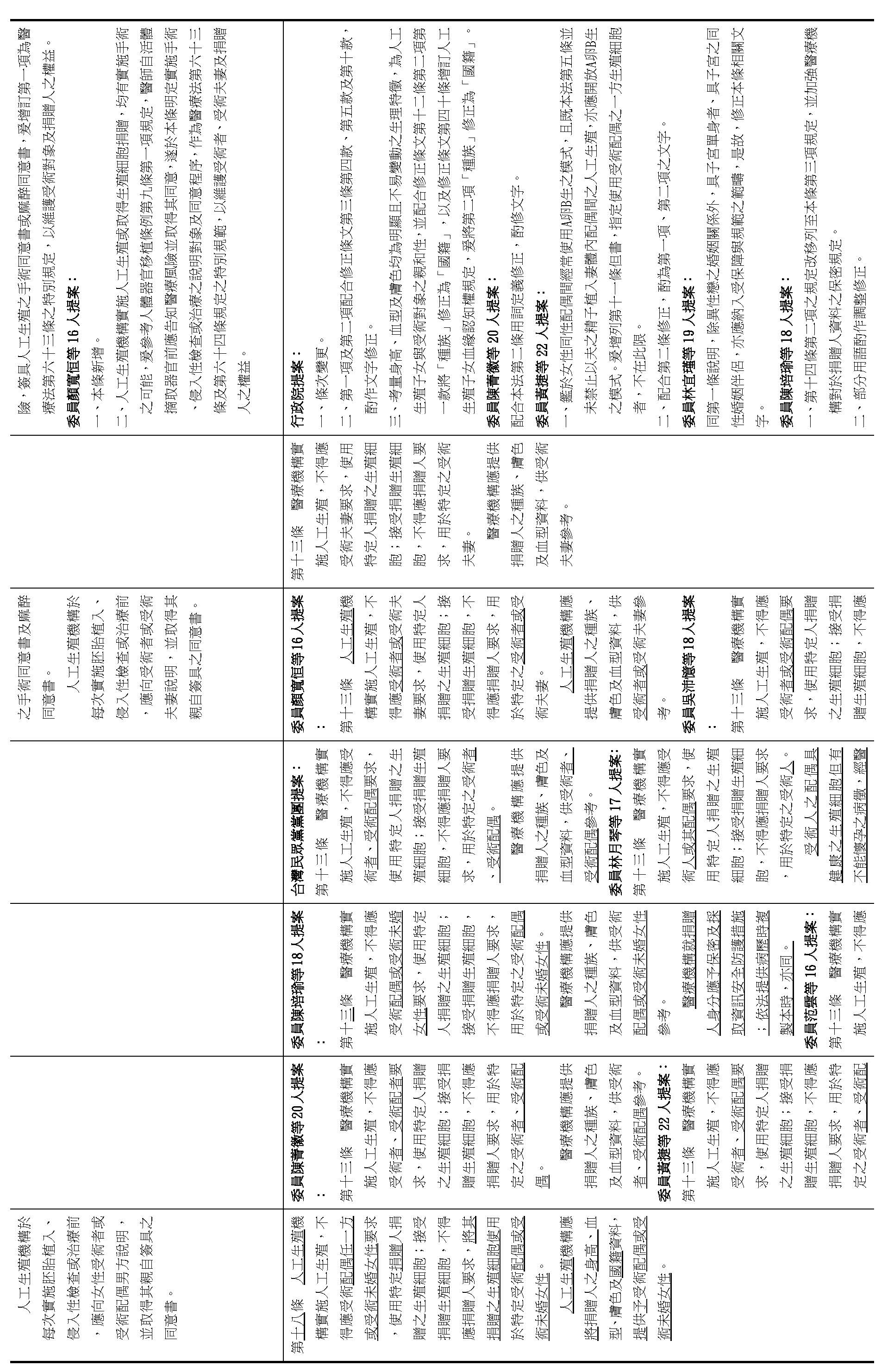 主席:好,謝謝。跟身權法差不多,審九條通過三條,今天審人工生殖法三條,通過一條。