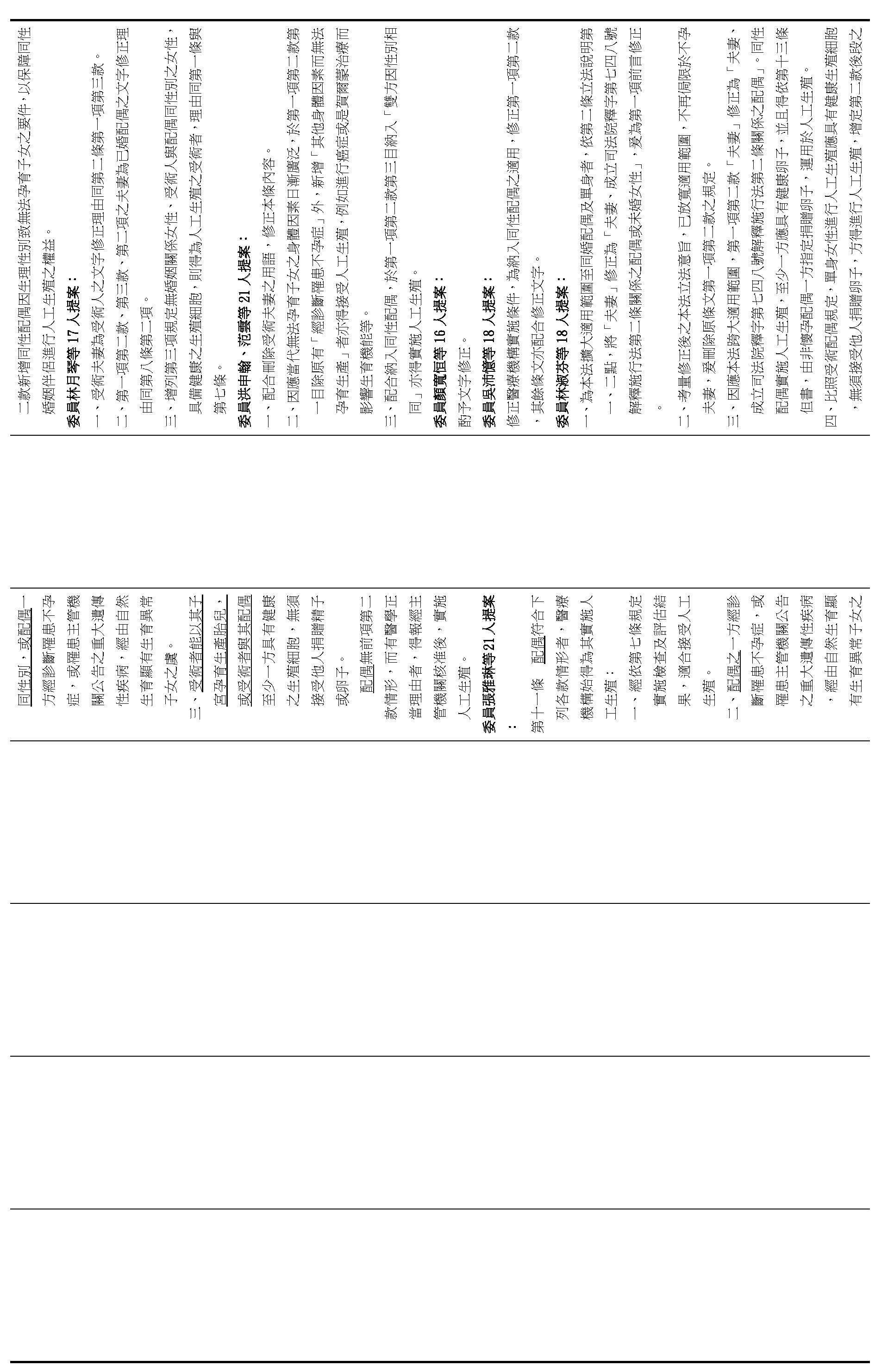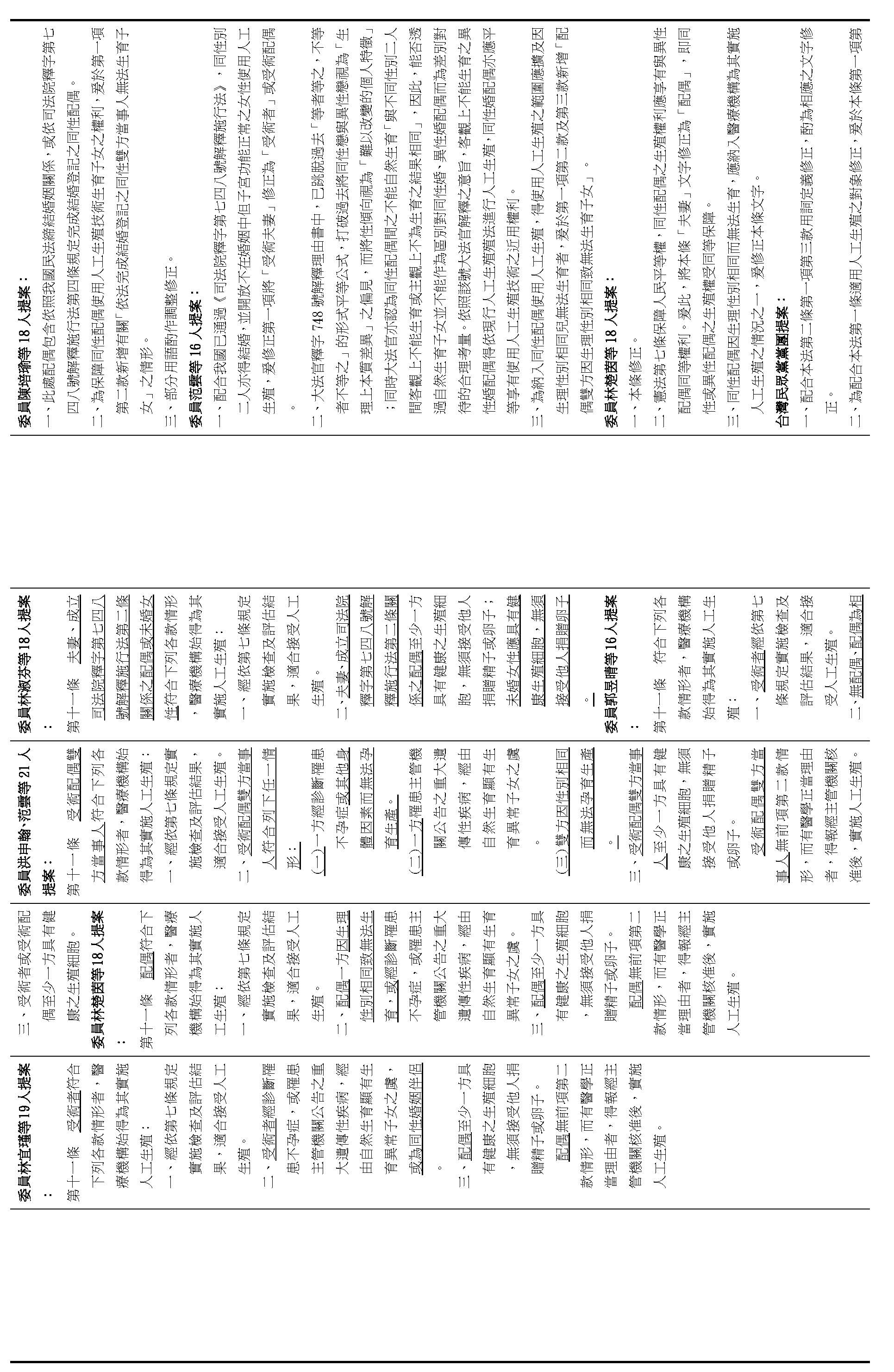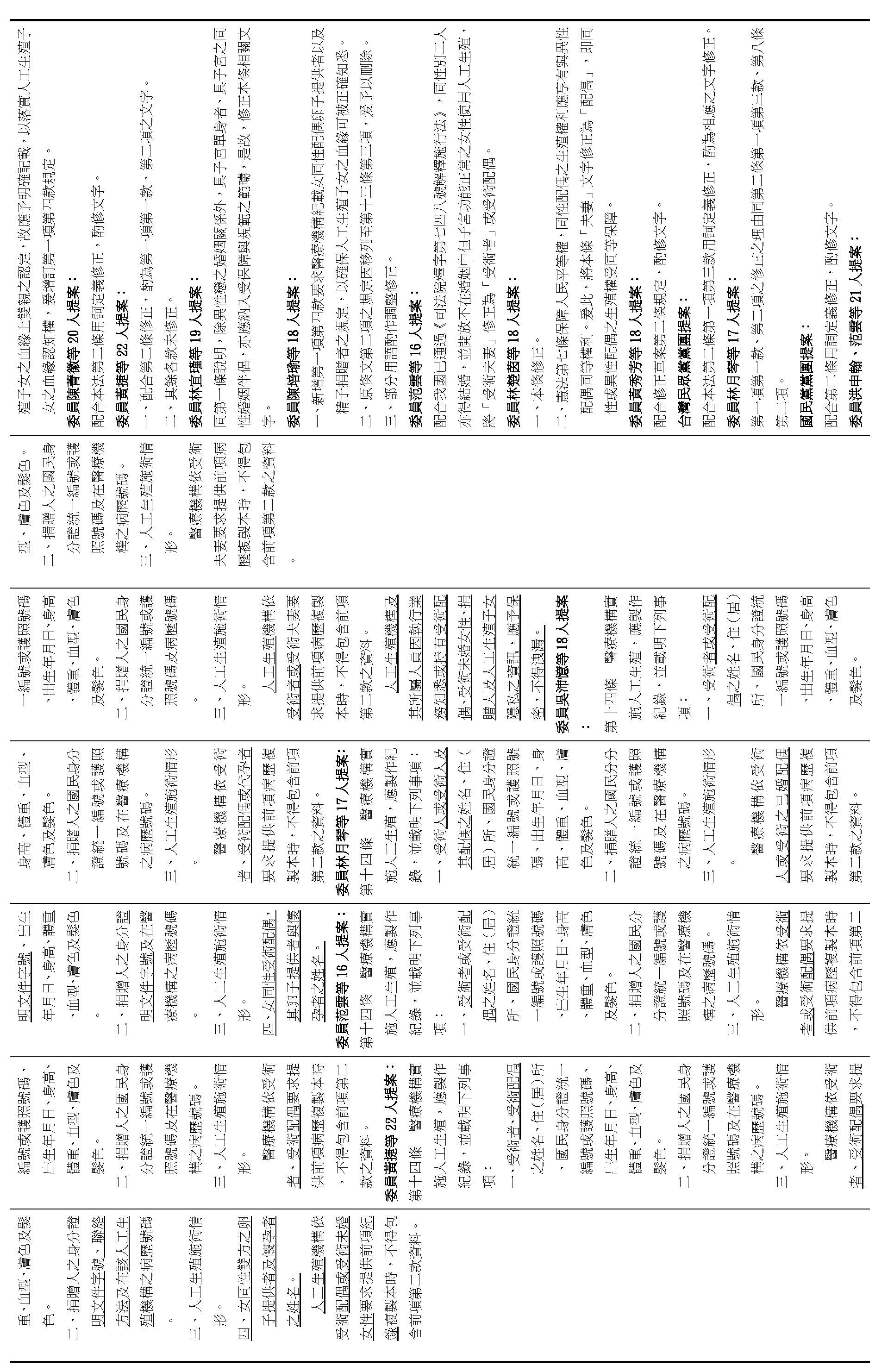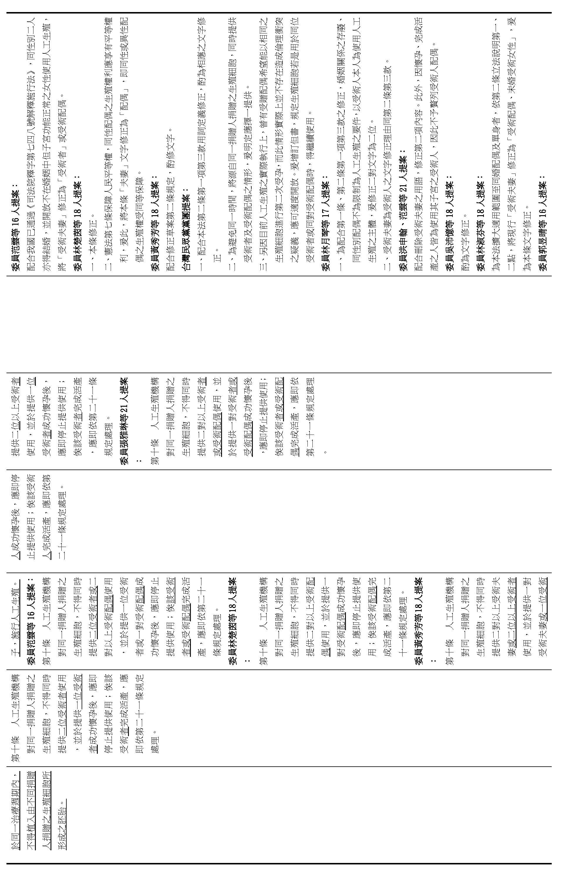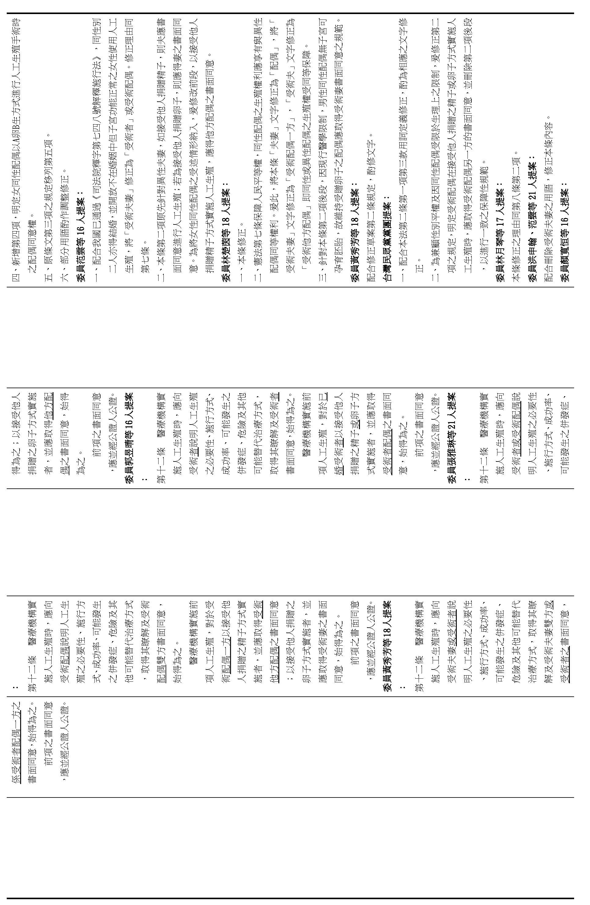 主席:好,謝謝。跟身權法差不多,審九條通過三條,今天審人工生殖法三條,通過一條。