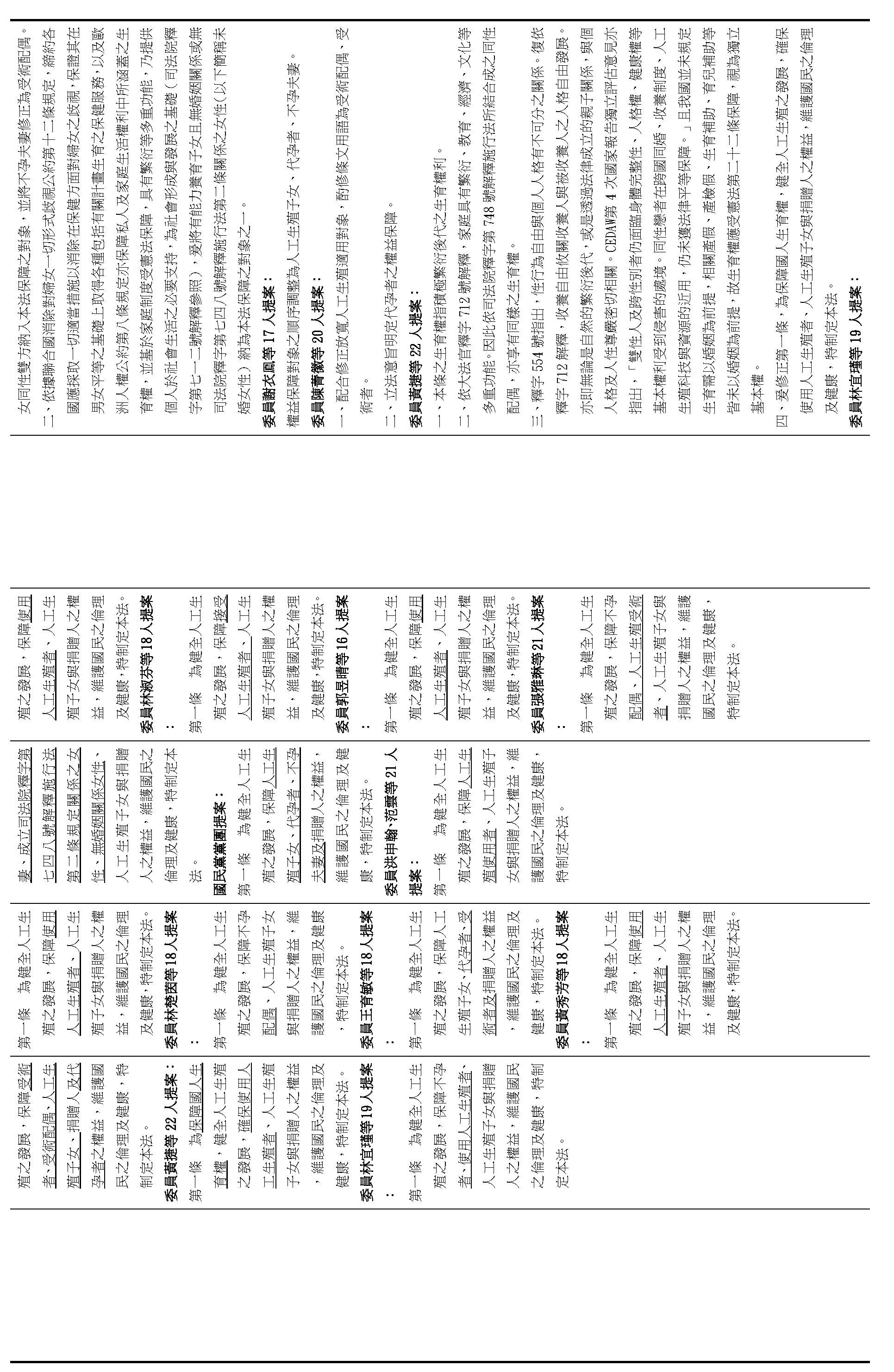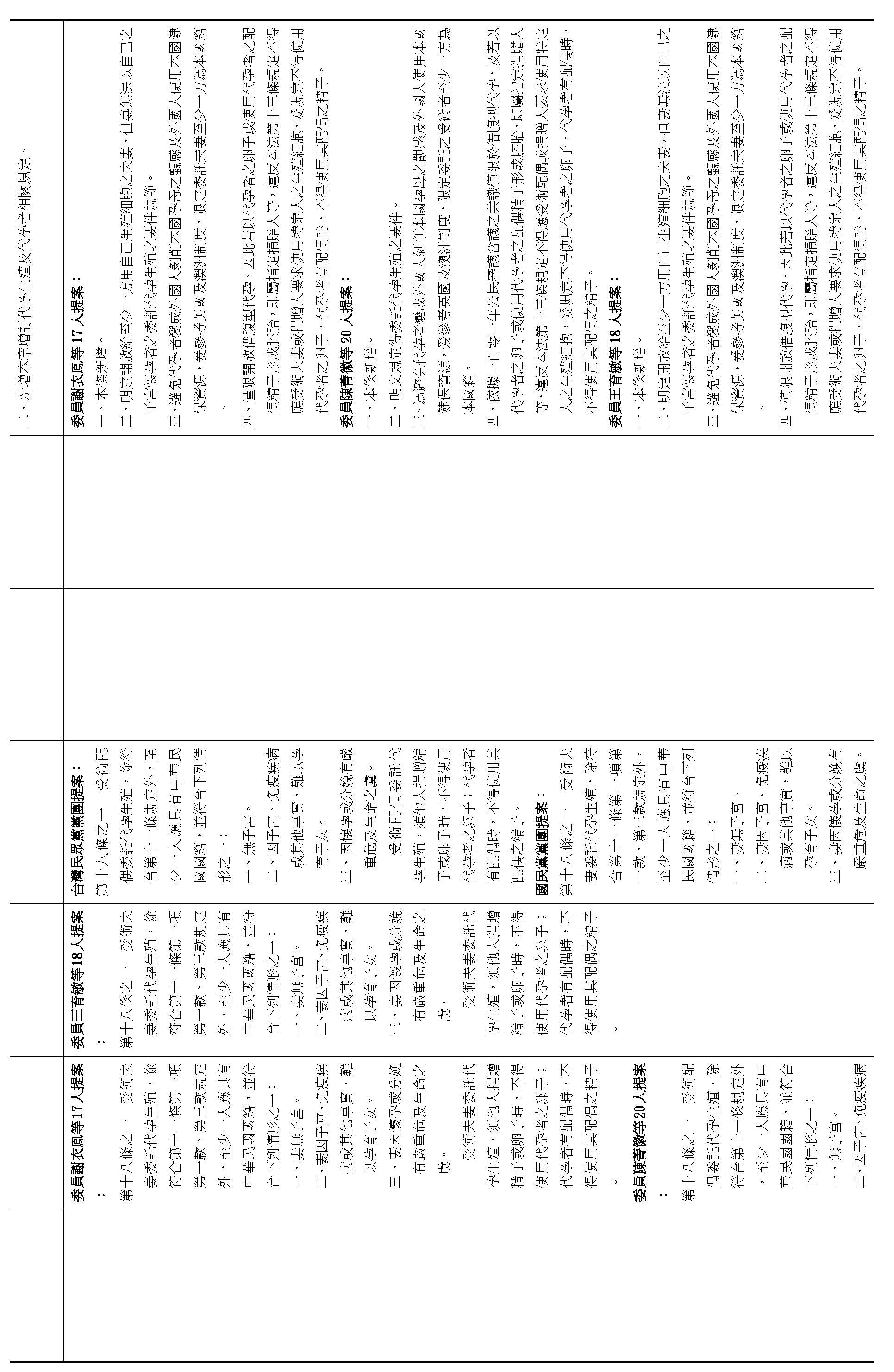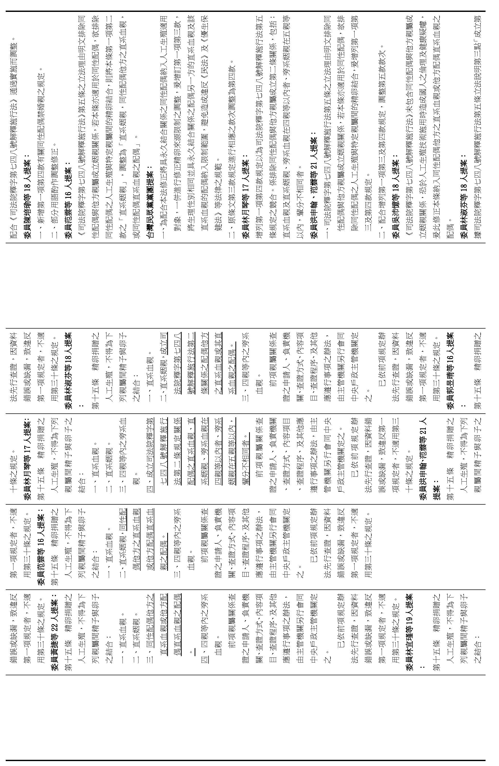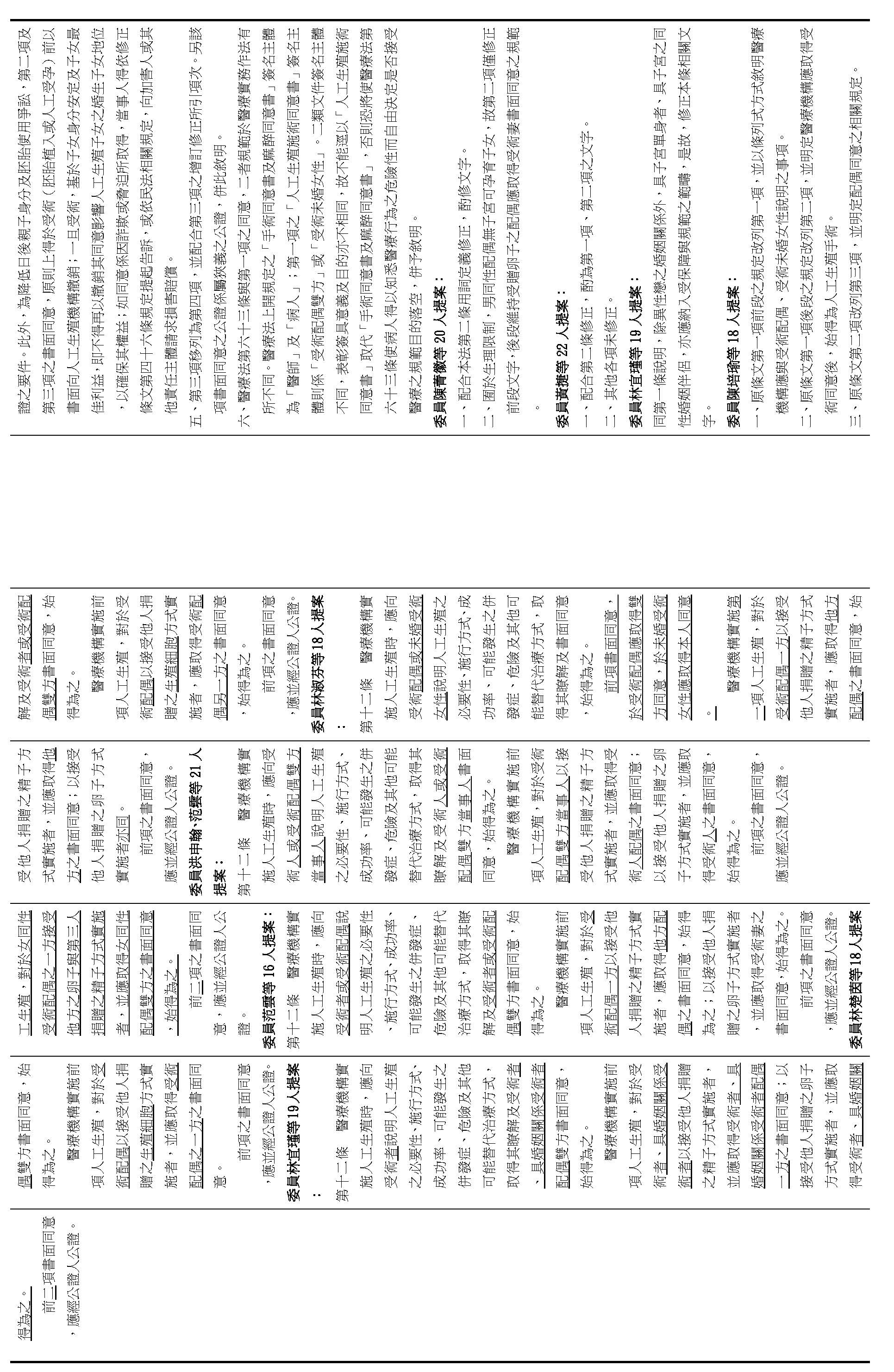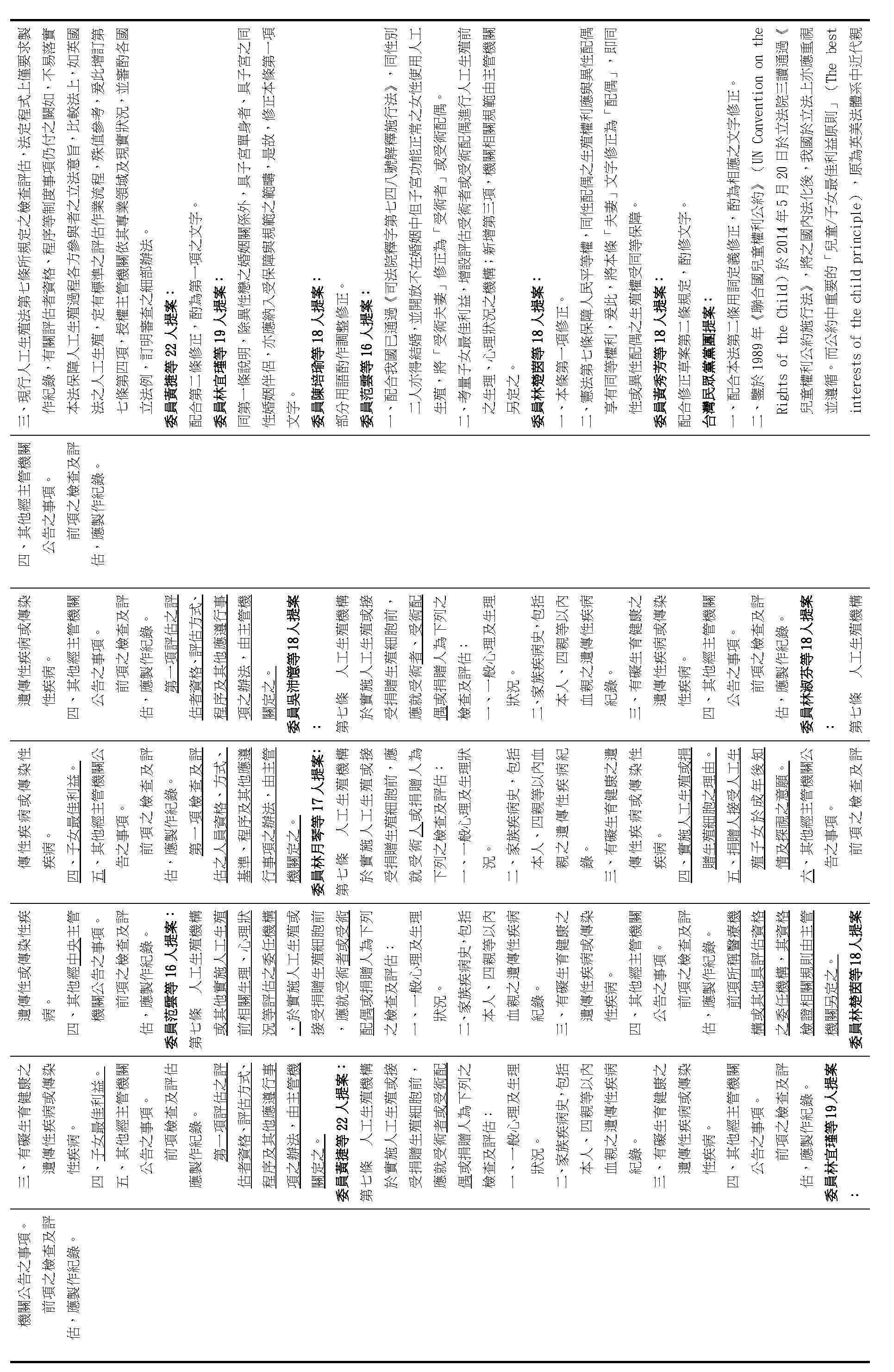 主席:好,謝謝。跟身權法差不多,審九條通過三條,今天審人工生殖法三條,通過一條。