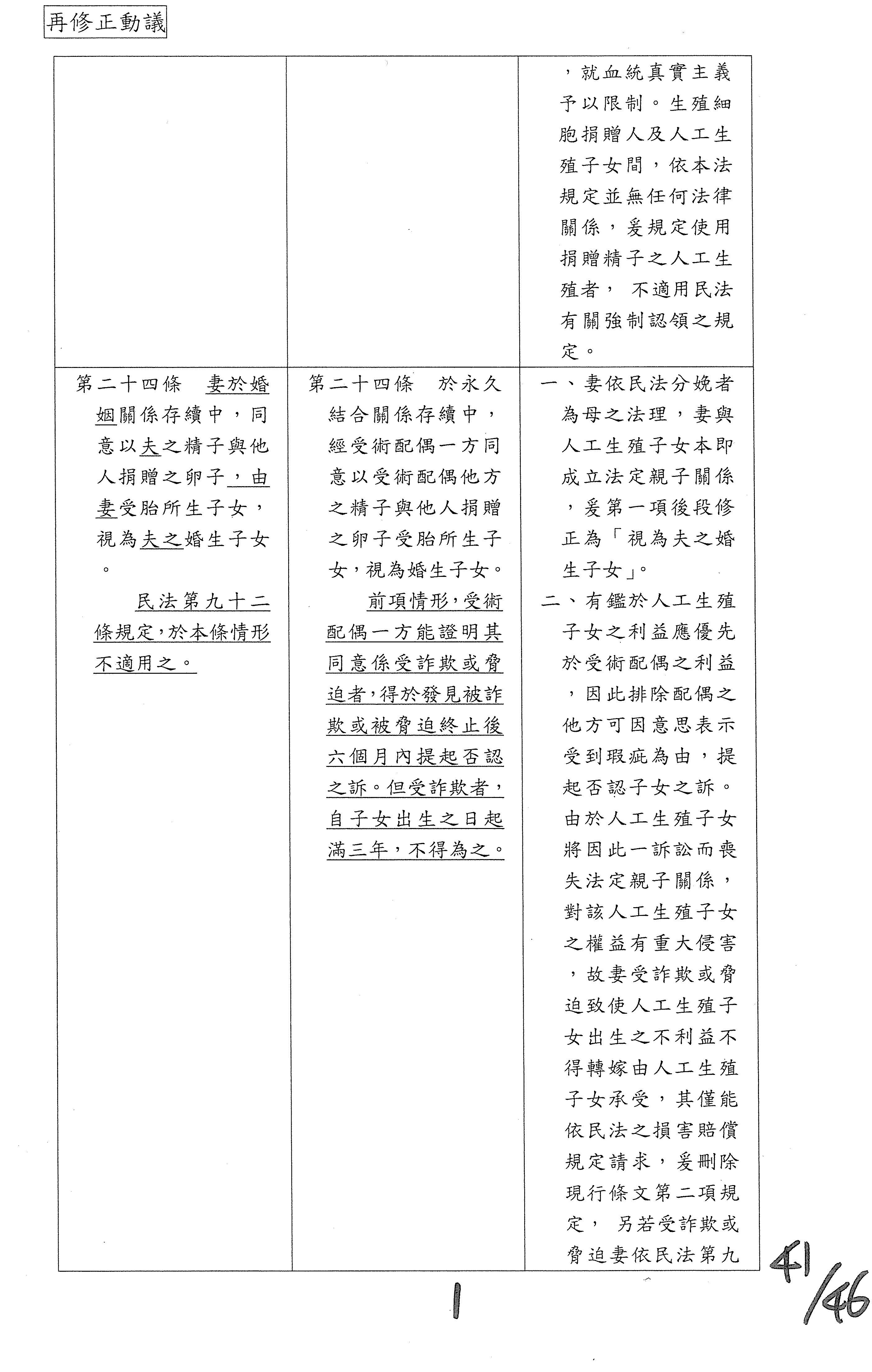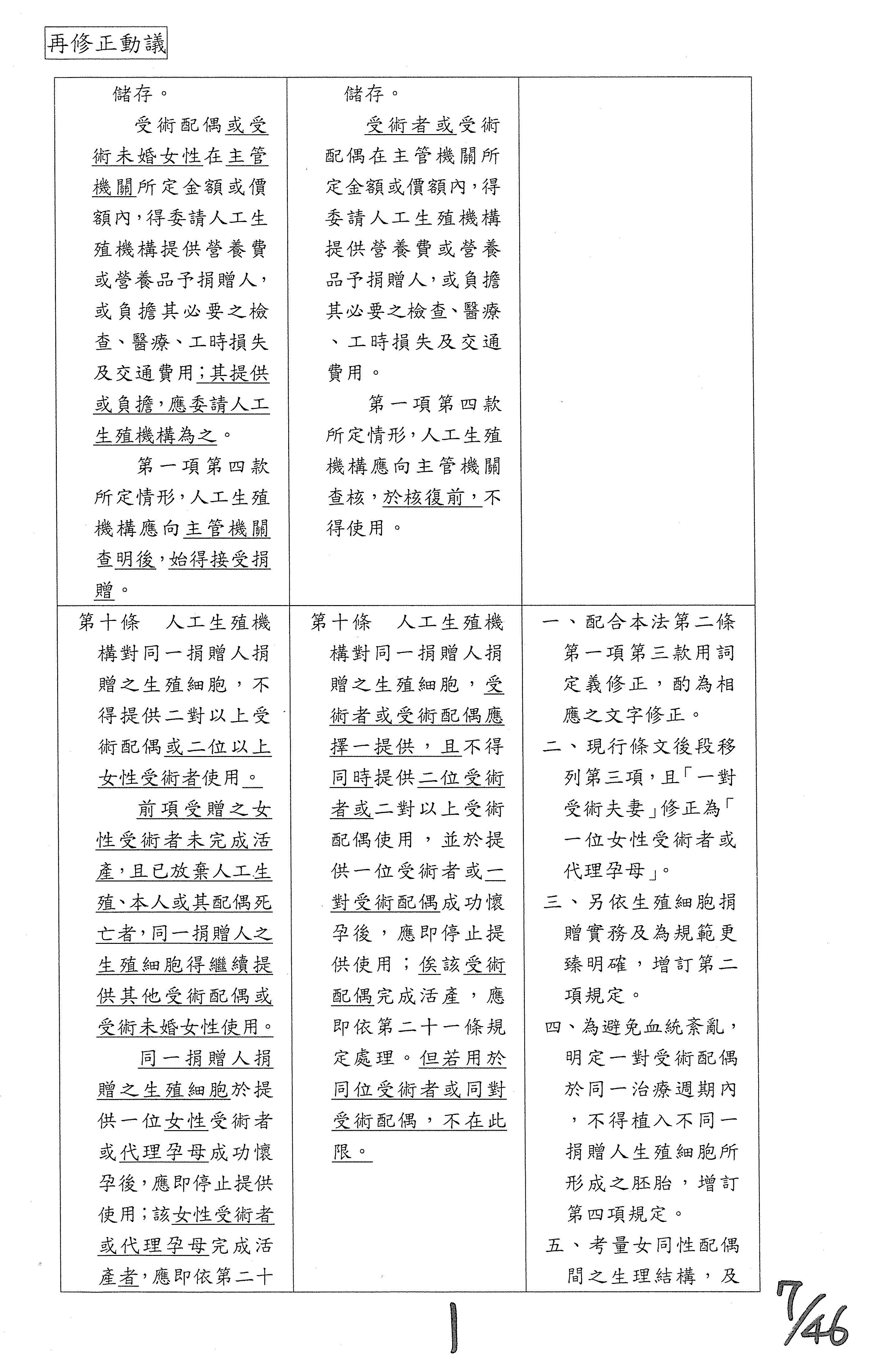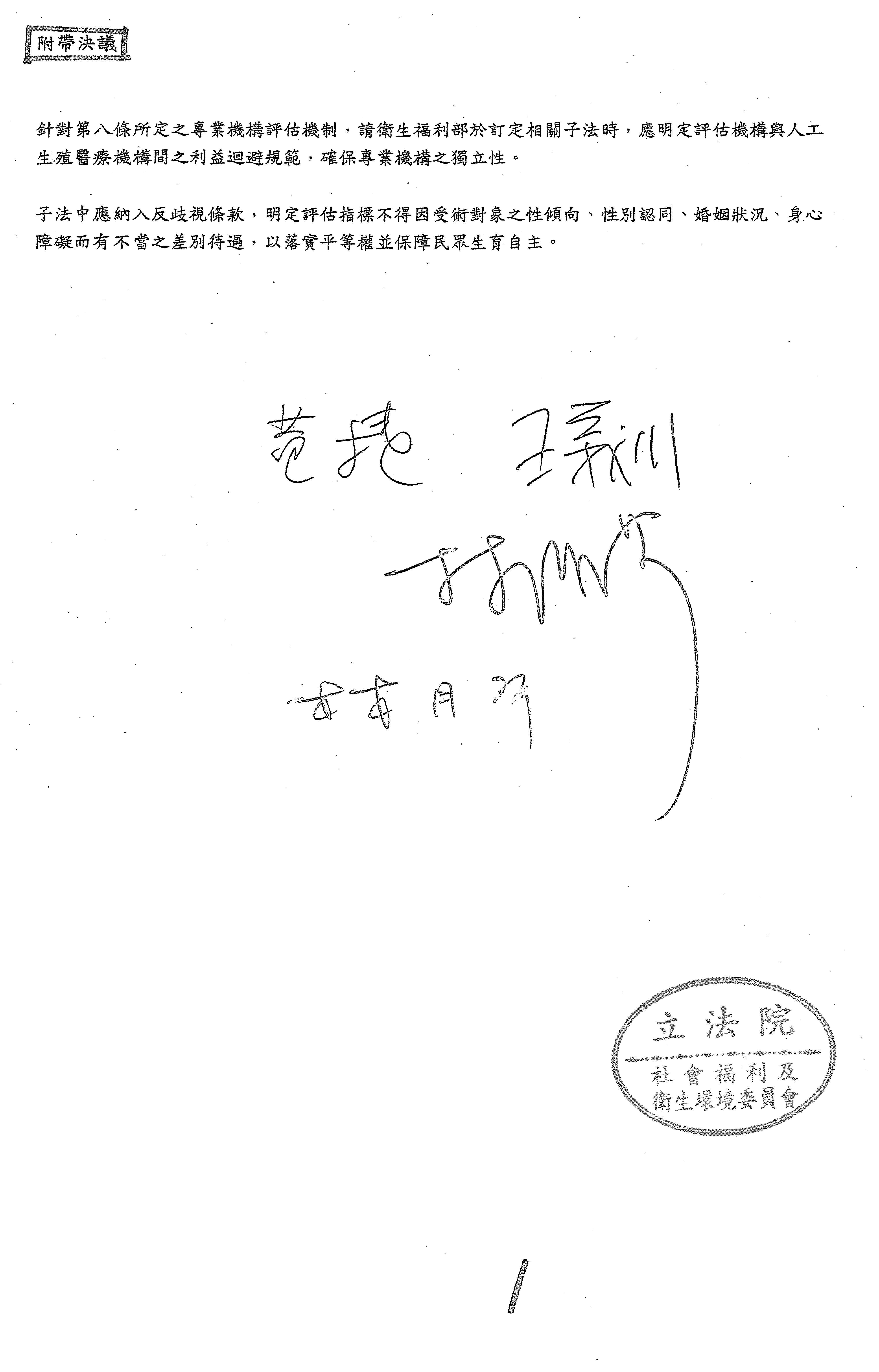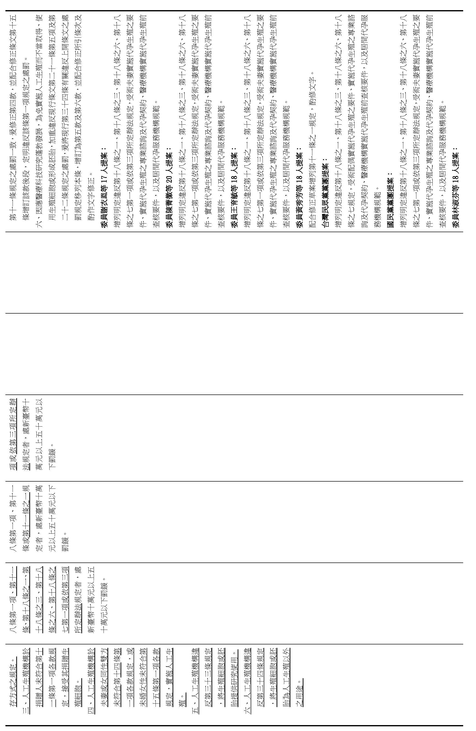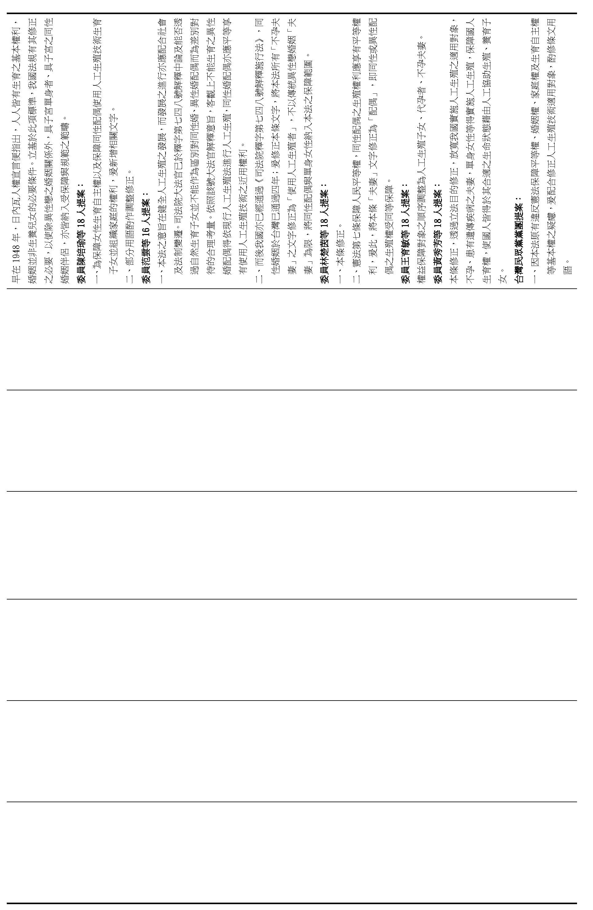 主席:好,謝謝。跟身權法差不多,審九條通過三條,今天審人工生殖法三條,通過一條。