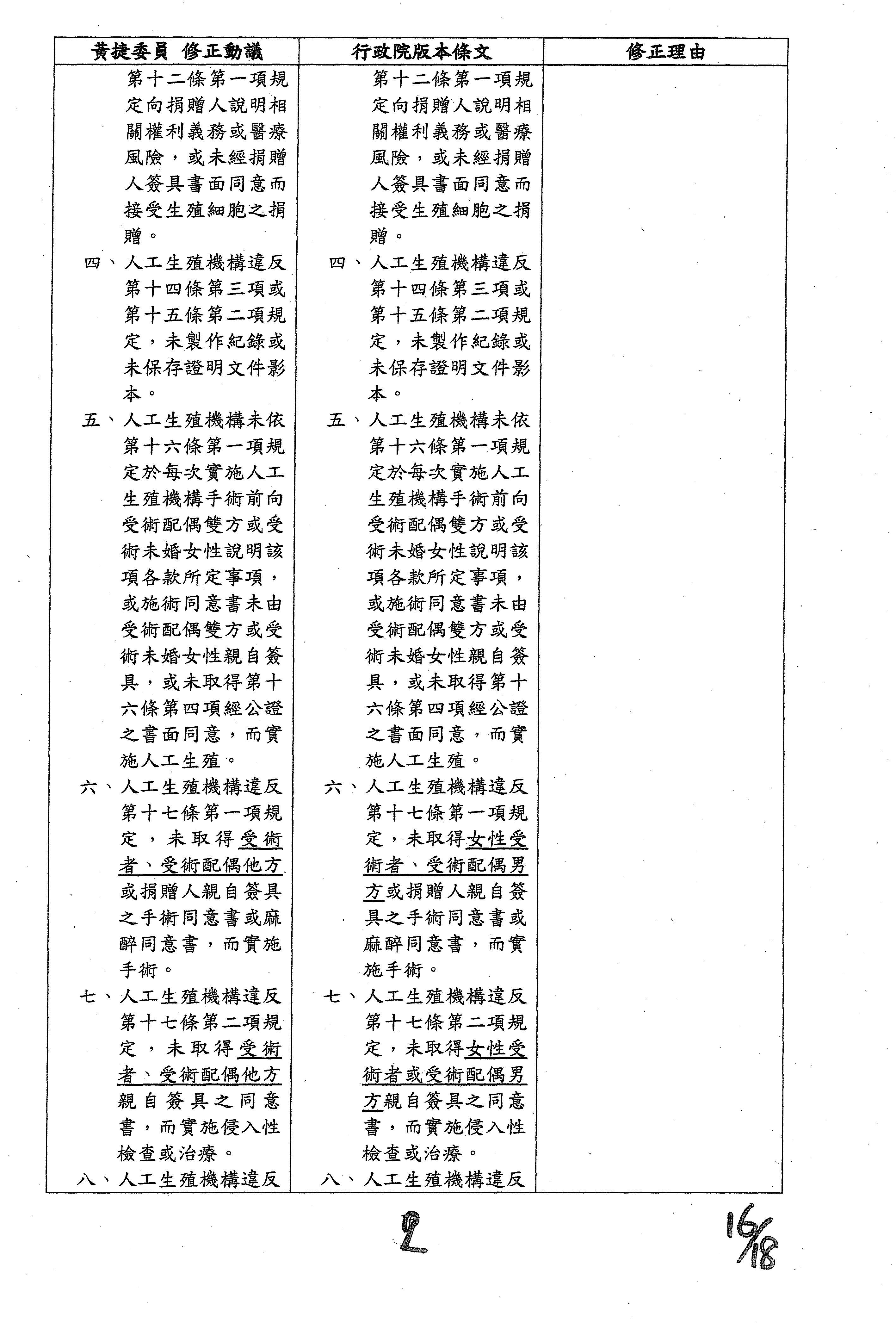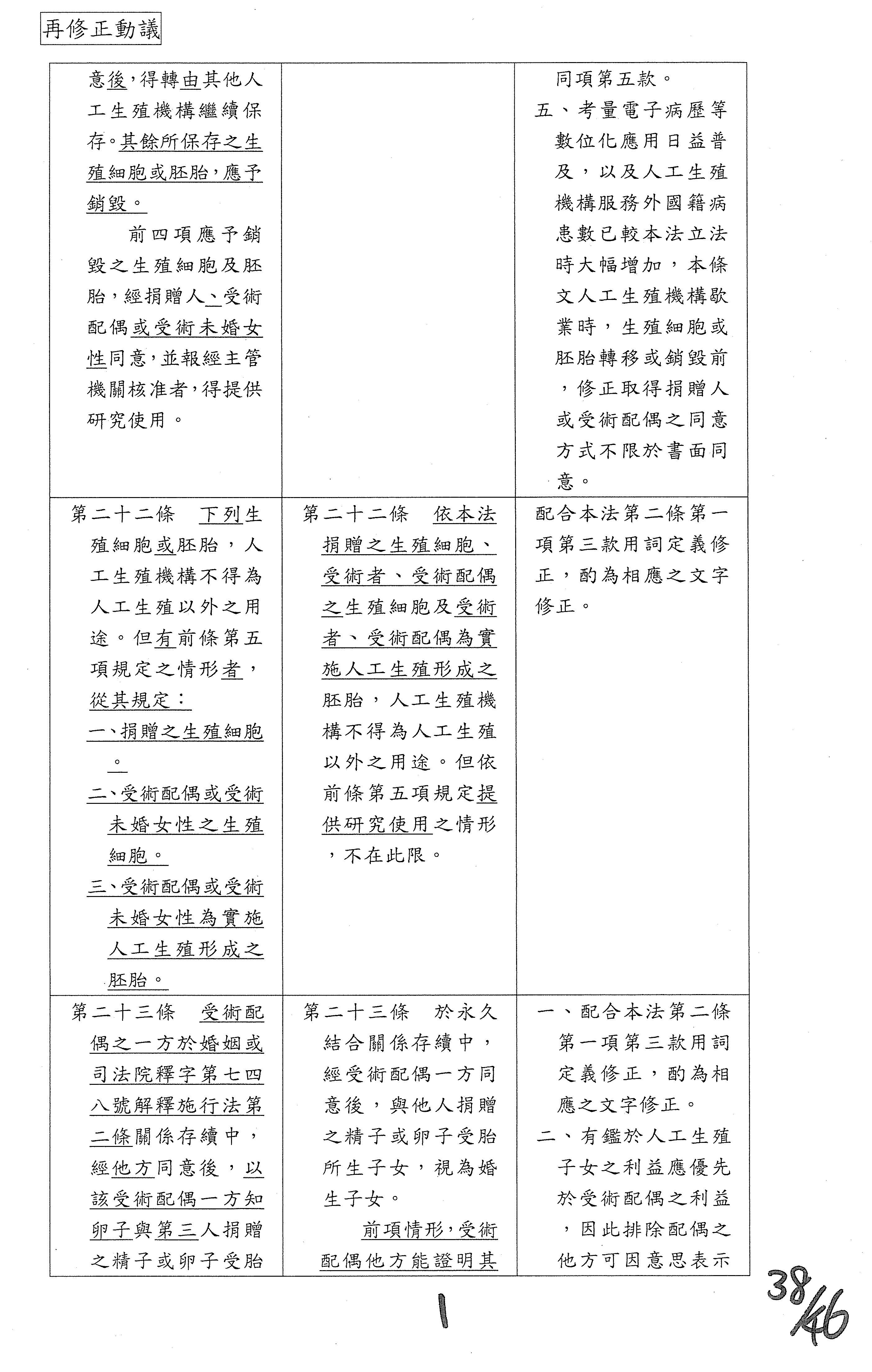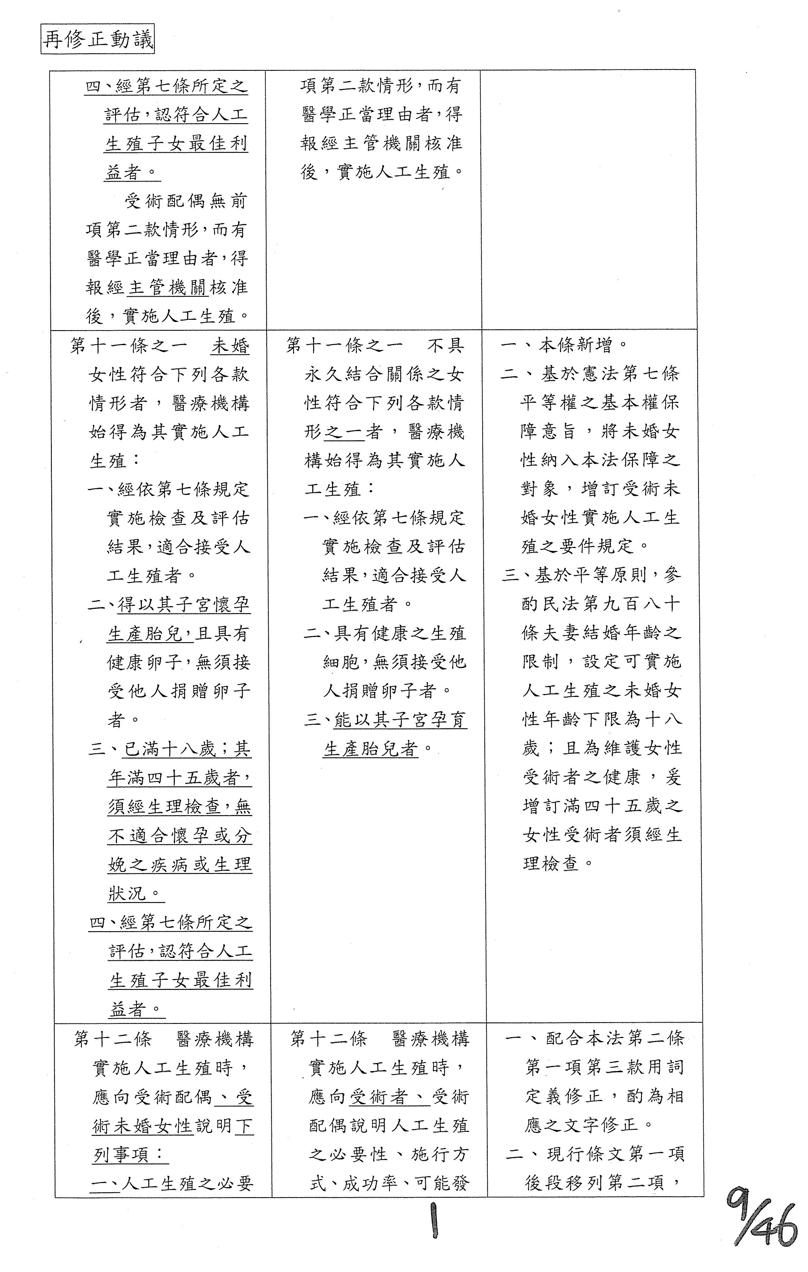 (九)台灣民眾黨黨團擬具「人工生殖法部分條文修正草案」案。