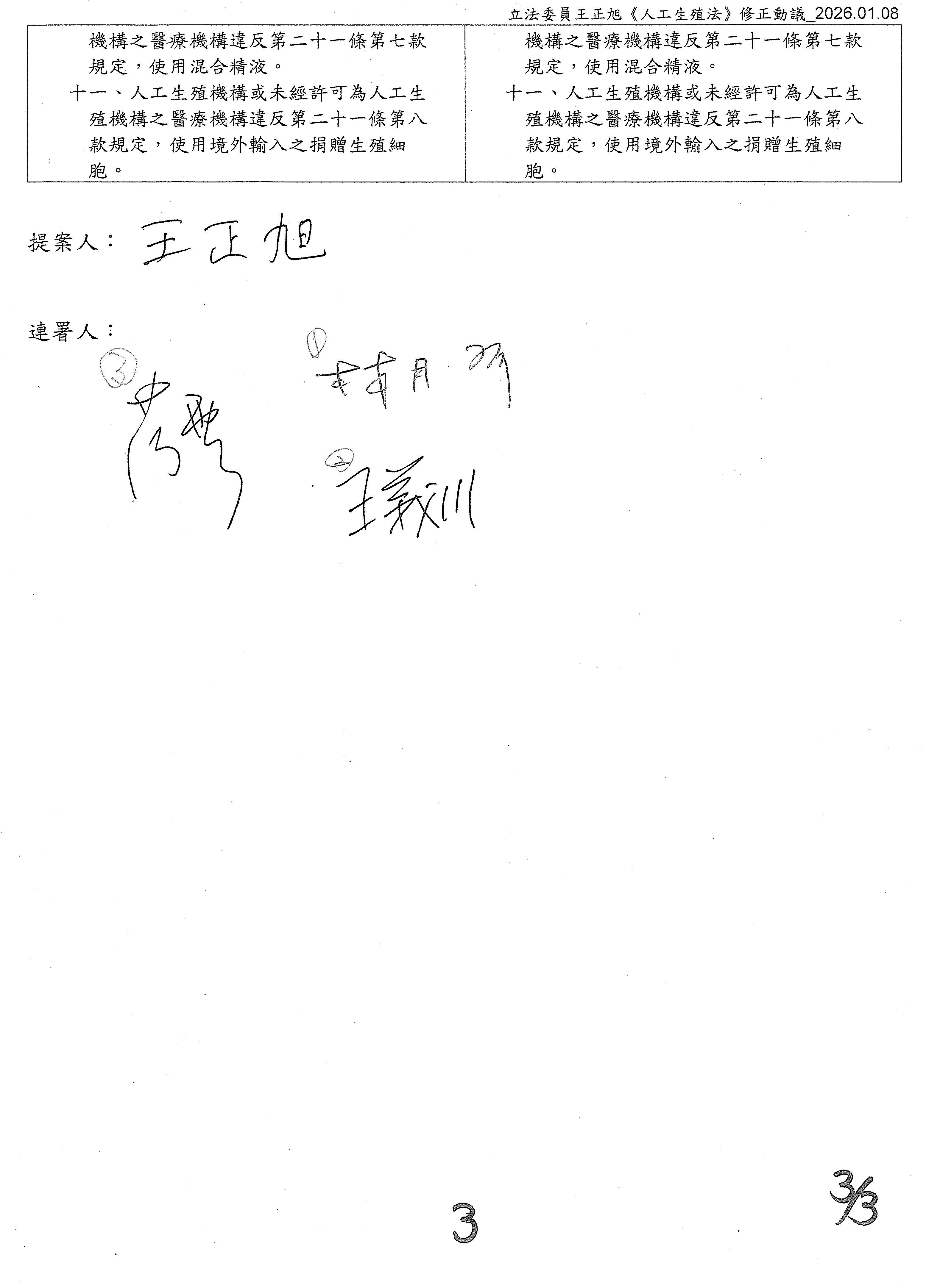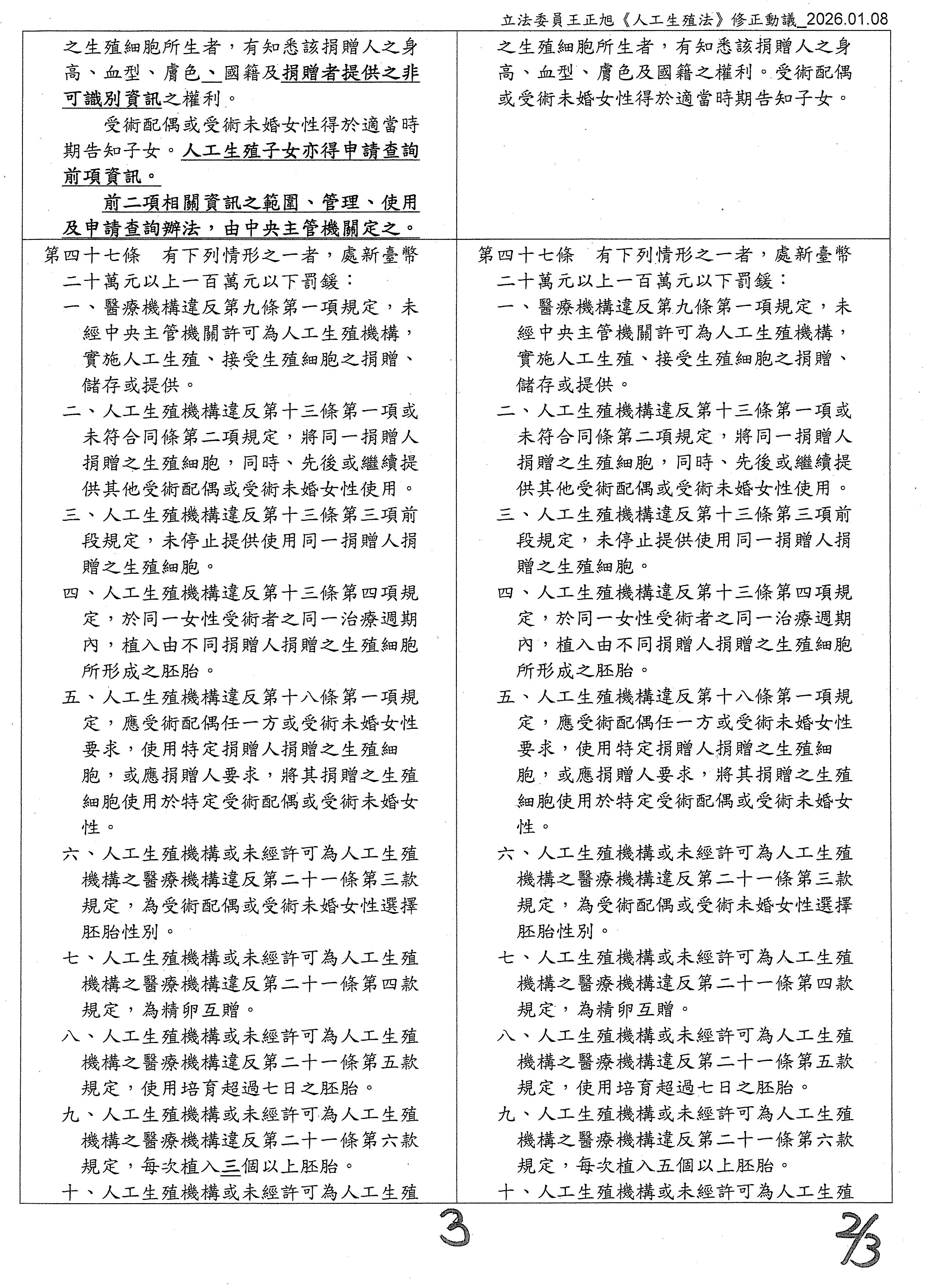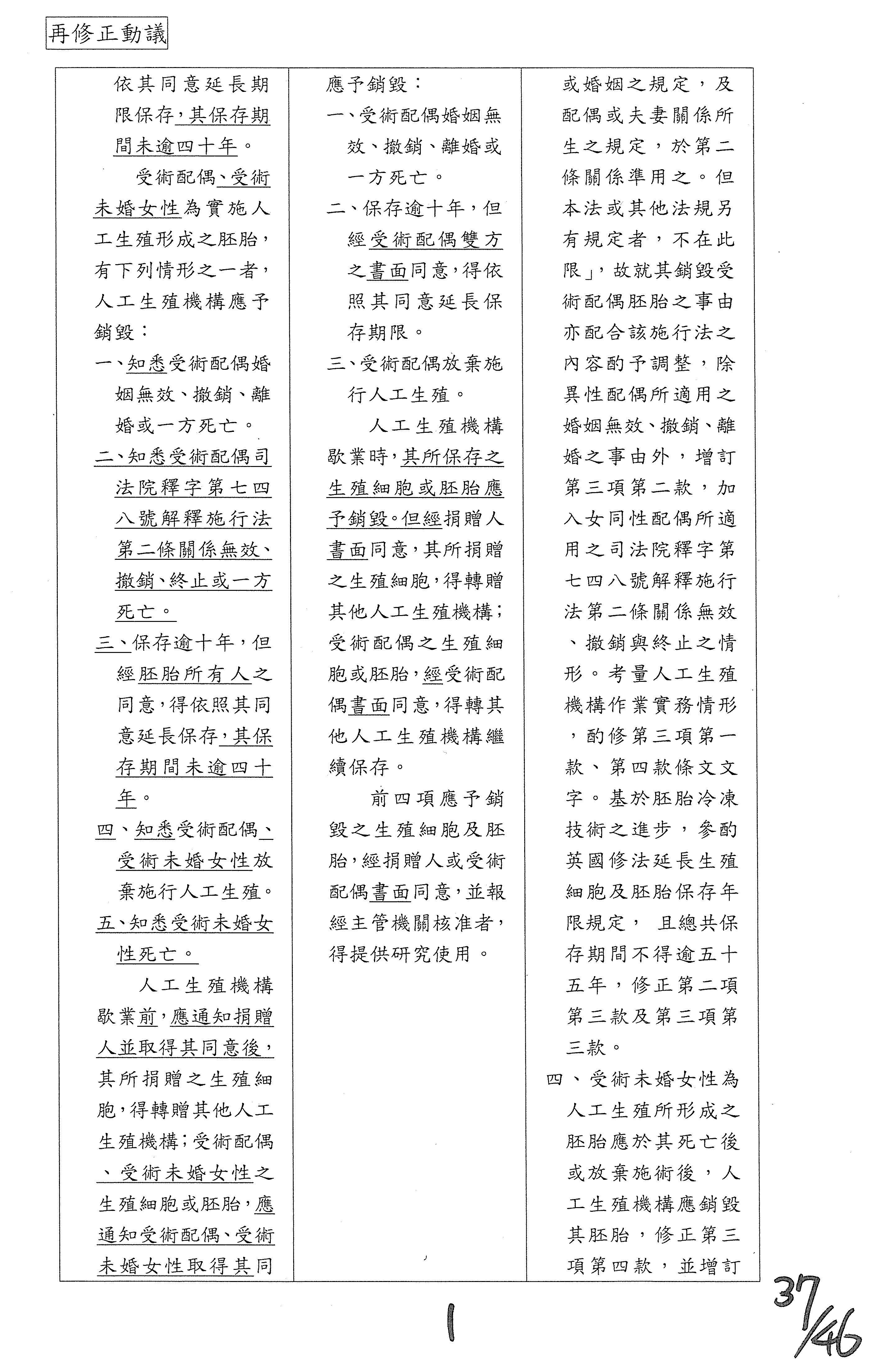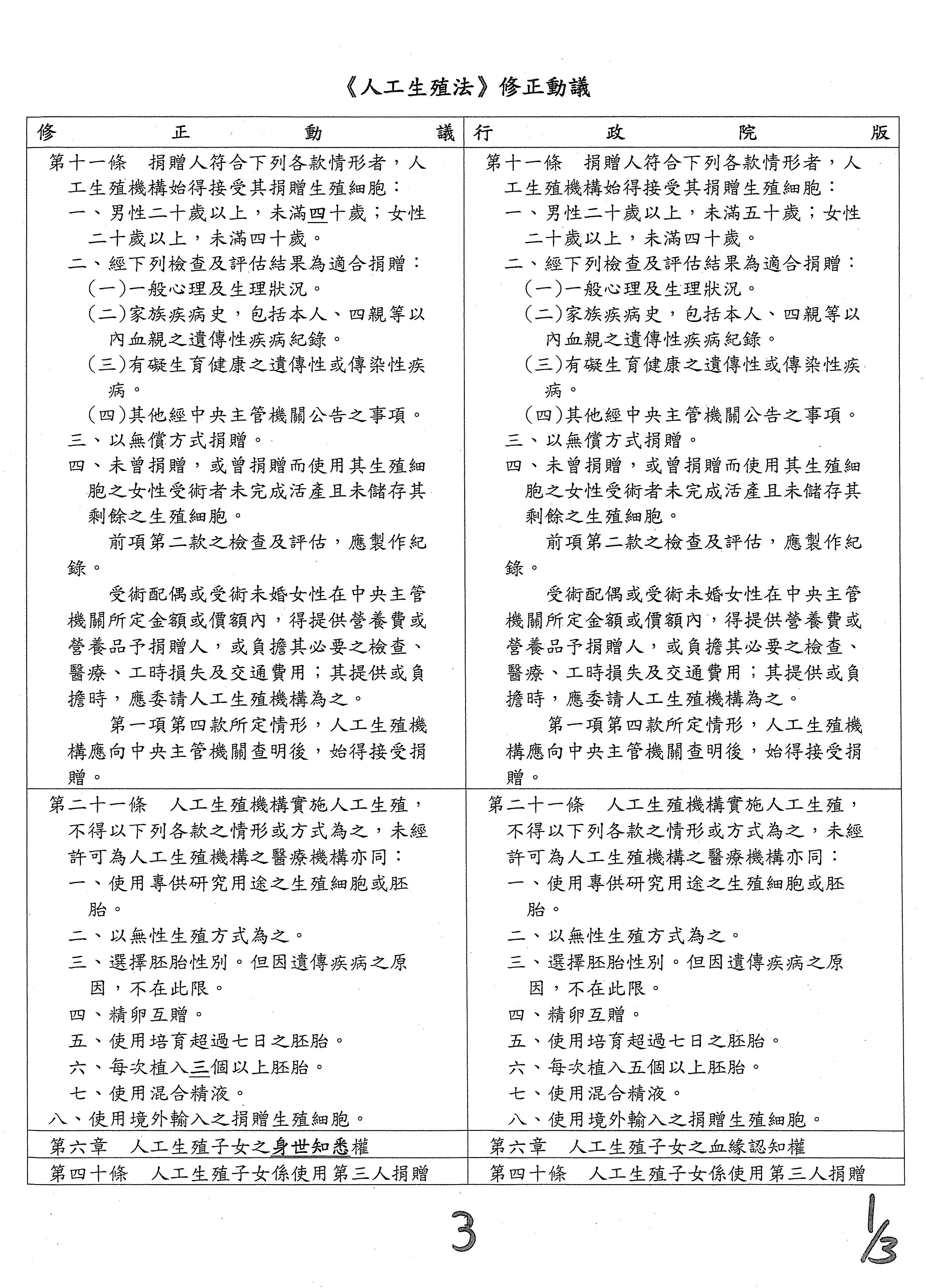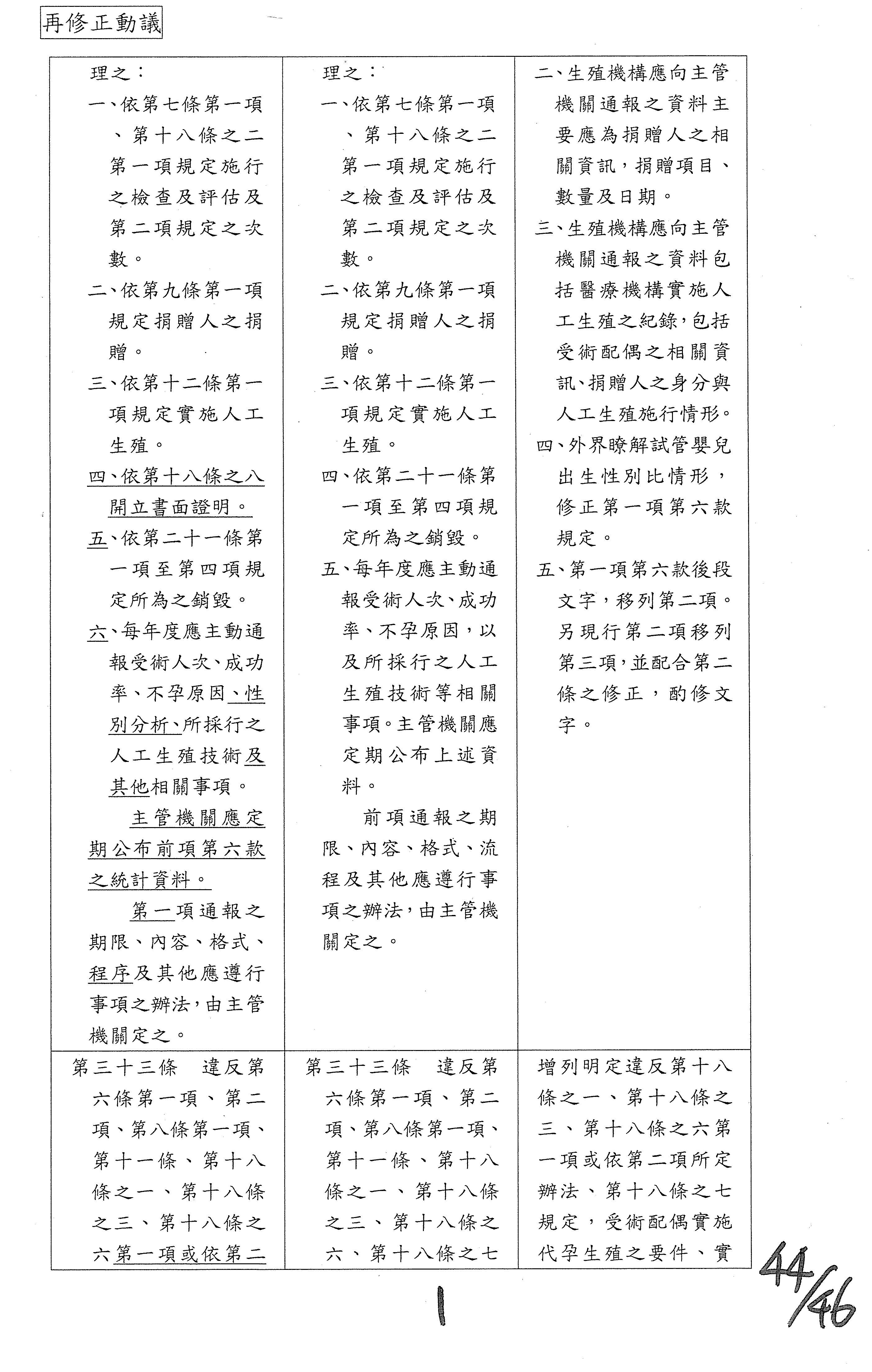 (三)委員顏寬恒等16人擬具「人工生殖法部分條文修正草案」案。