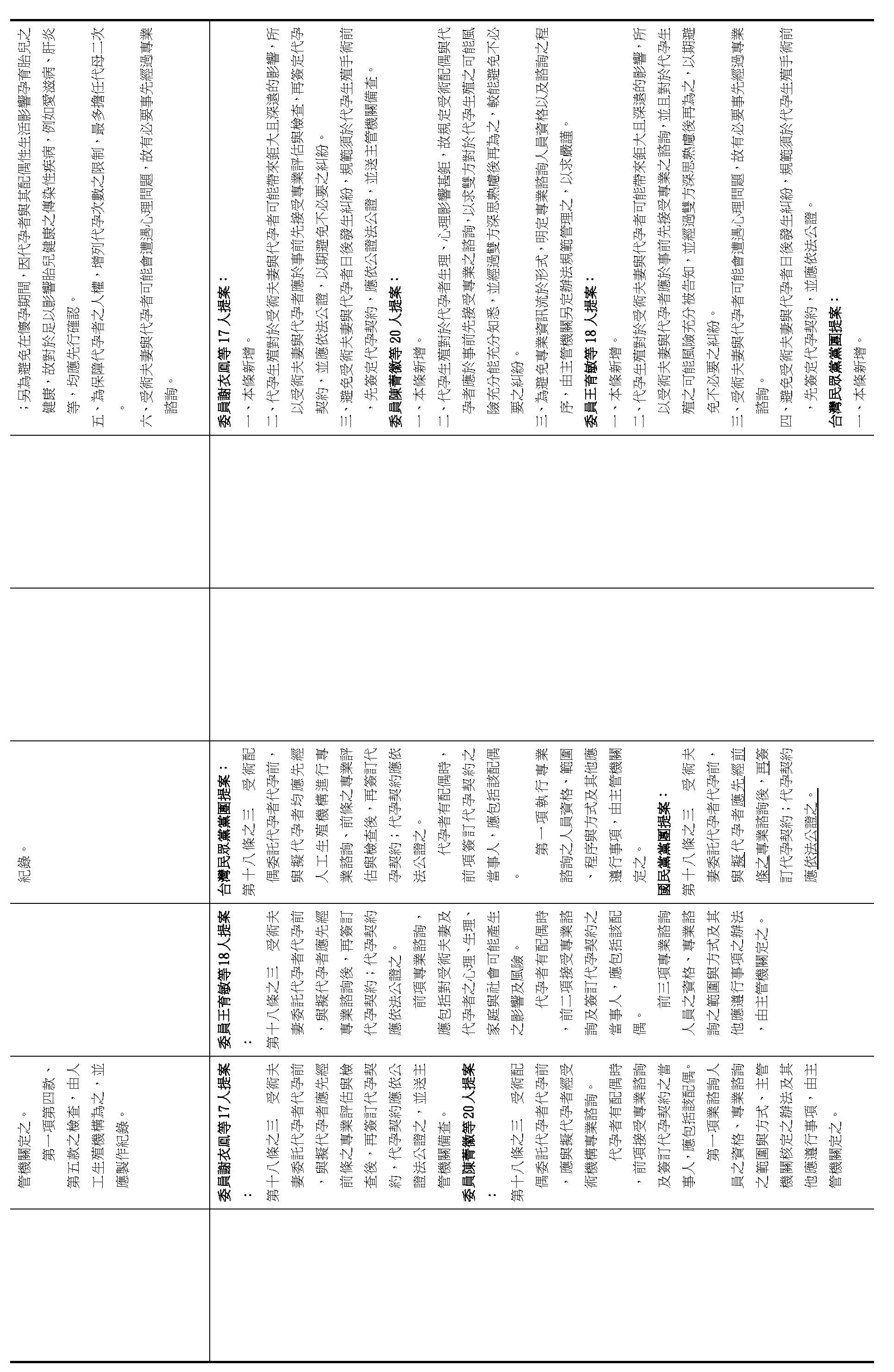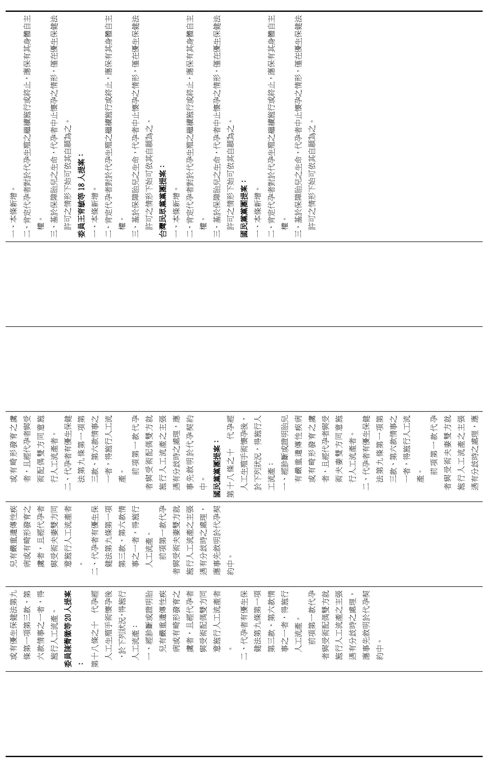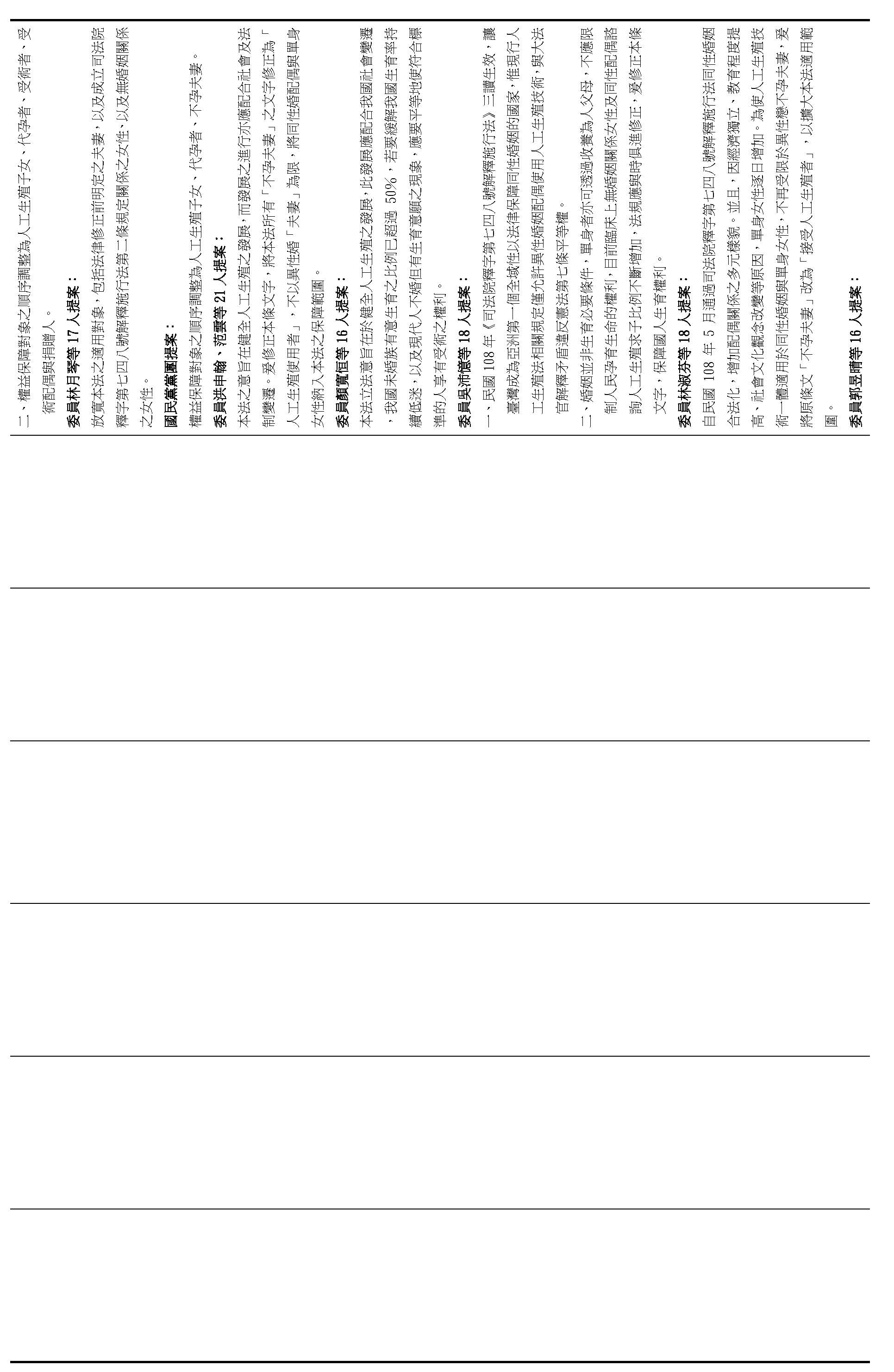 林委員淑芬:沒關係,我只有一句話,最新的民調83%的人是反對代理孕母合法化的,所以我們是希望大家……其實你提的那9條、15條真的不夠啦,你在這裡一定要給它塞進來,這真的是欠缺周全。