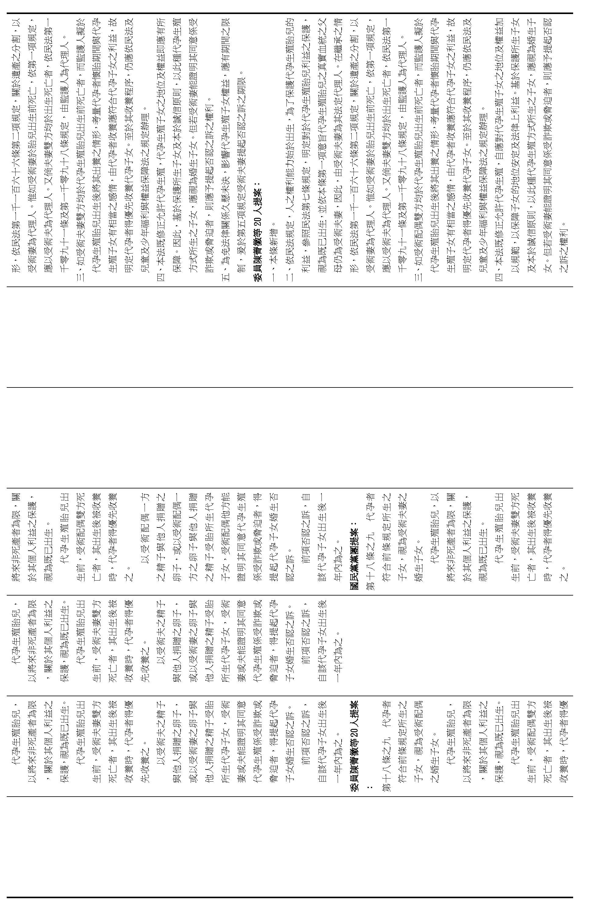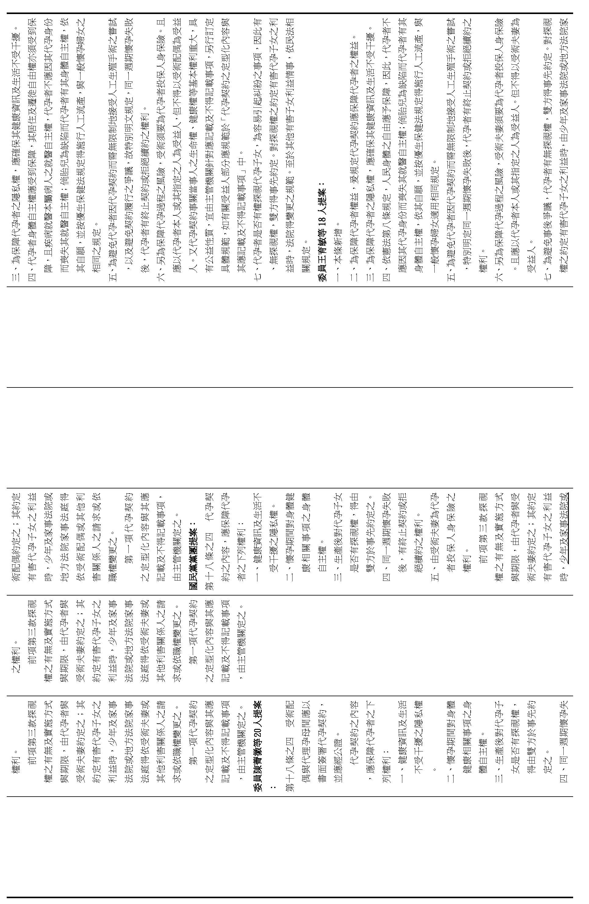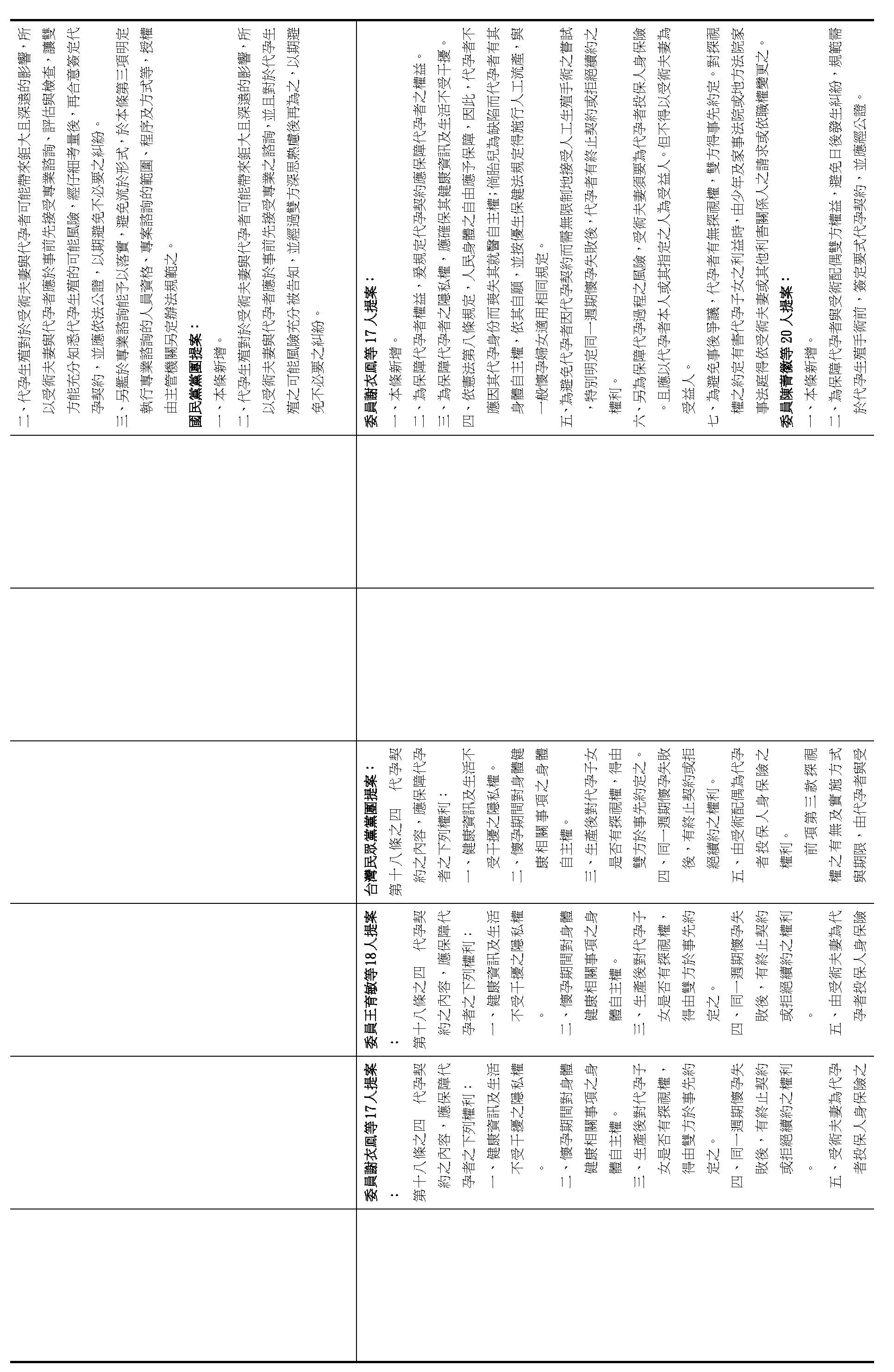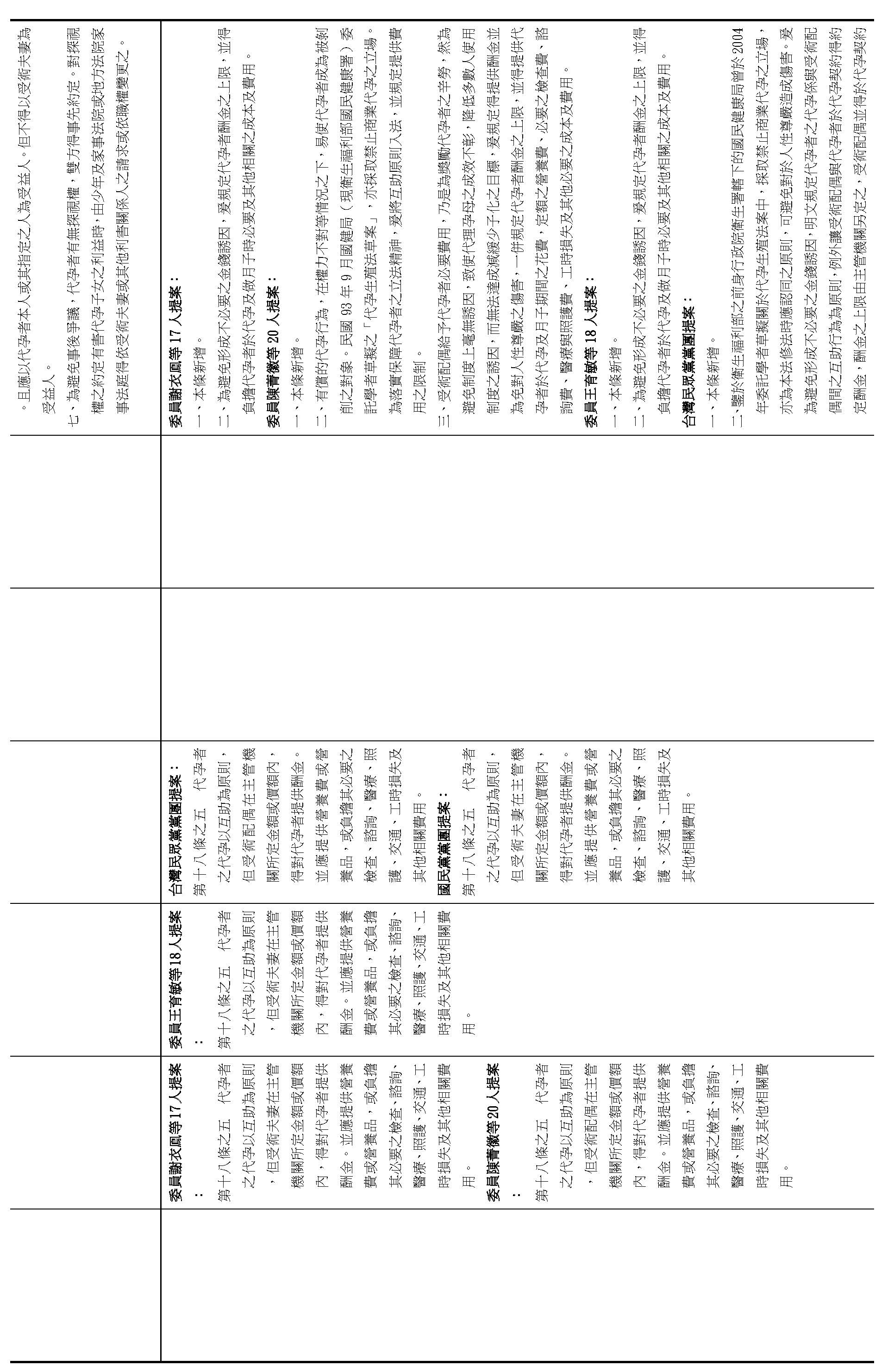 林委員淑芬:沒關係,我只有一句話,最新的民調83%的人是反對代理孕母合法化的,所以我們是希望大家……其實你提的那9條、15條真的不夠啦,你在這裡一定要給它塞進來,這真的是欠缺周全。