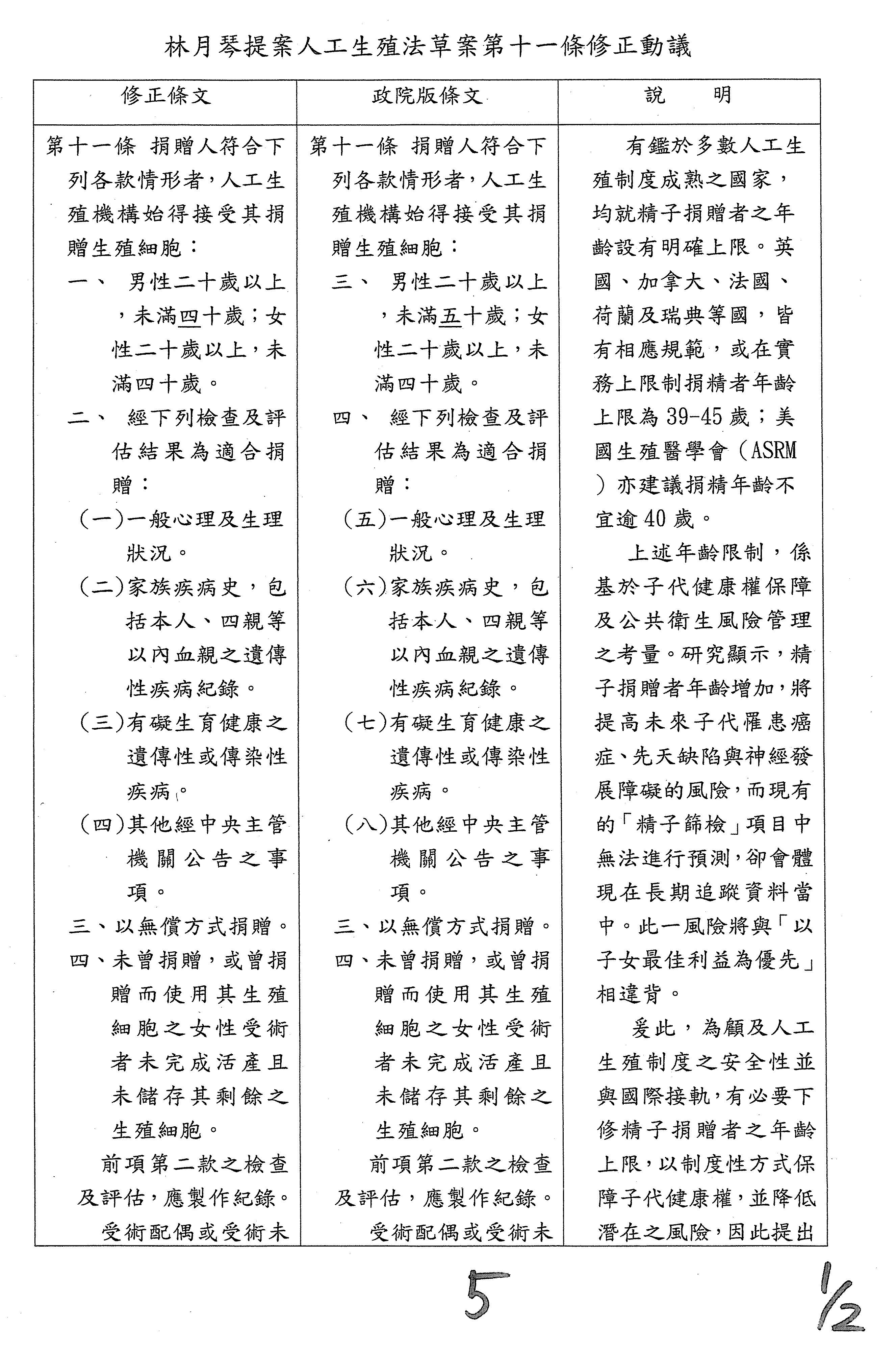 (五)委員范雲等16人擬具「人工生殖法部分條文修正草案」案。