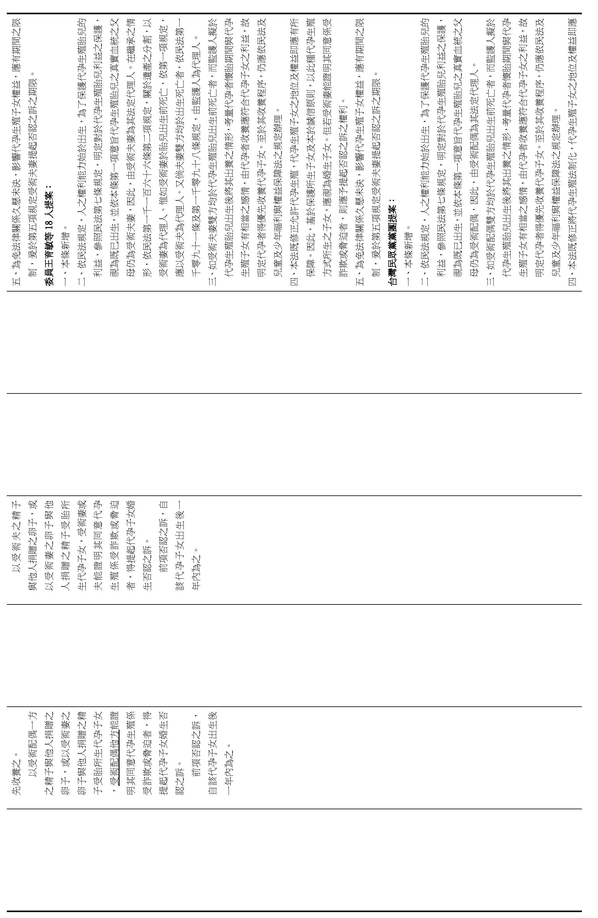 沈署長靜芬:白話文就是我們認為目前社會對代孕沒有共識,所以建議這個部分就暫維持行政院版本,不列入代孕的部分。