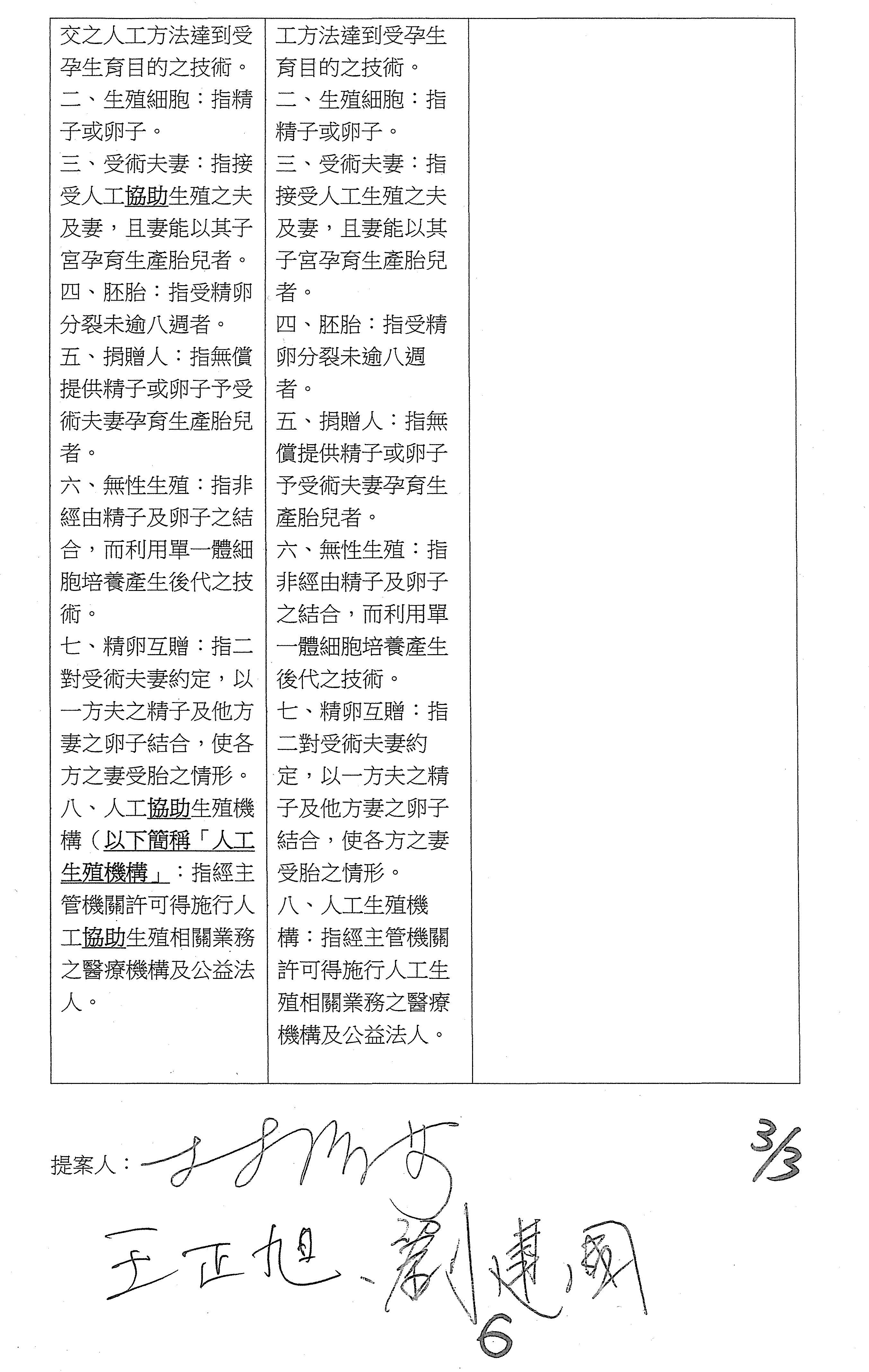 (二)委員鄭正鈐等20人擬具「人工生殖法第六條條文修正草案」案。