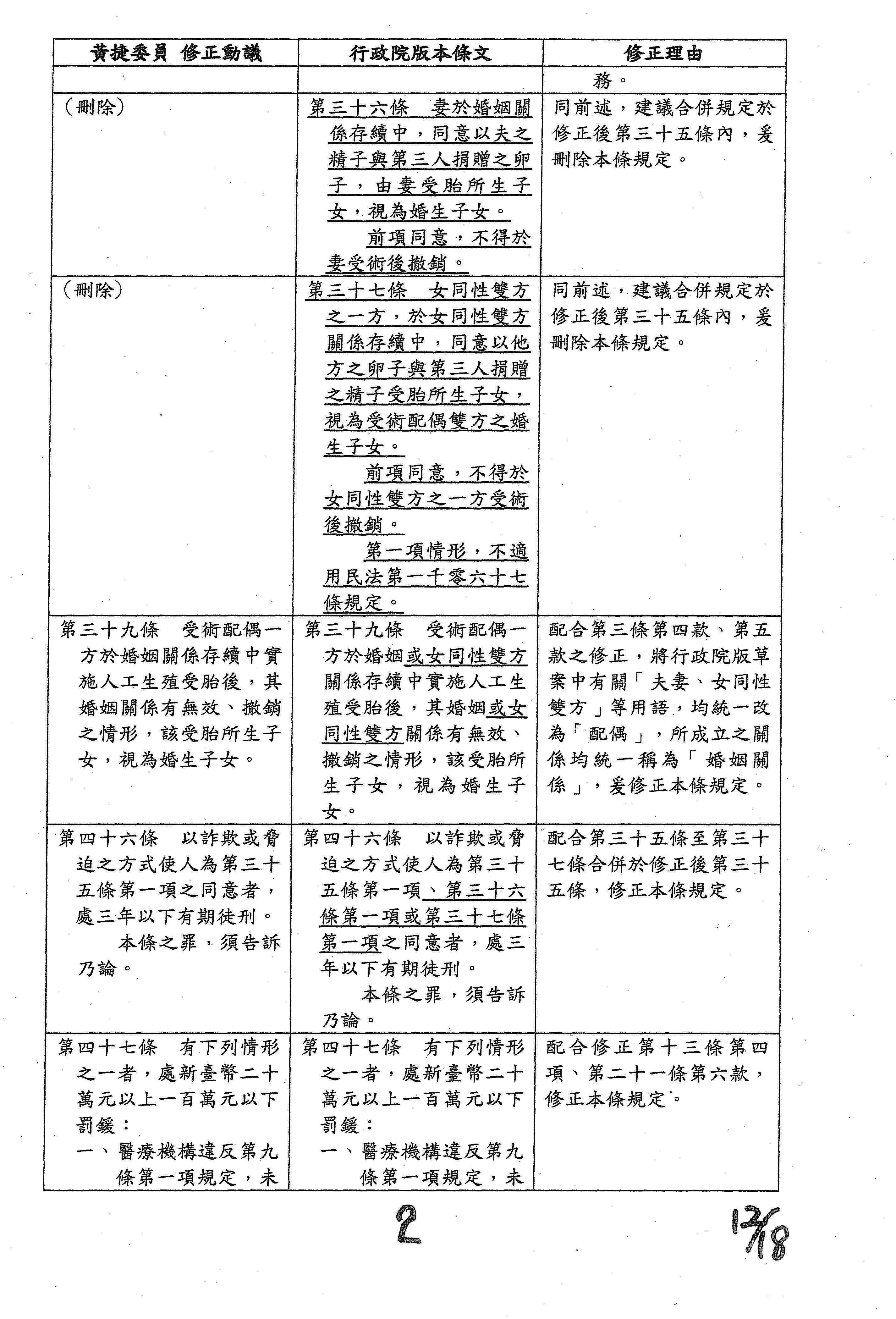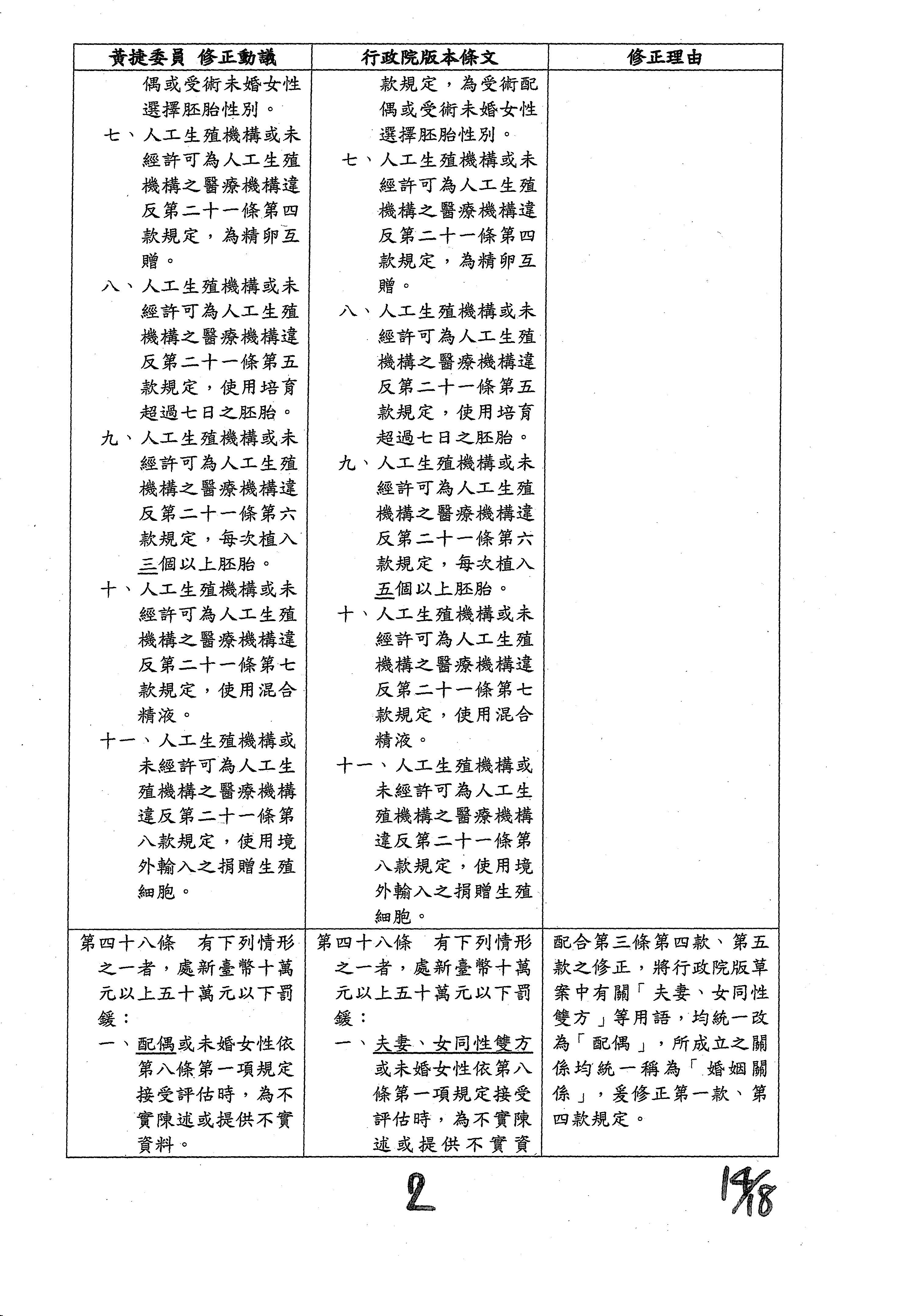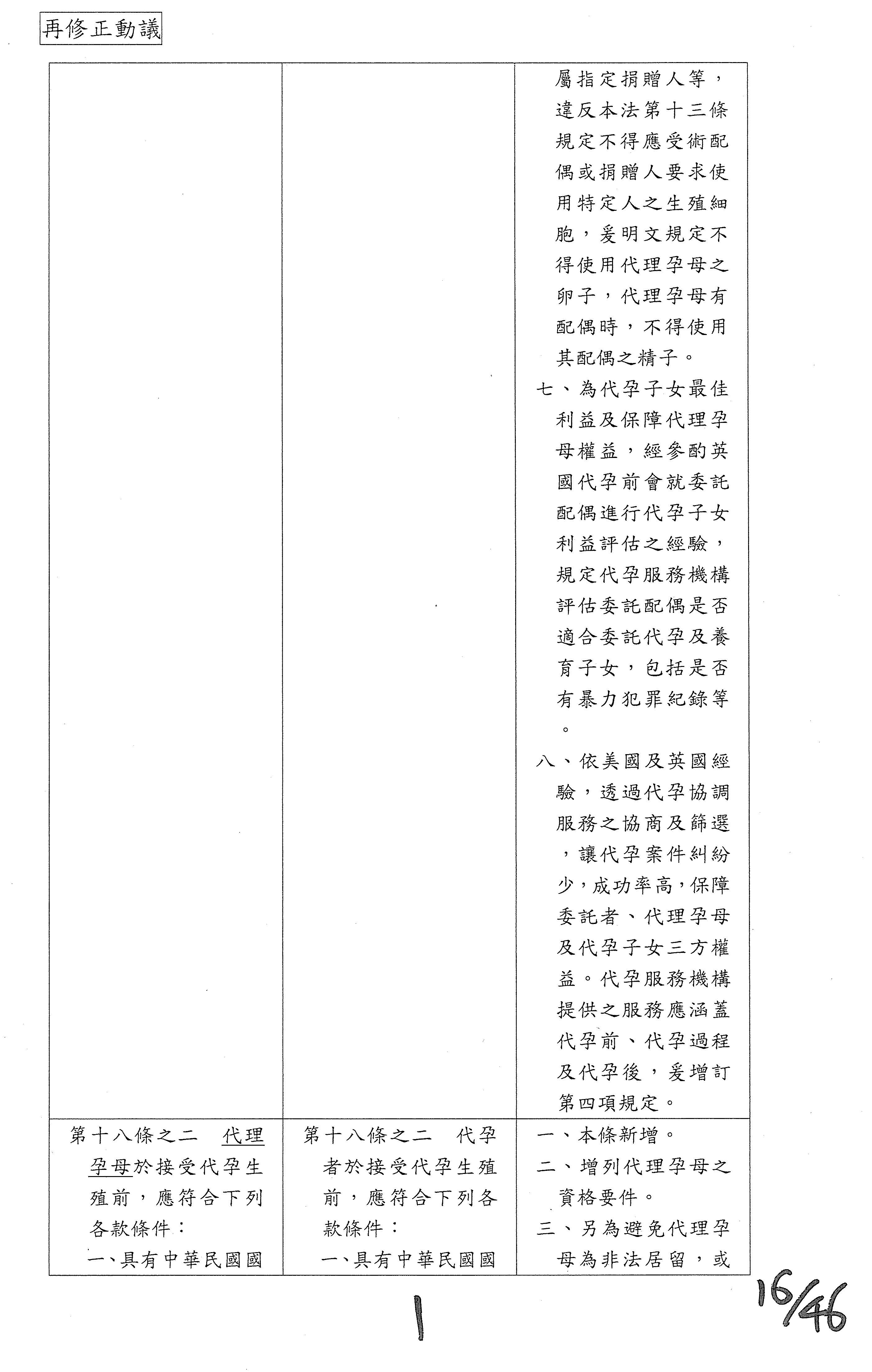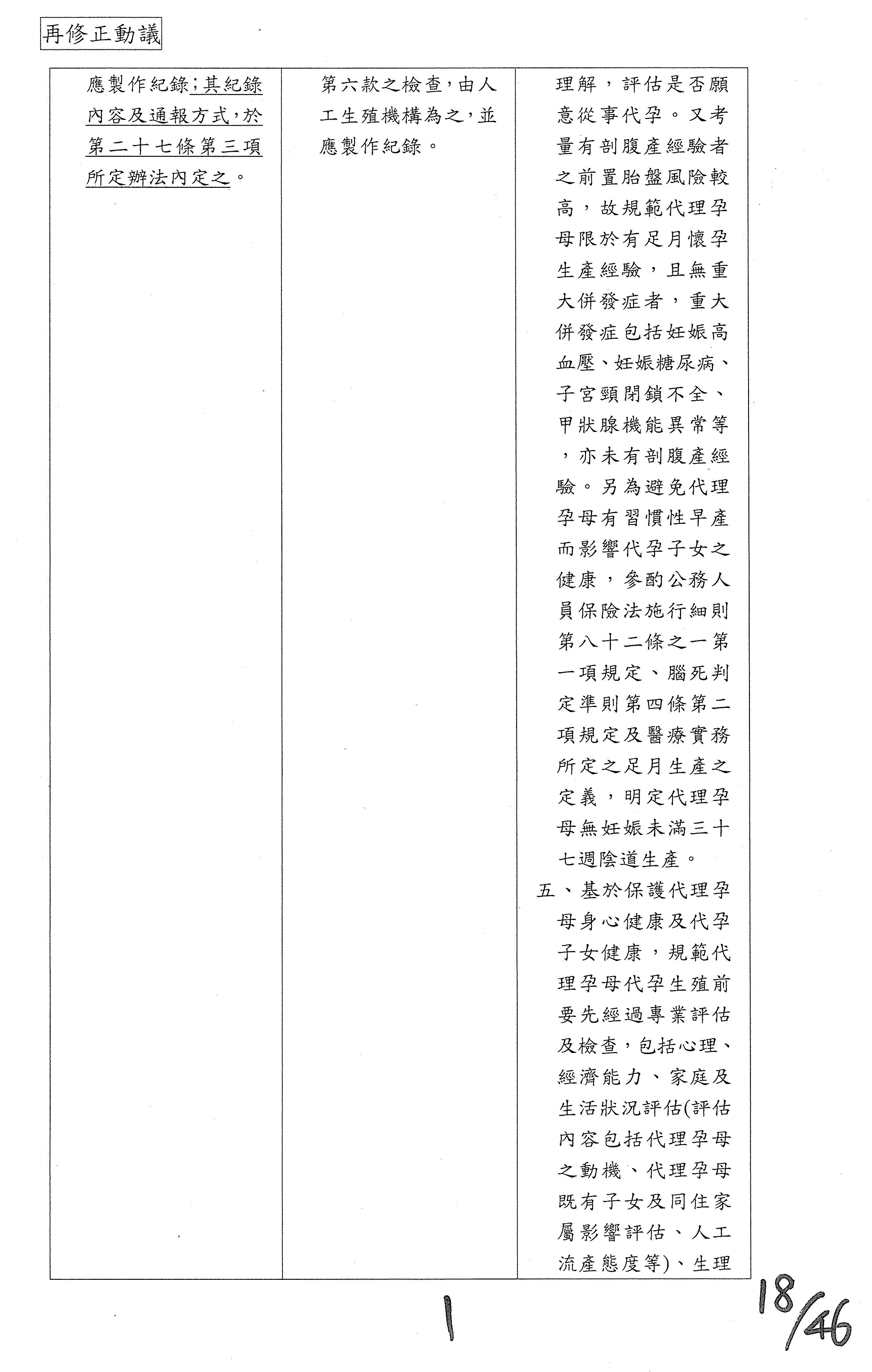 陳委員昭姿:因為我一直在看再修正動議,不好意思,我們一直在看,而且再修正動議都是取自2024年行政院版本的名詞。主席,如果有單條保留,單條後面是刪除的,但是這條還是得保留,因為我們還是主張要將代理孕母列入人工生殖法,謝謝。