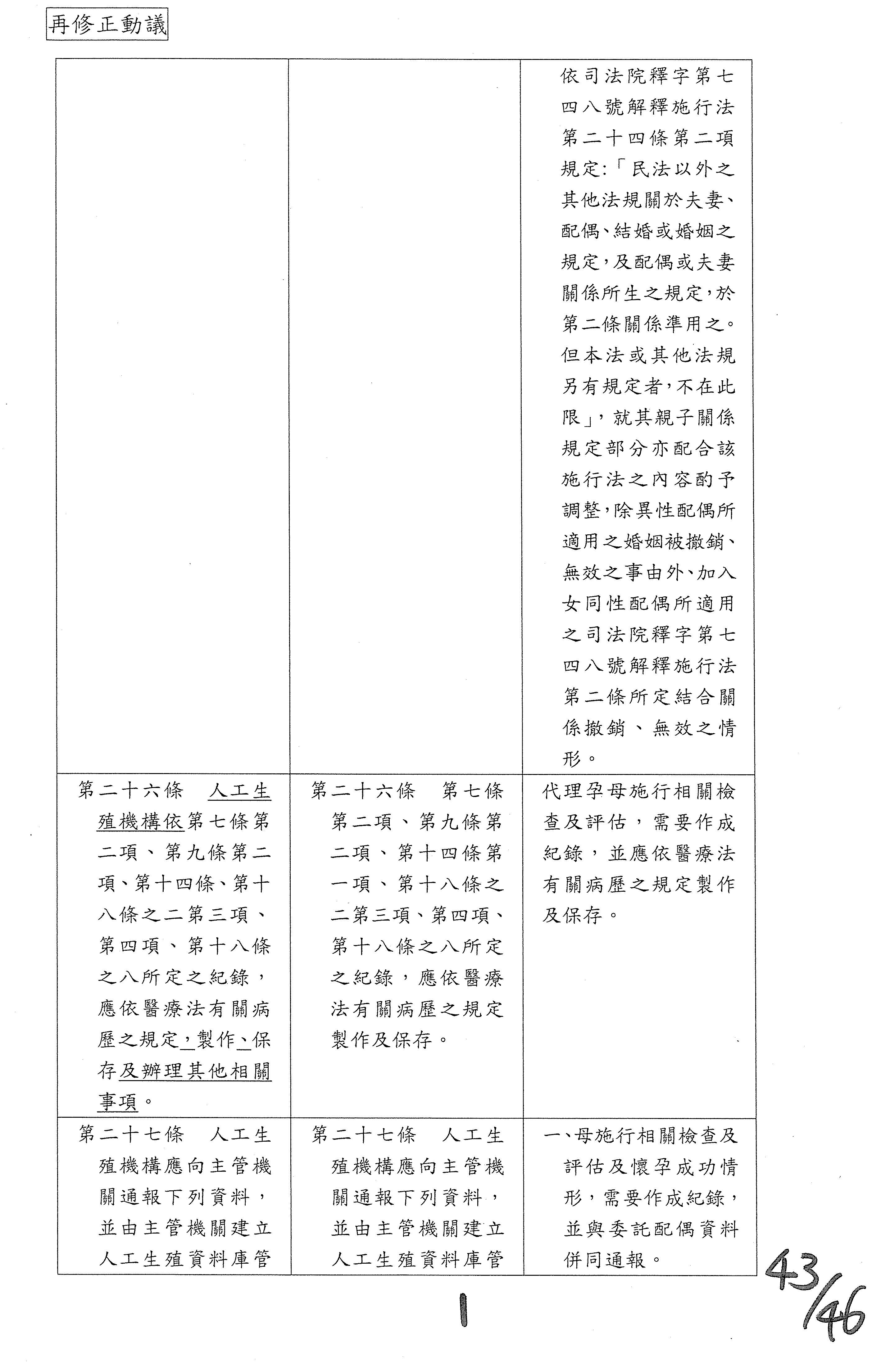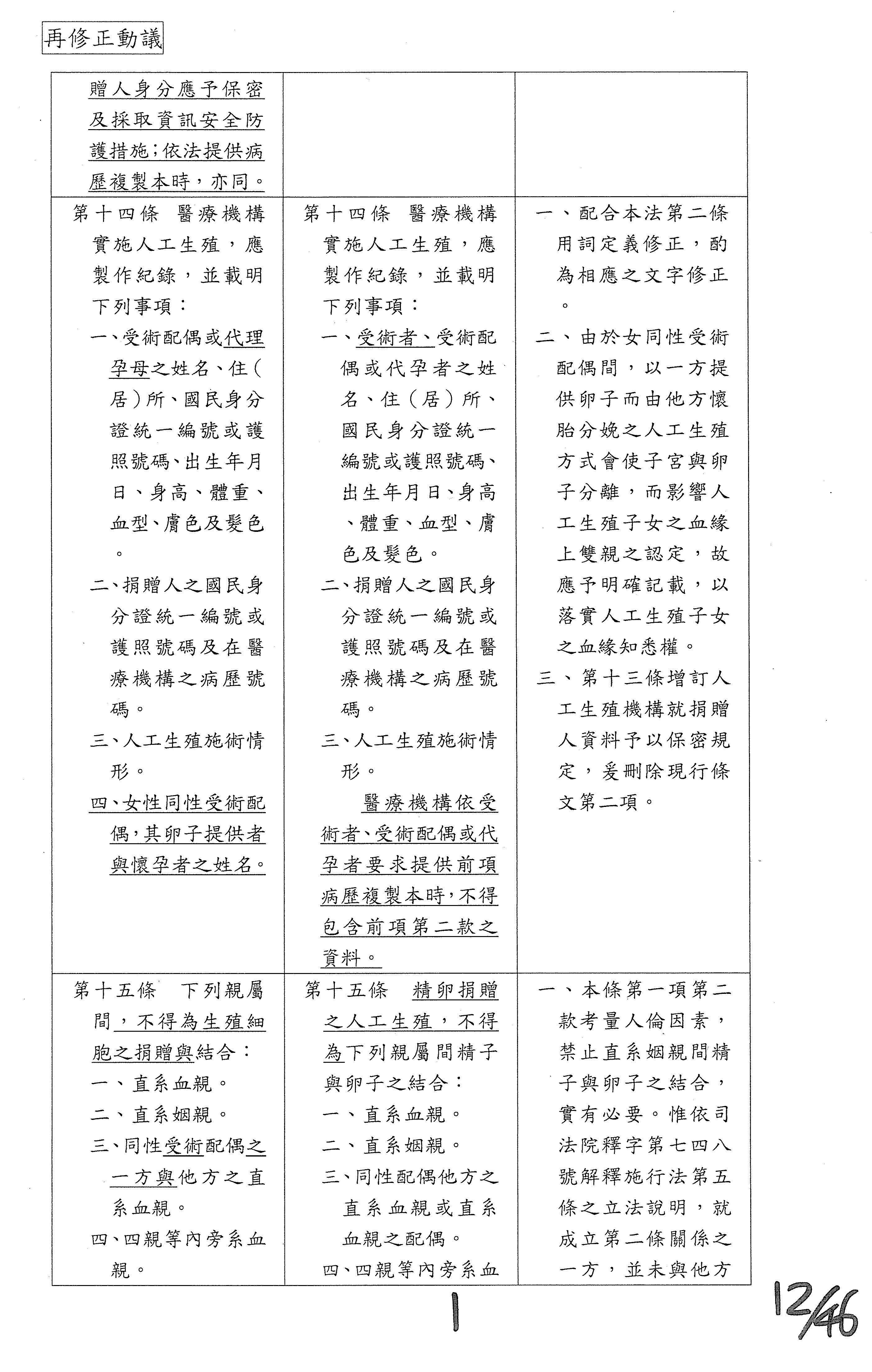 (十二)委員洪申翰、范雲等21人擬具「人工生殖法部分條文修正草案」案。