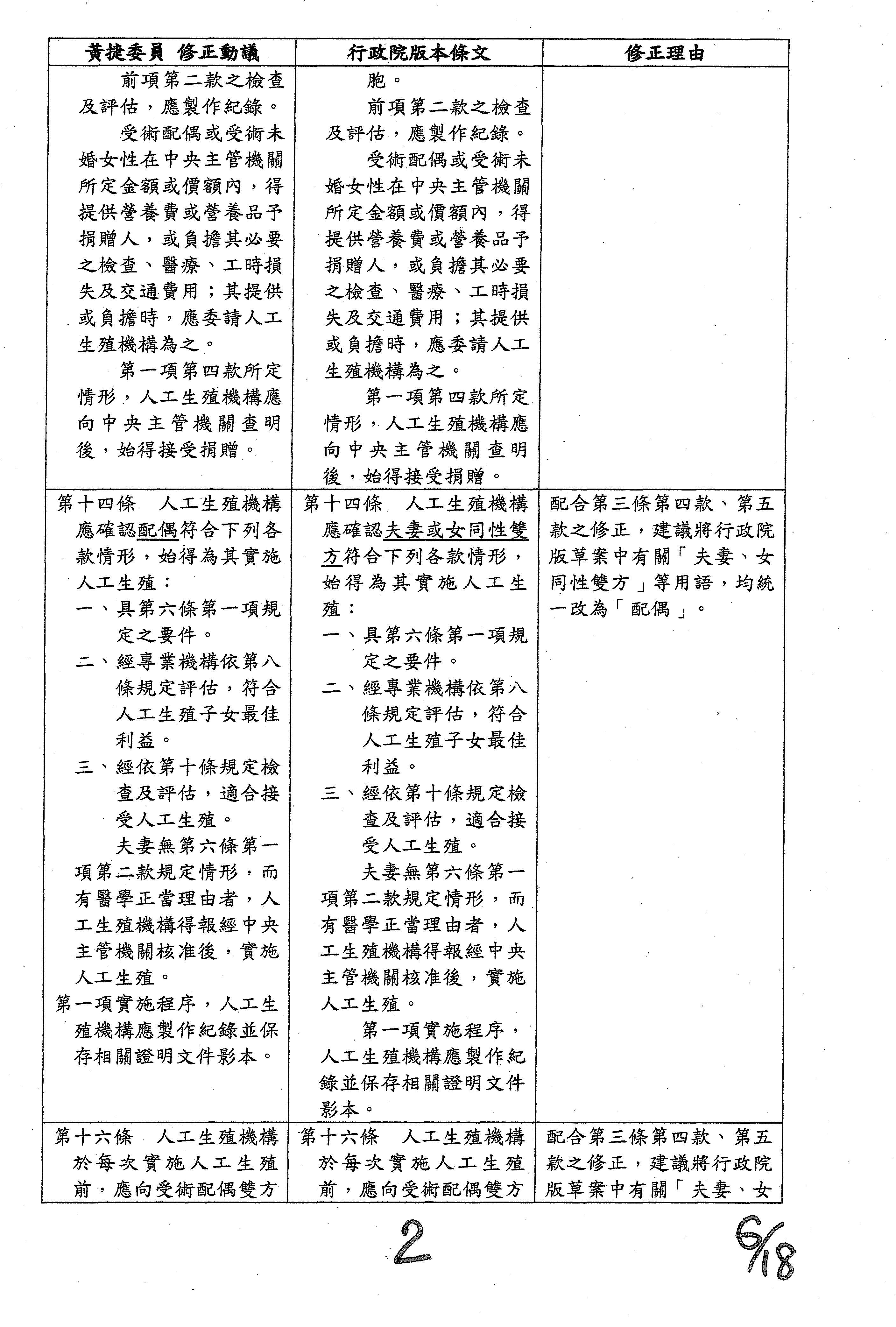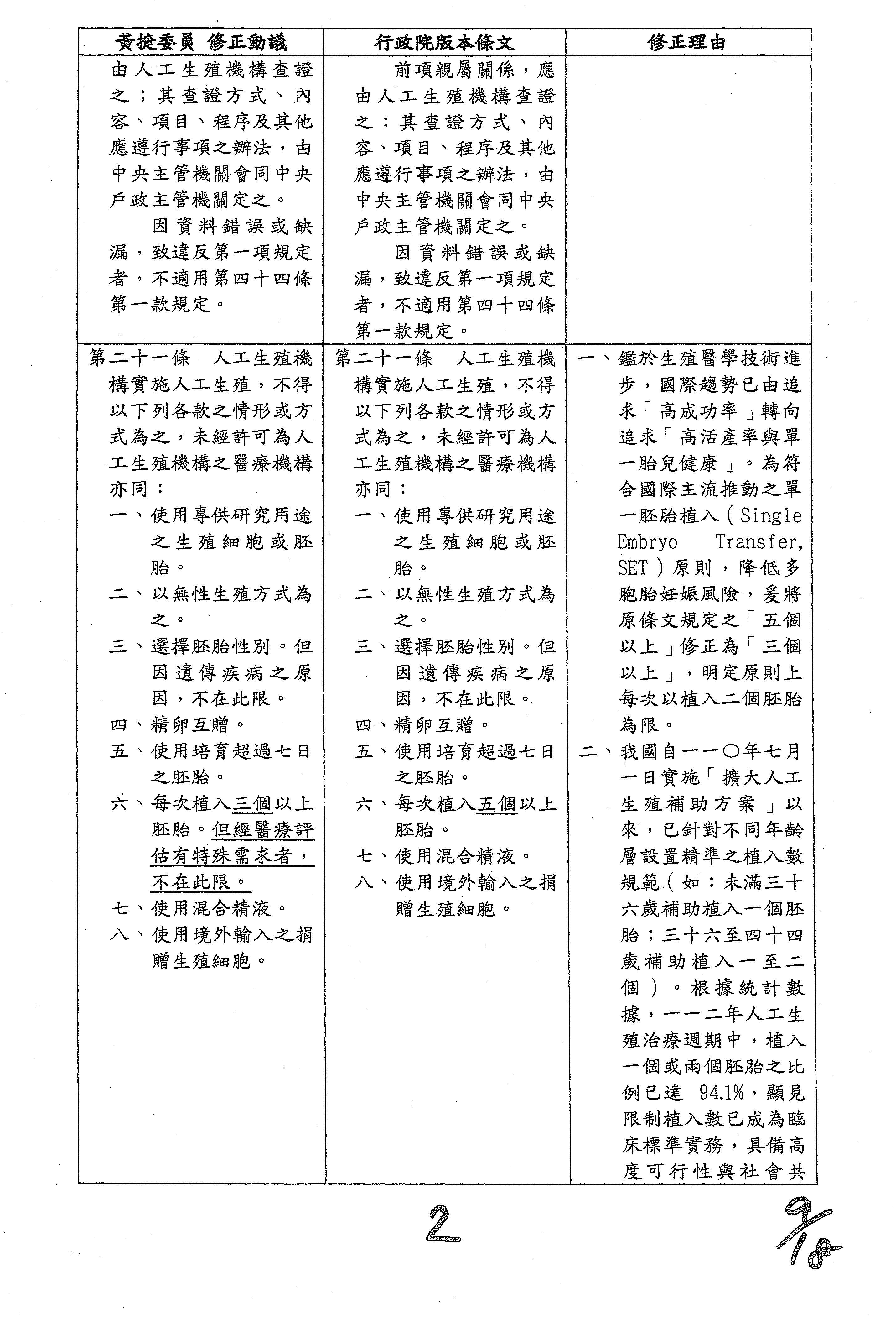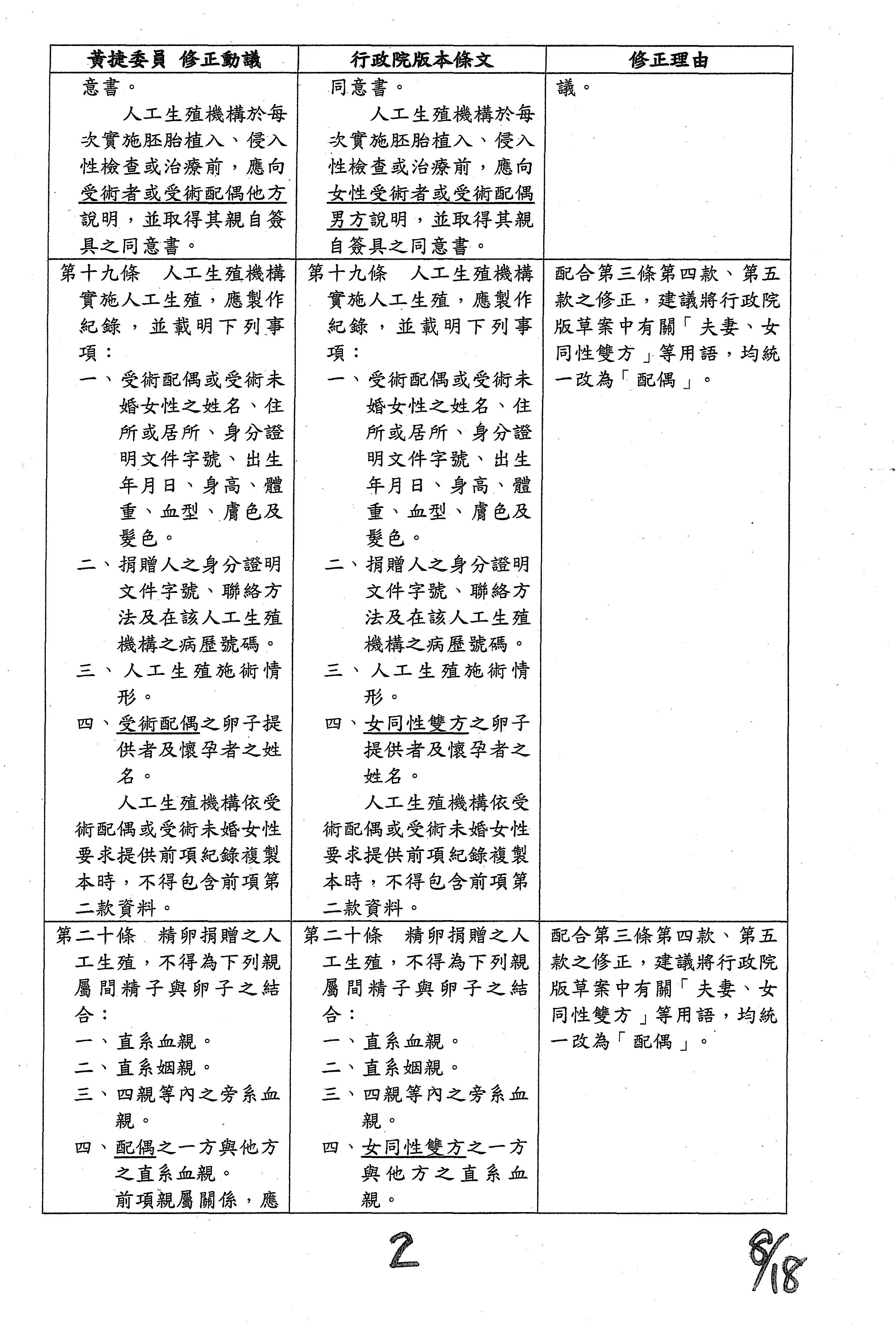 (二)委員陳菁徽等20人擬具「人工生殖法部分條文修正草案」案。
