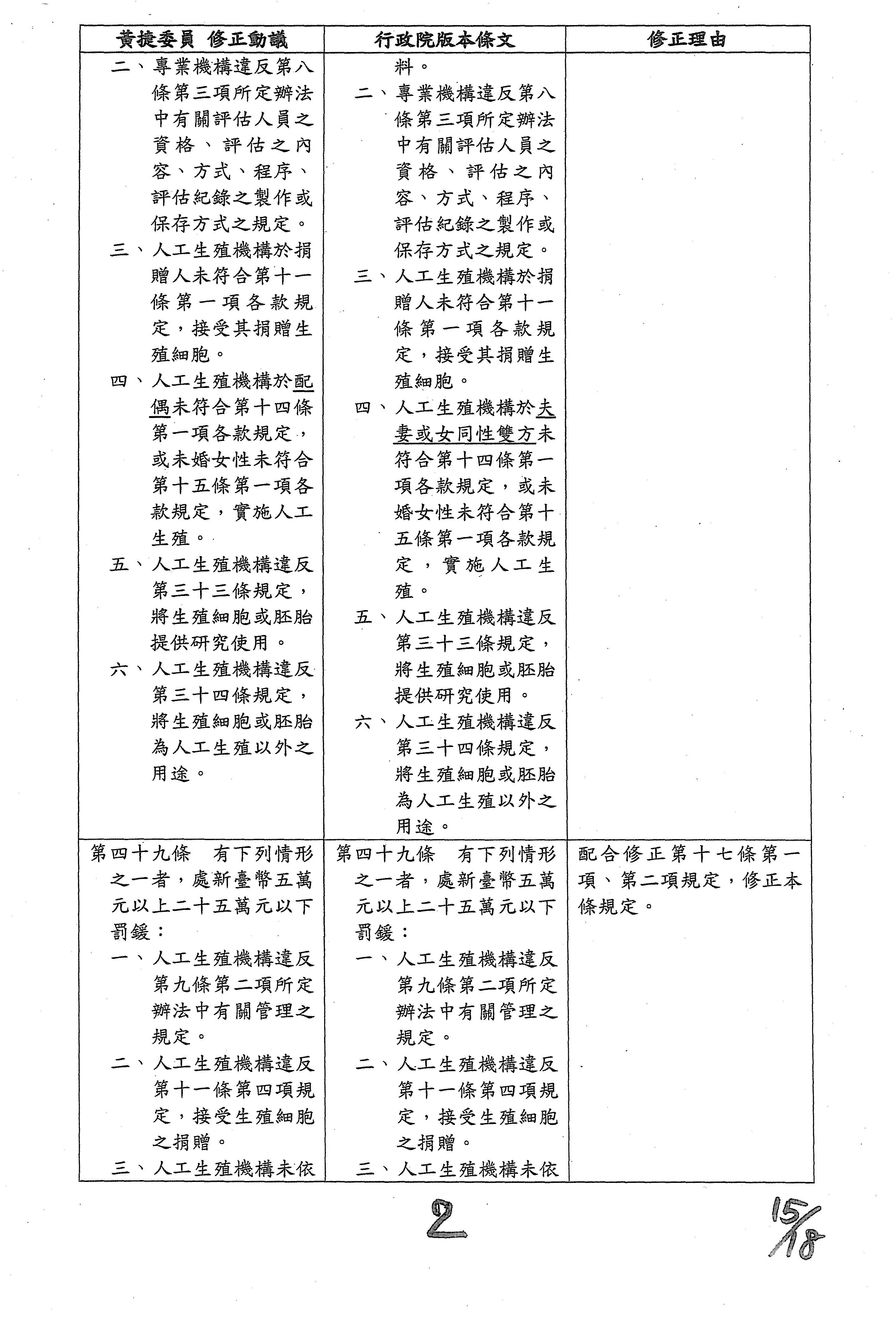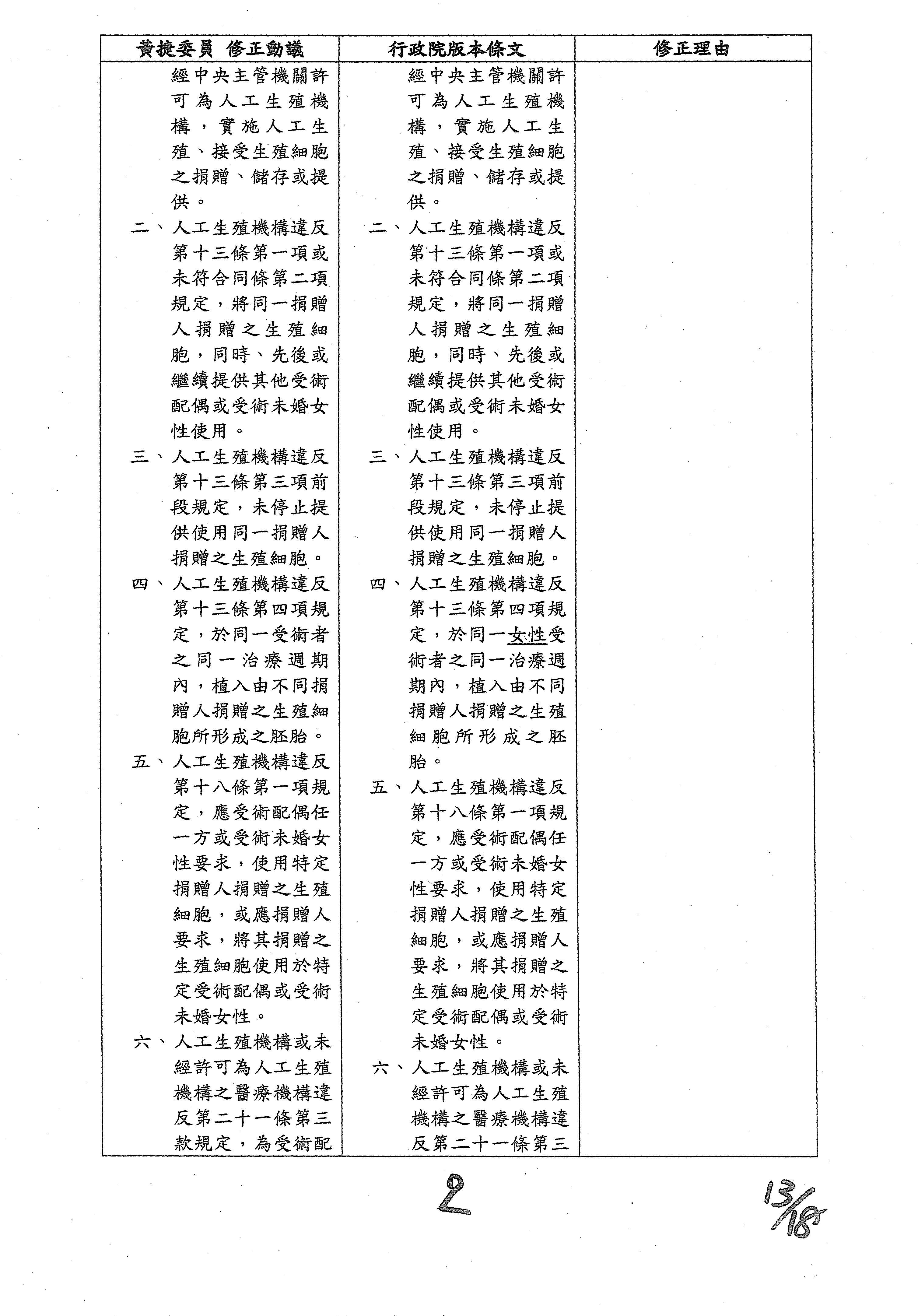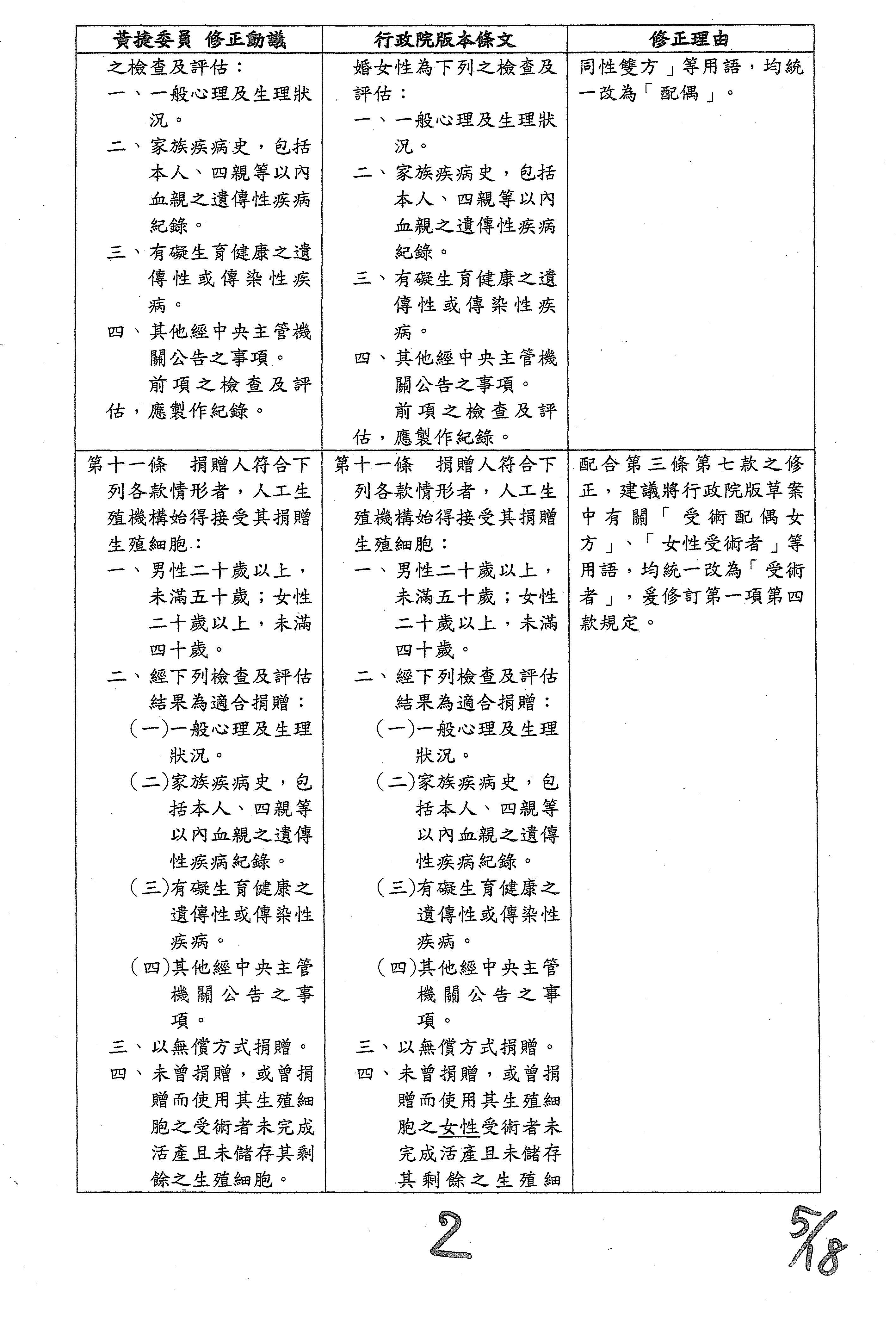 (二)委員陳菁徽等20人擬具「人工生殖法部分條文修正草案」案。