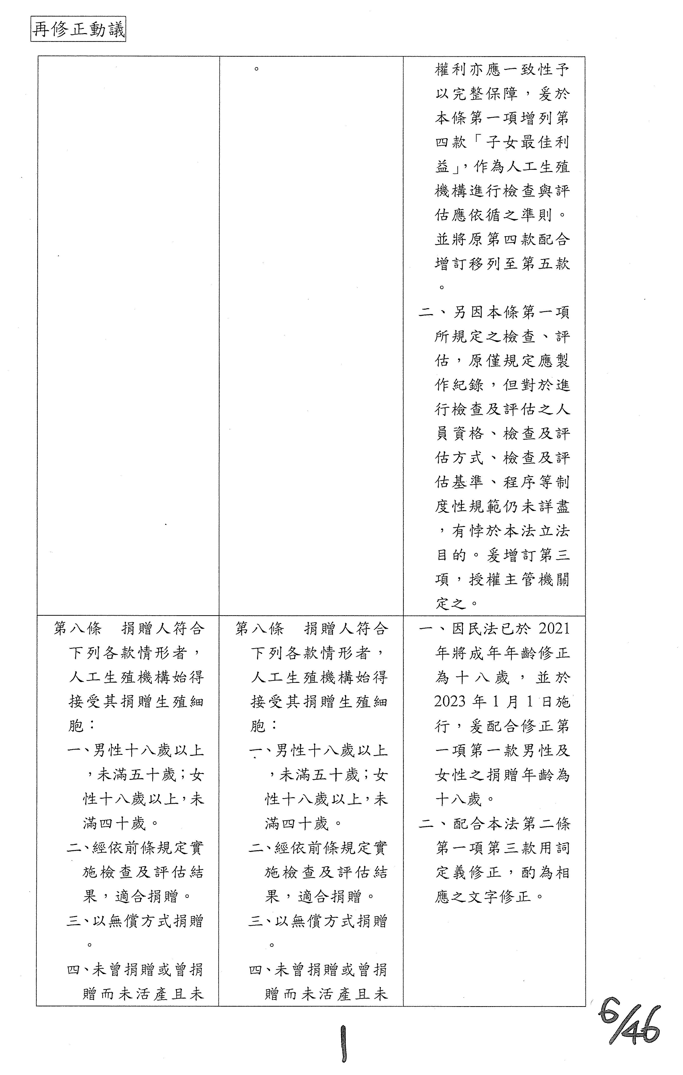 (六)委員林楚茵等18人擬具「人工生殖法部分條文修正草案」案。