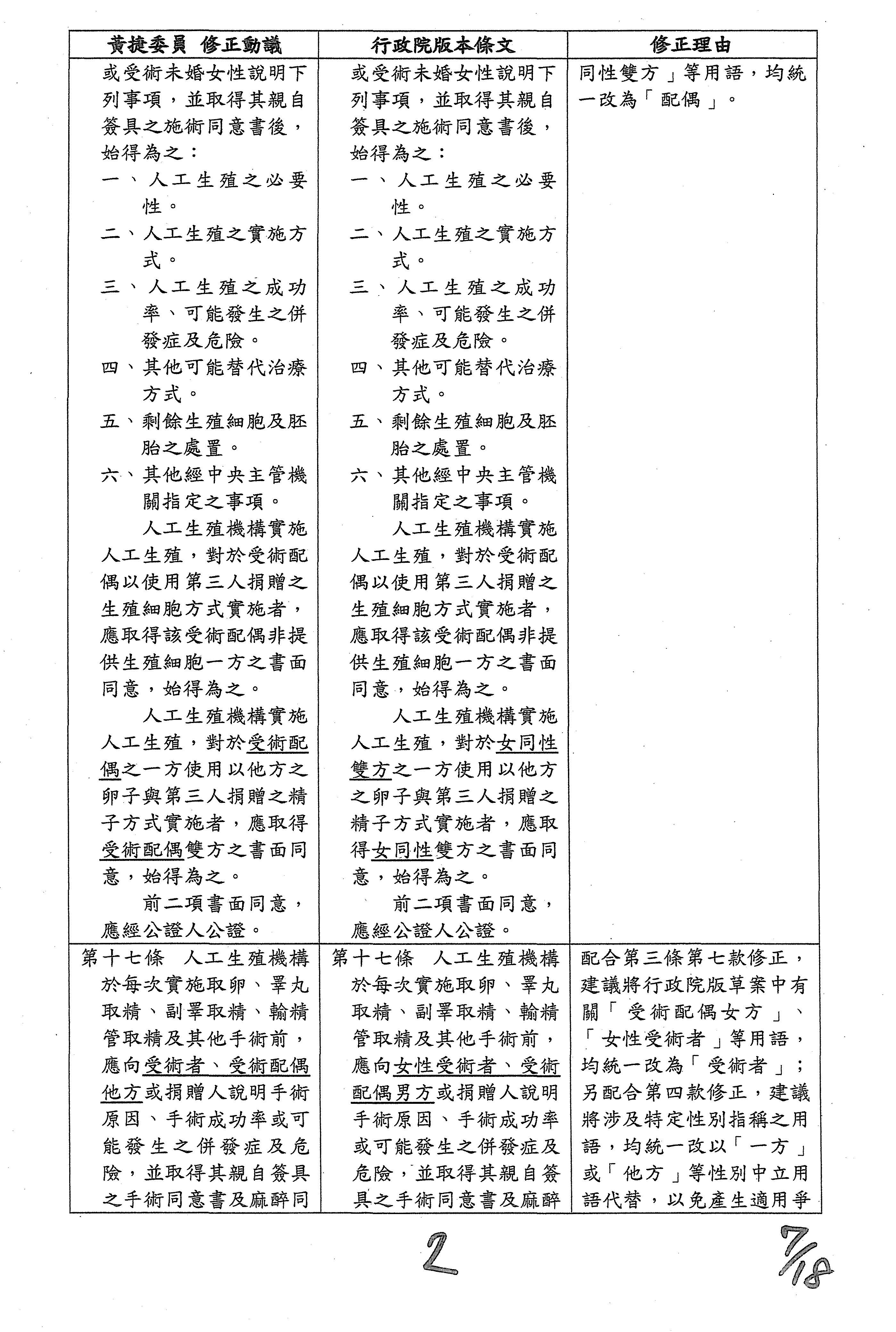 (七)委員王育敏等18人擬具「人工生殖法部分條文修正草案」案。