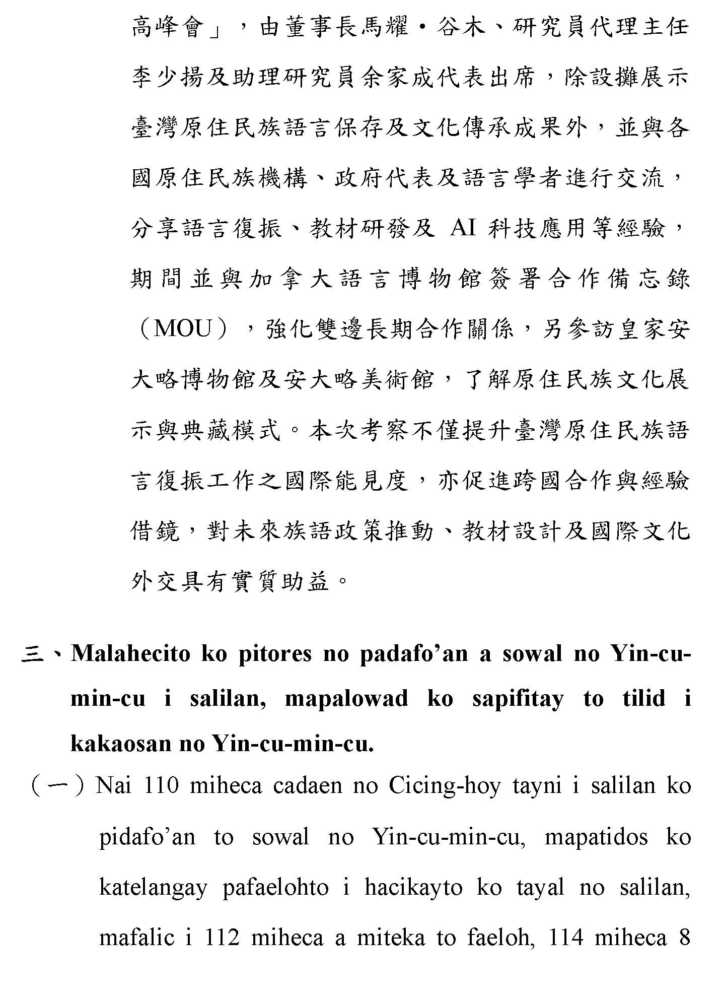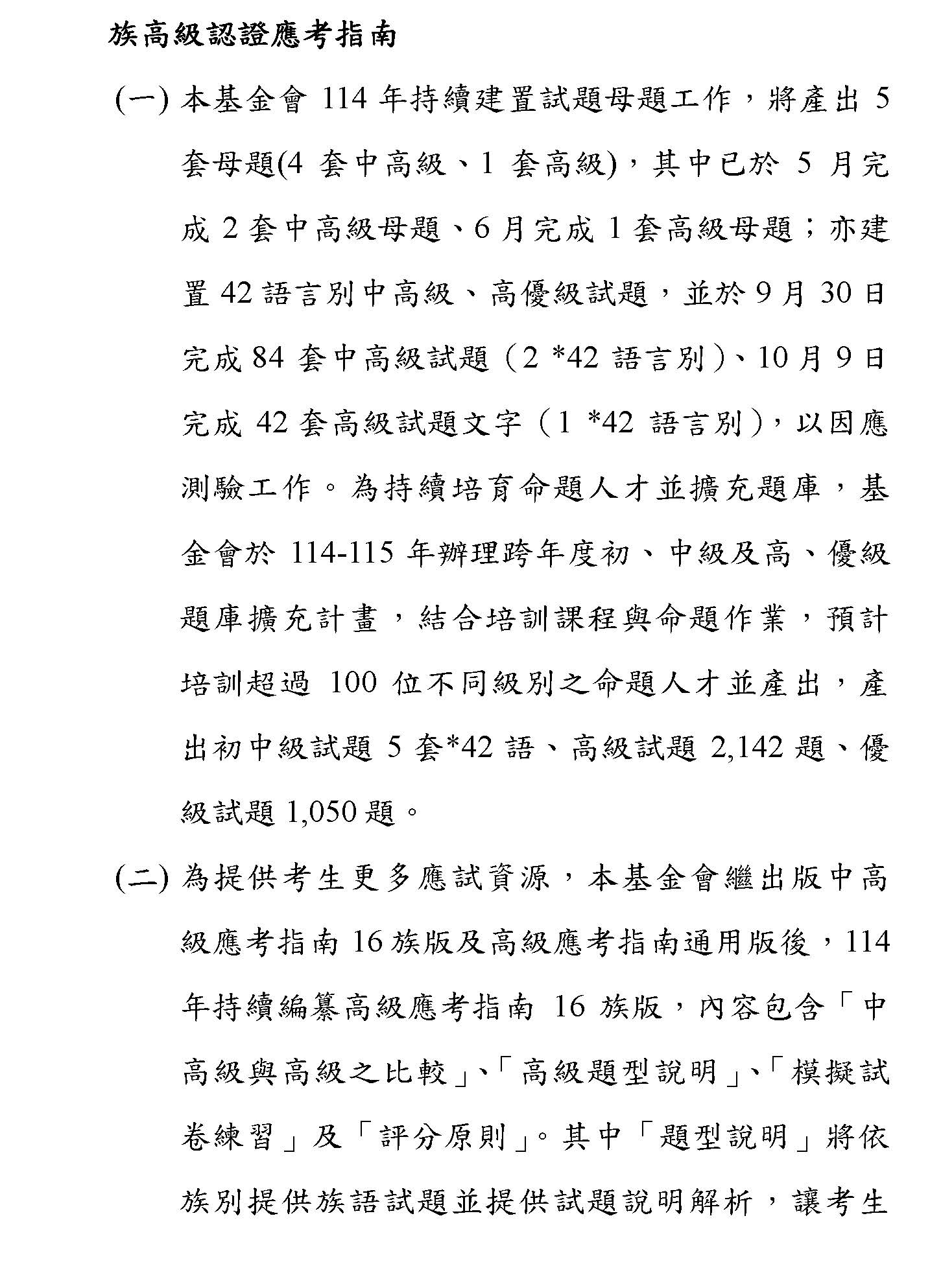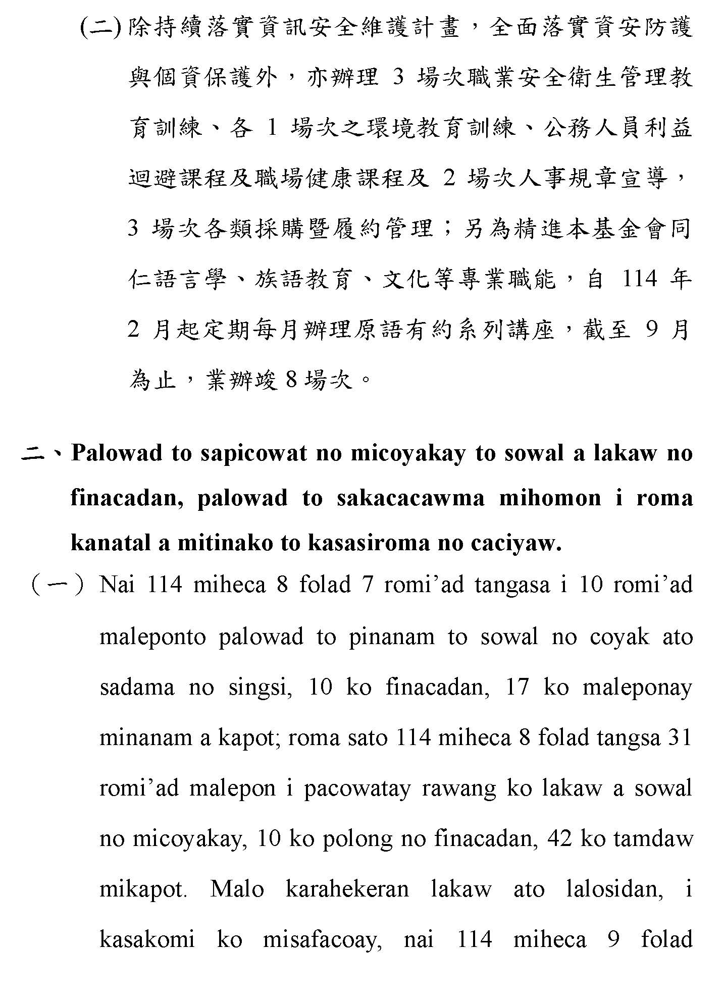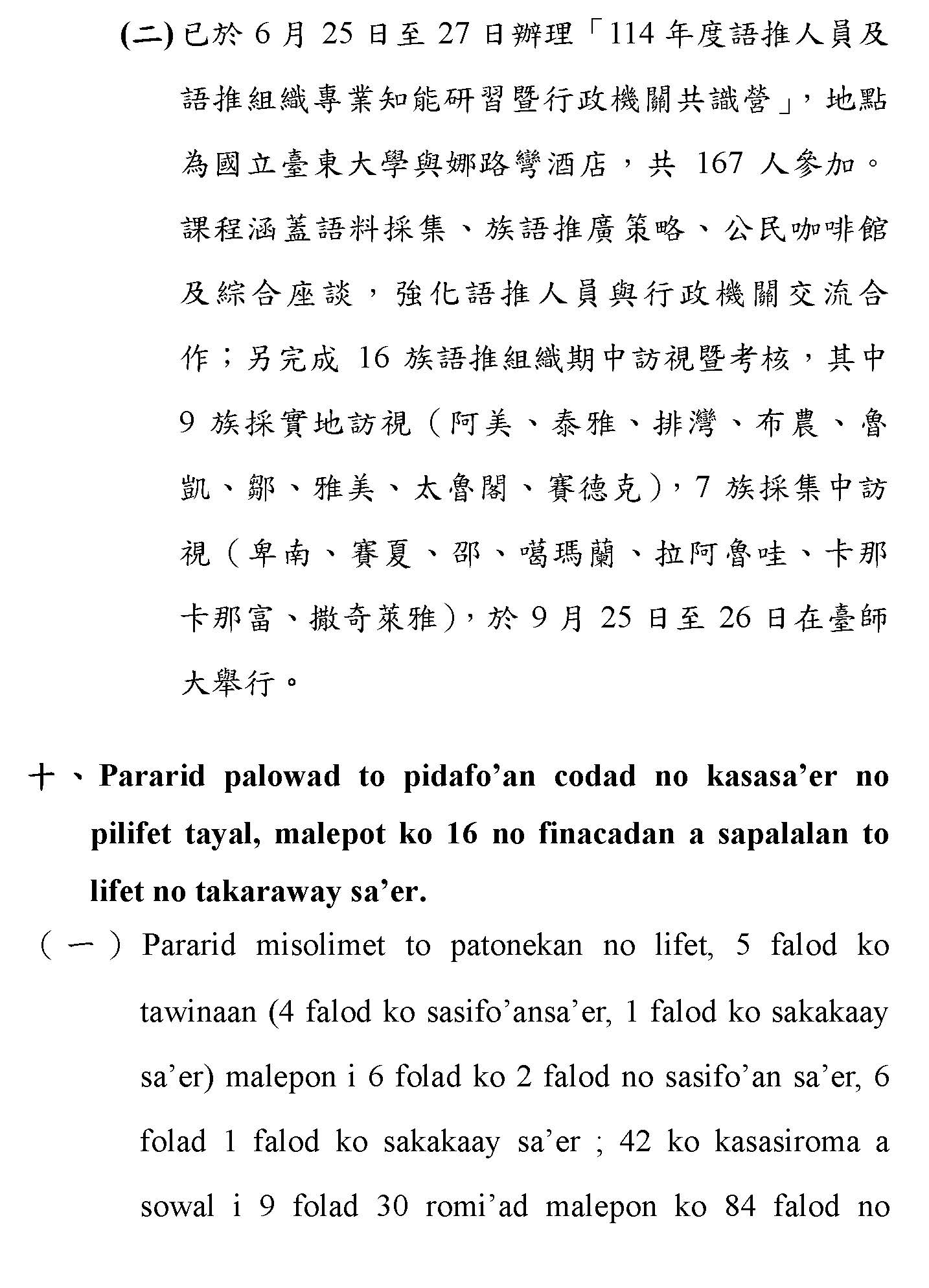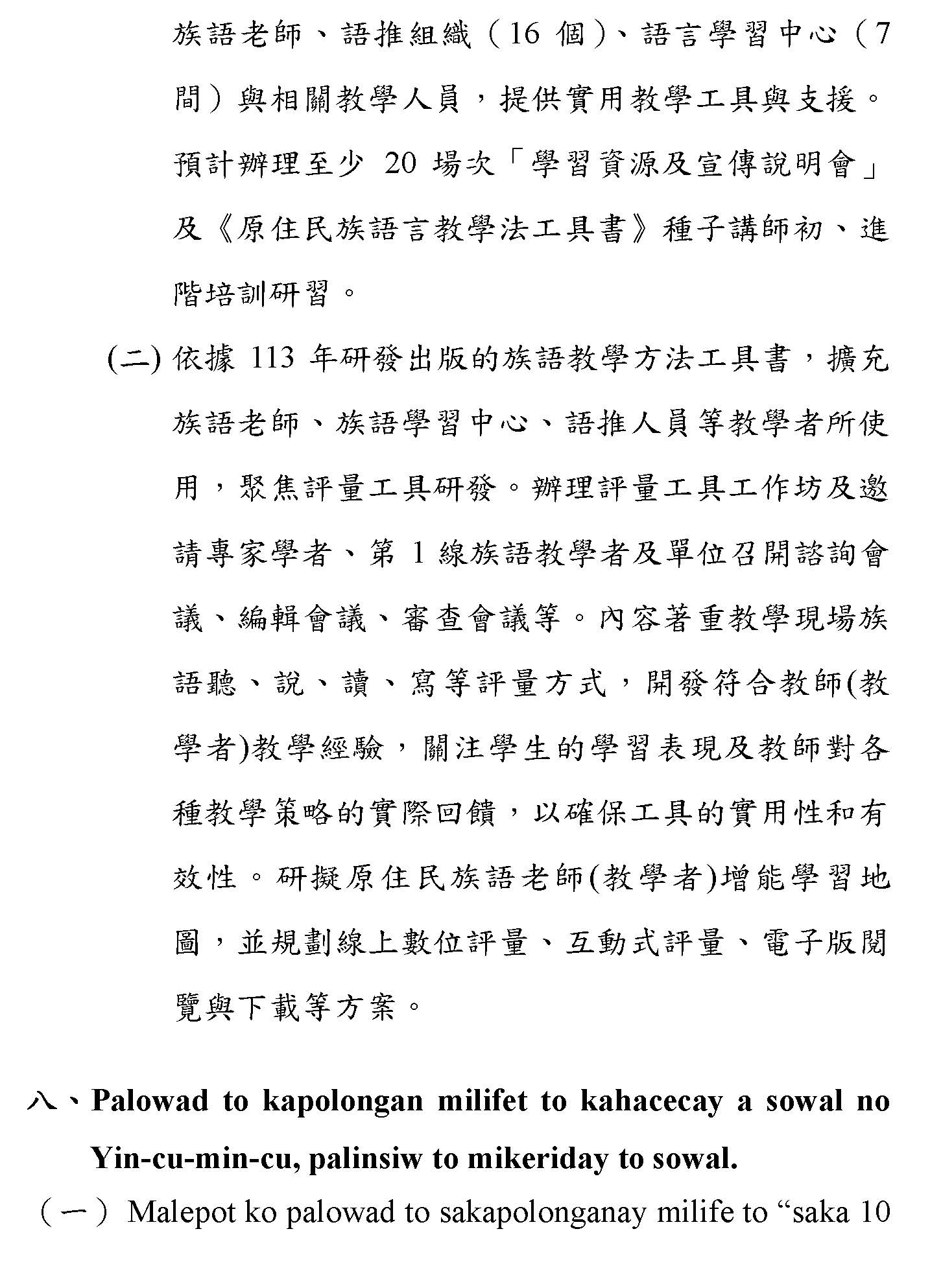 (一)根據財團法人原住民族語言研究發展基金會(下稱原語會)之業務報告,該會已於114年9月完成16族語音辨識系統開發(平均正確率達85%以上)及16族語音合成系統,且阿美語及太魯閣語之評測分數均達4分以上。另原語會115年度預算亦編列520萬元用於「研發族語人工智慧AI應用」。顯示族語AI核心技術已具備基礎,現階段關鍵在於如何將「實驗室技術」轉化為「部落生活應用」。