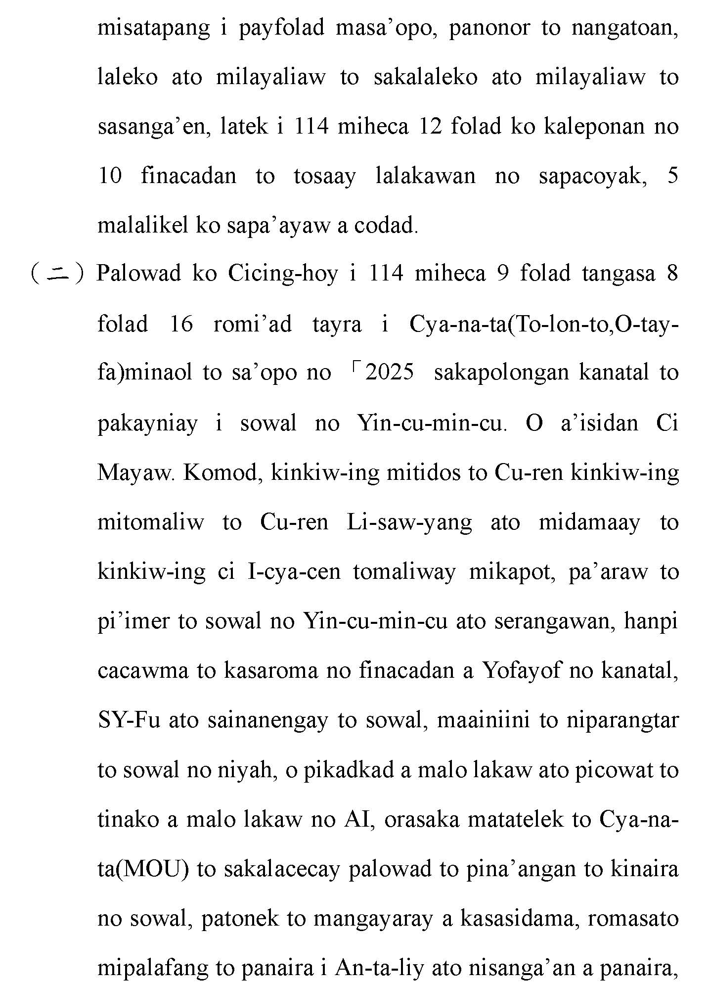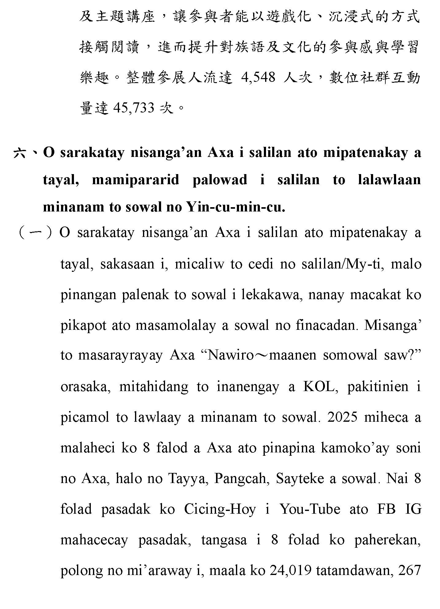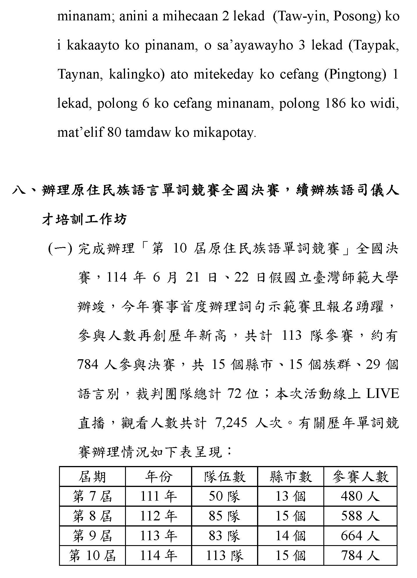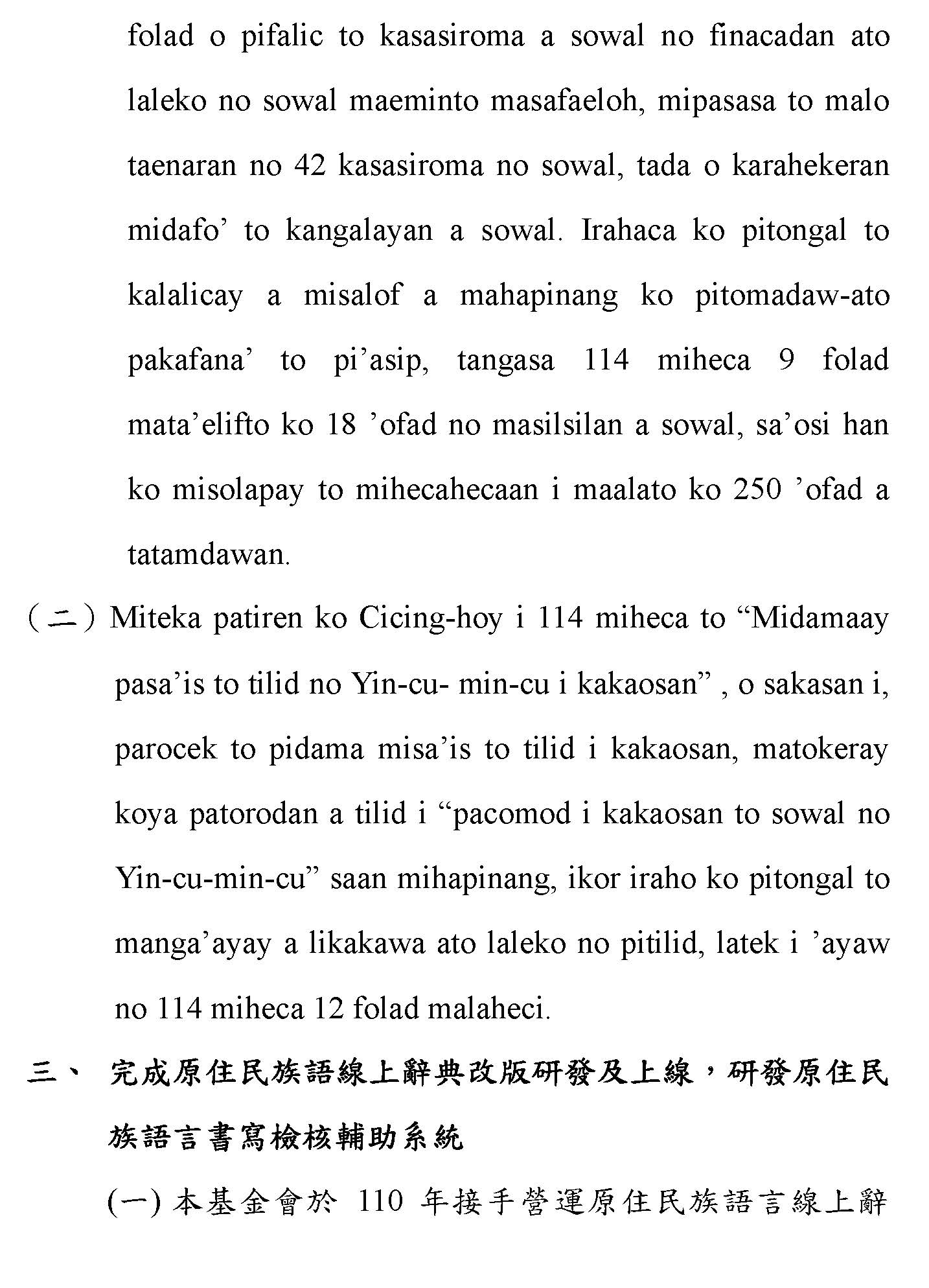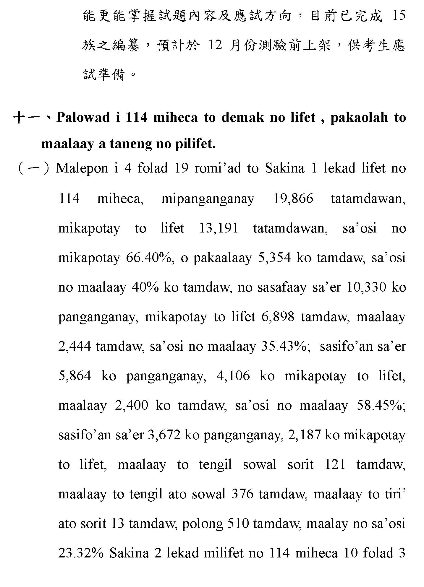 (一)根據財團法人原住民族語言研究發展基金會(下稱原語會)之業務報告,該會已於114年9月完成16族語音辨識系統開發(平均正確率達85%以上)及16族語音合成系統,且阿美語及太魯閣語之評測分數均達4分以上。另原語會115年度預算亦編列520萬元用於「研發族語人工智慧AI應用」。顯示族語AI核心技術已具備基礎,現階段關鍵在於如何將「實驗室技術」轉化為「部落生活應用」。