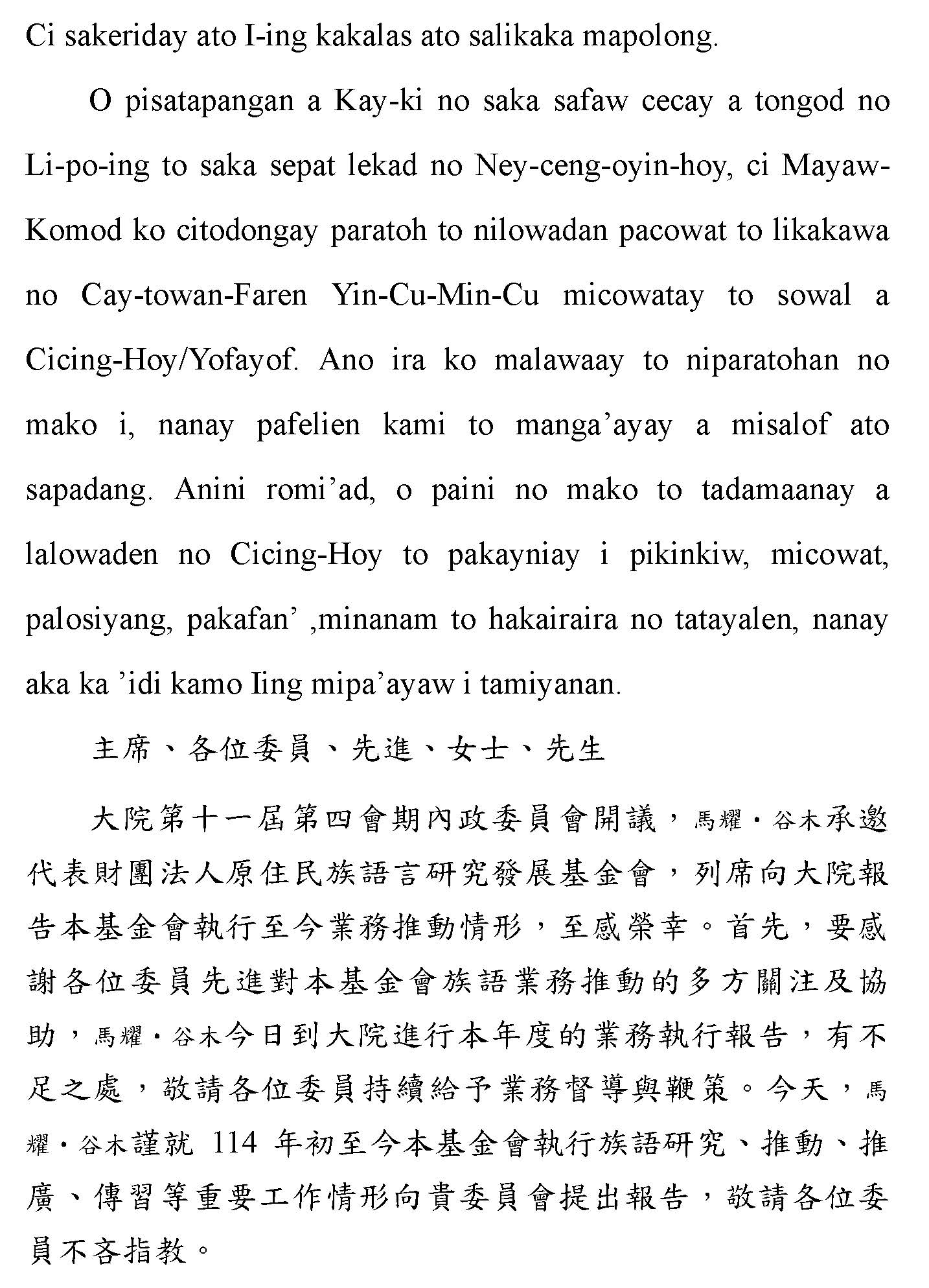 原住民族委員會主任委員率同所屬及財團法人原住民族文化事業基金會董事長與財團法人原住民族語言研究發展基金會董事長列席報告業務概況 |