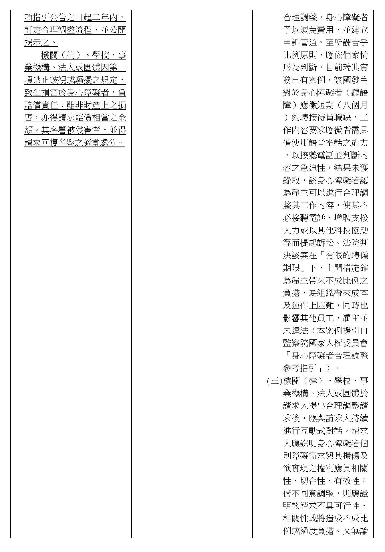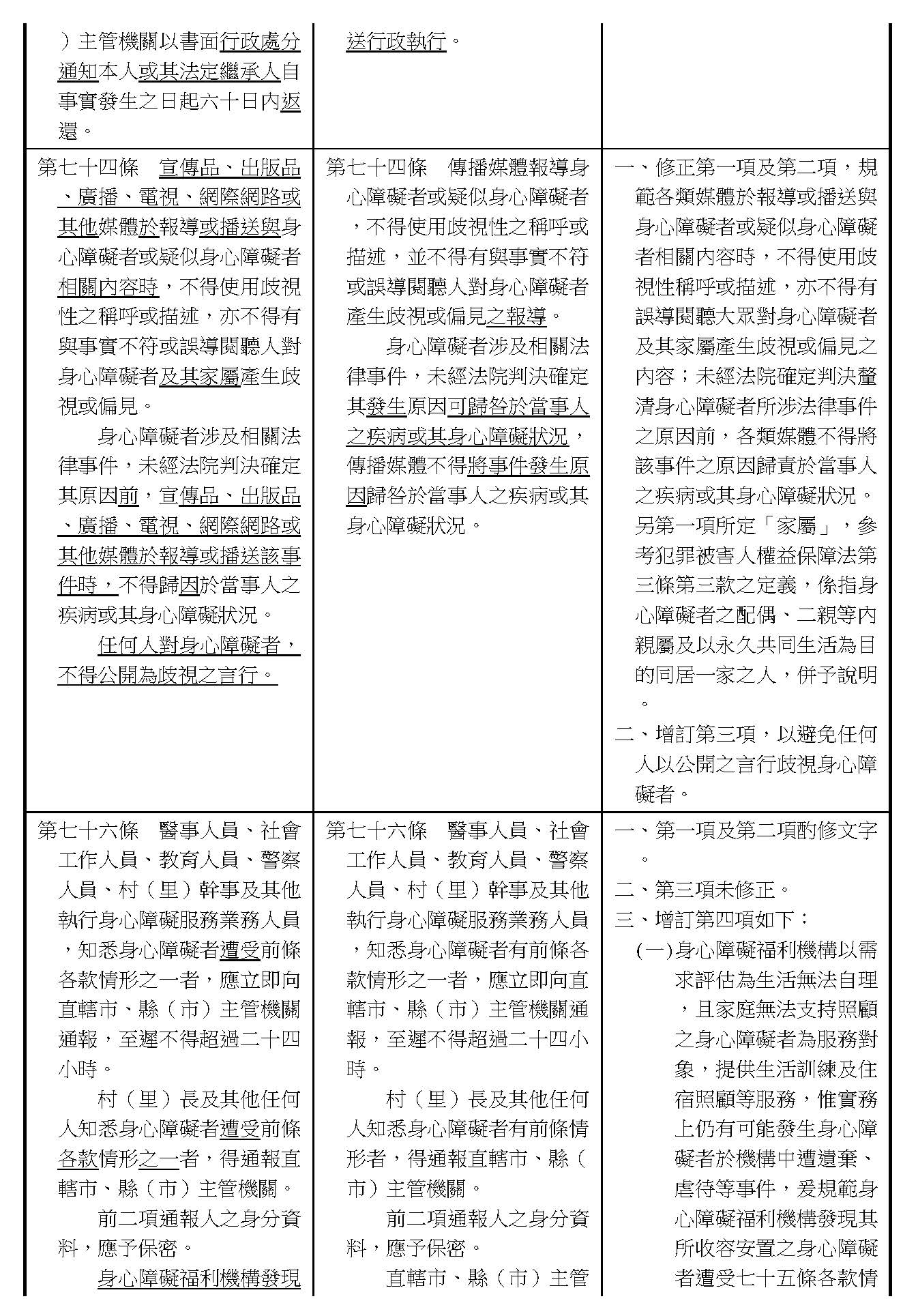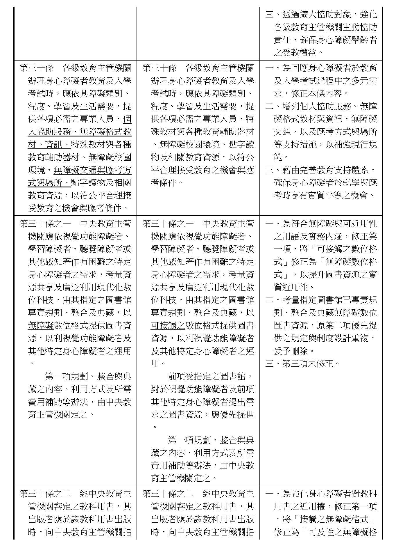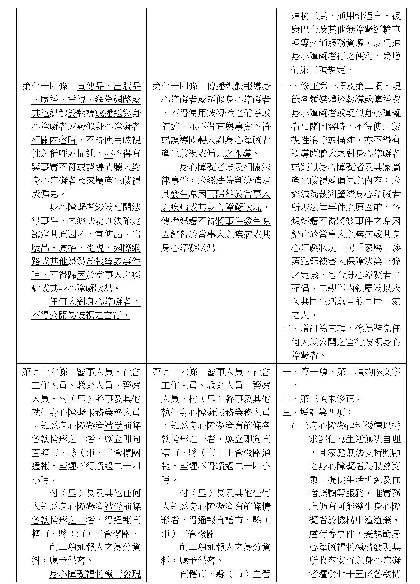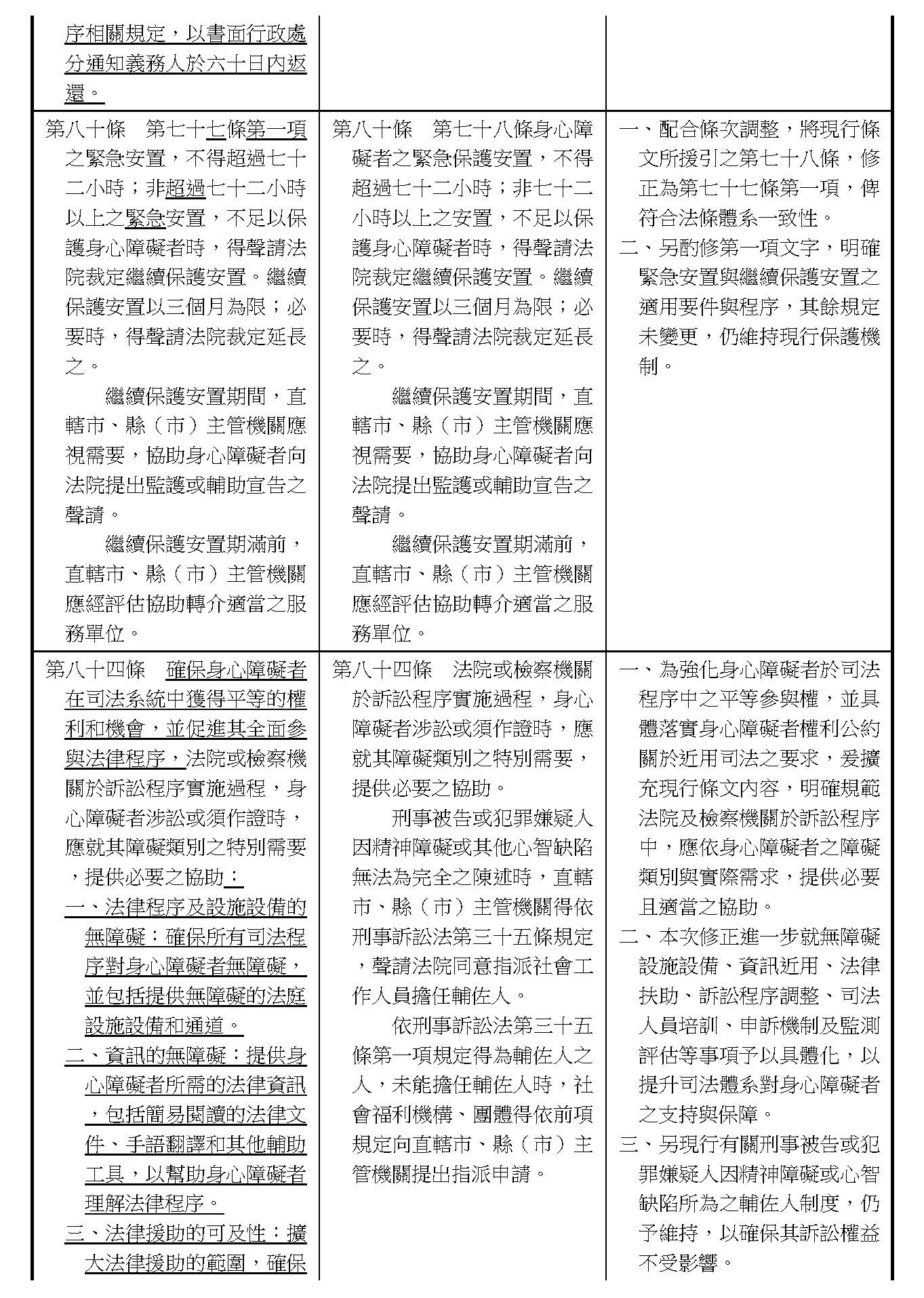 周署長道君:這個部分,行政院版是沒有提案。各委員的版本,主要都是針對資訊通訊或無障礙運輸,大概對於服務內容的近用部分,都有一些相關的提議。比較需要注意的地方,在范雲委員、郭昱晴委員的版本都表示希望把口述影像的部分納進來,召委的版本也有一個相關的動議,要把口述影像的部分納進來,我們參採了幾位委員的提案有一個建議的文字,現在也有投影在螢幕上,主要是第五十二條第三項開始,我們有增列一些文字,我宣讀一下:「第一項第三款所稱公共資訊無障礙,係指應對利用網路、電信、廣播、電視、電影等設施者,提供視、聽、語等功能障礙國民無障礙閱讀、觀看、轉接或傳送等輔助、補助措施」,底下增列一項「中央目的事業主管機關補助電影、電視節目及其他視聽著作之製作,應鼓勵製作口述影像」,因為有增加一項的關係,所以原來是前一項就變成「前二項輔助及補助措施之內容,實施方式及管理規範等事項,由各中央目的事業主管機關定之」。最後一項的部分同現行條文。以上。