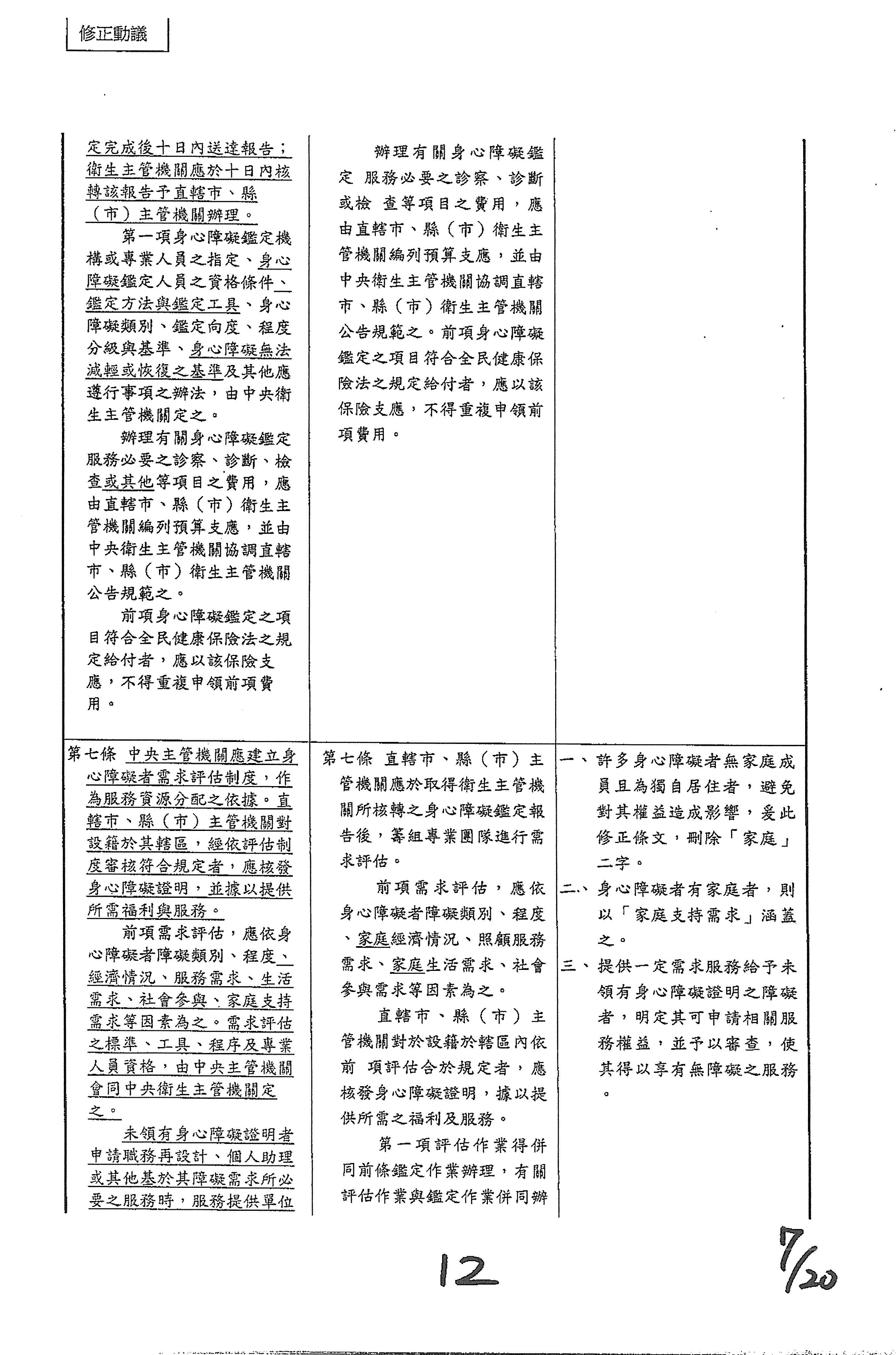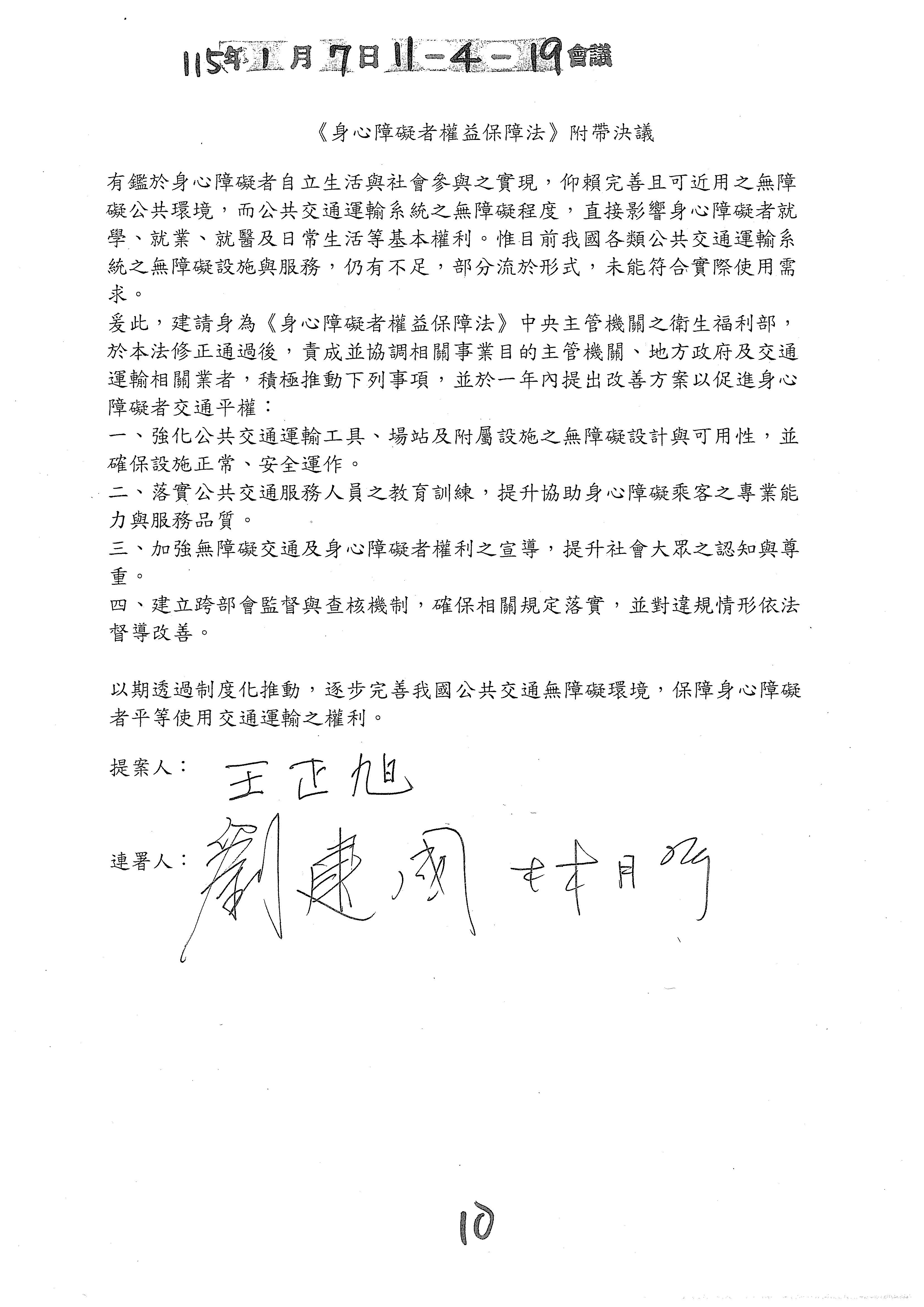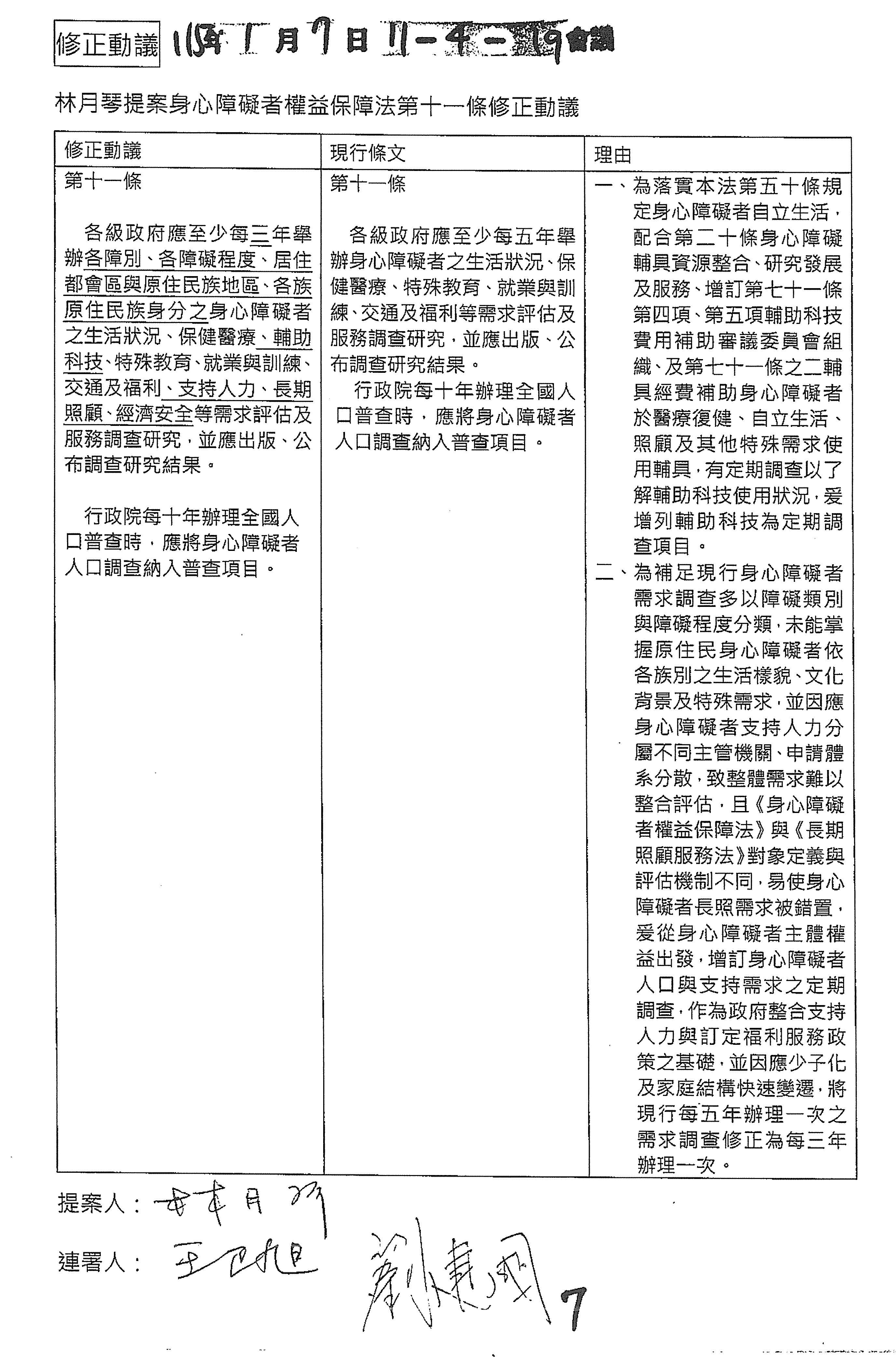 (七)委員徐富癸等18人擬具「身心障礙者權益保障法第十條條文修正草案」案。