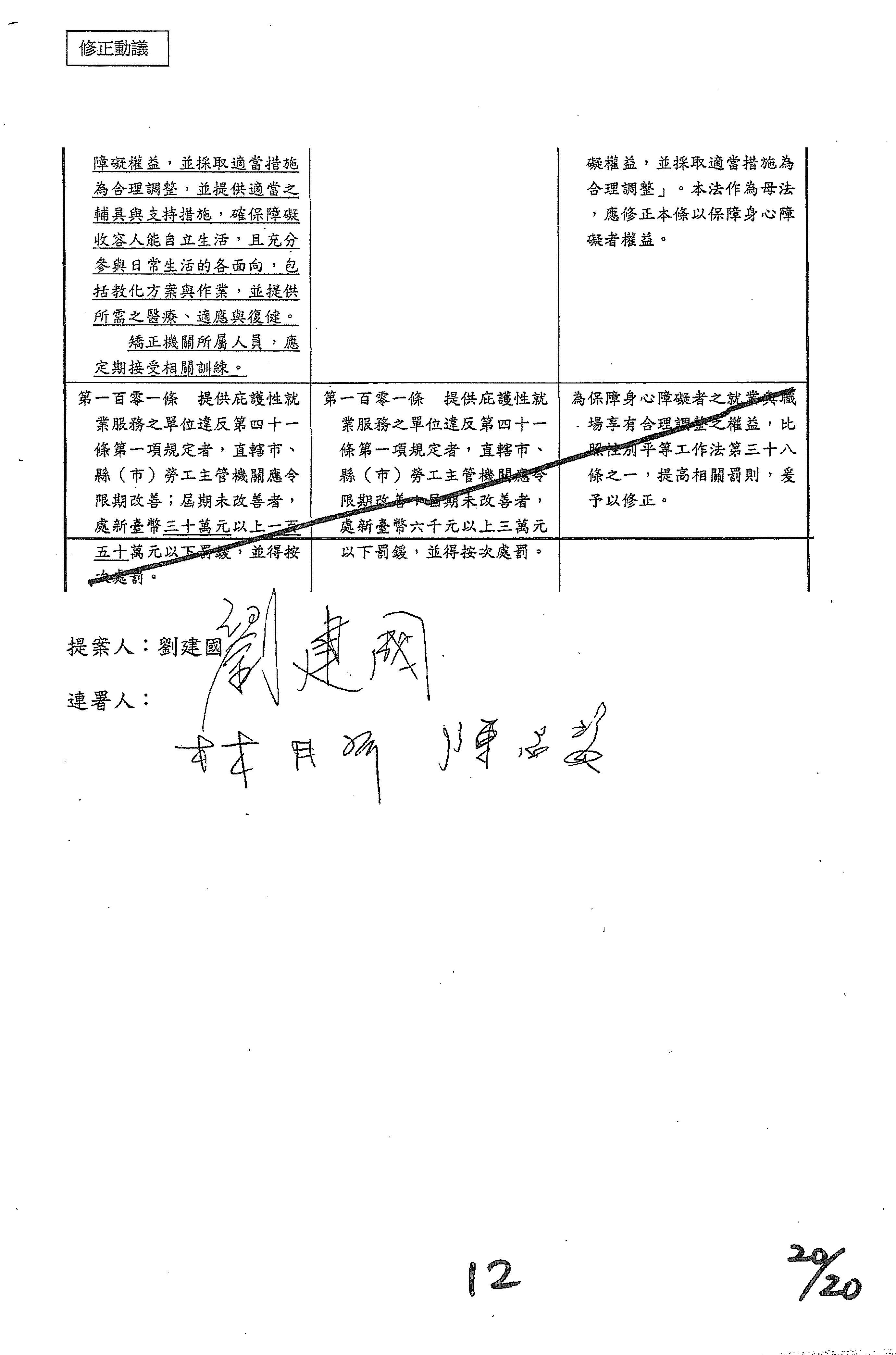 (二十)委員陳俊宇等18人擬具「身心障礙者權益保障法第七十一條條文修正草案」案。