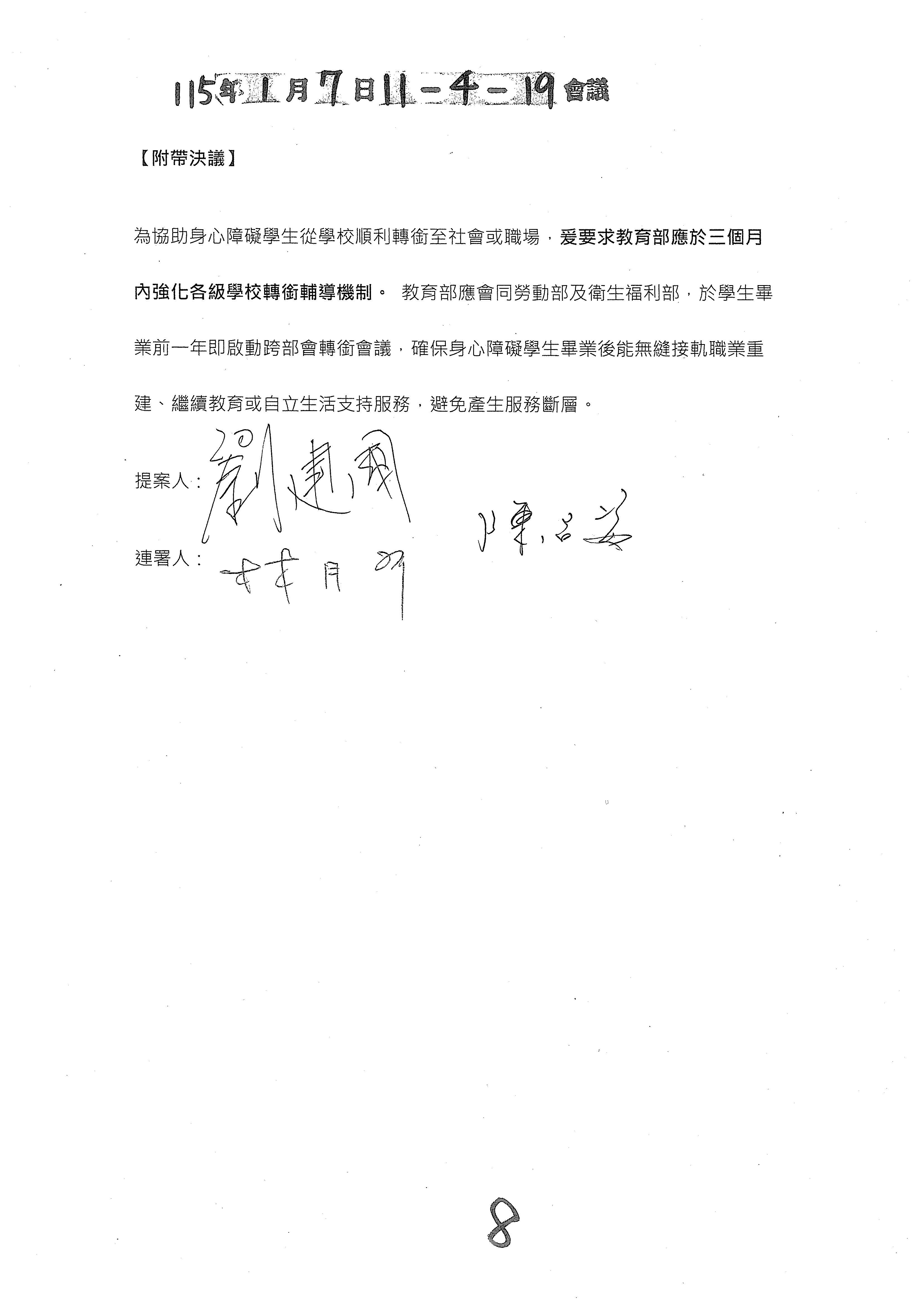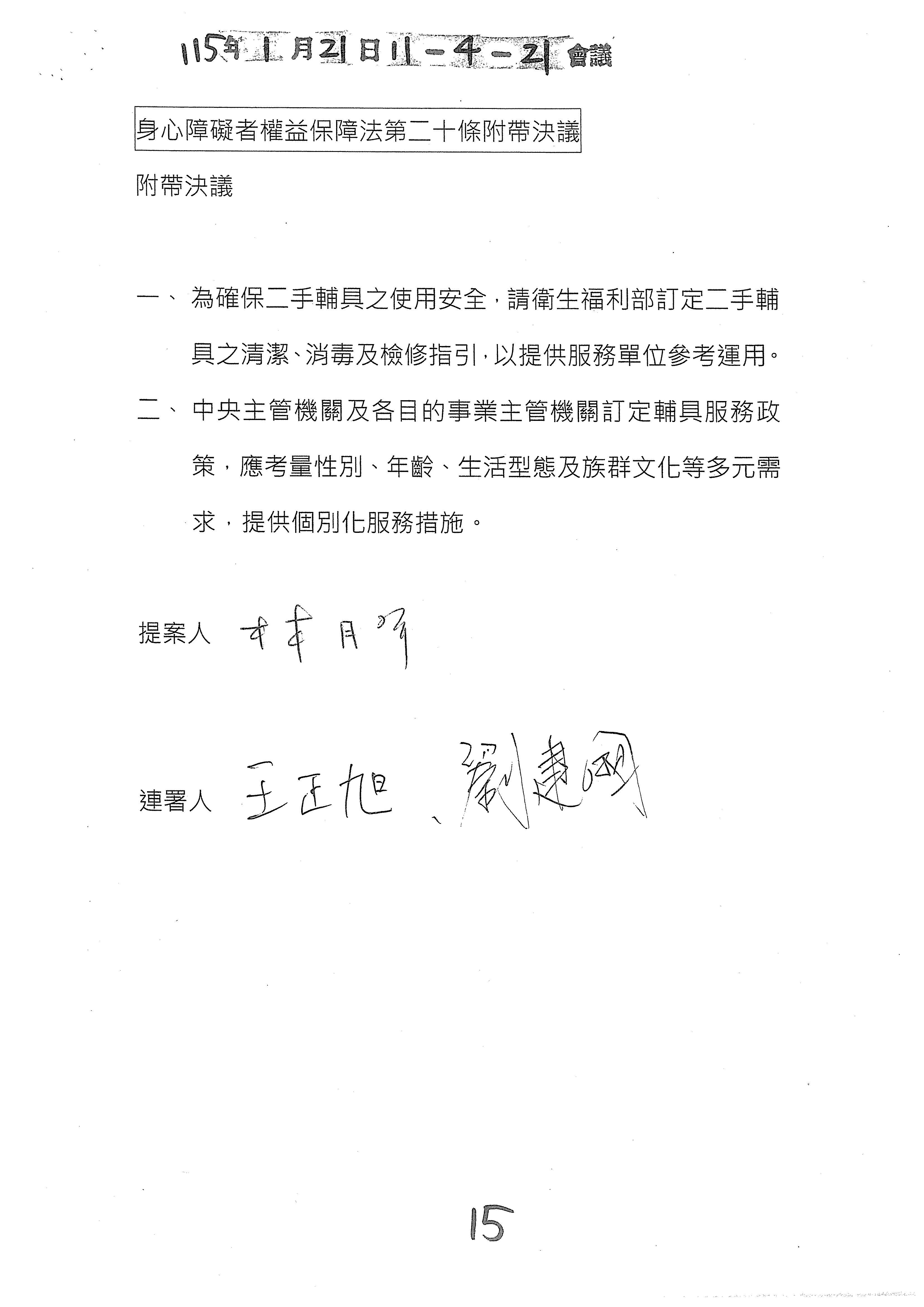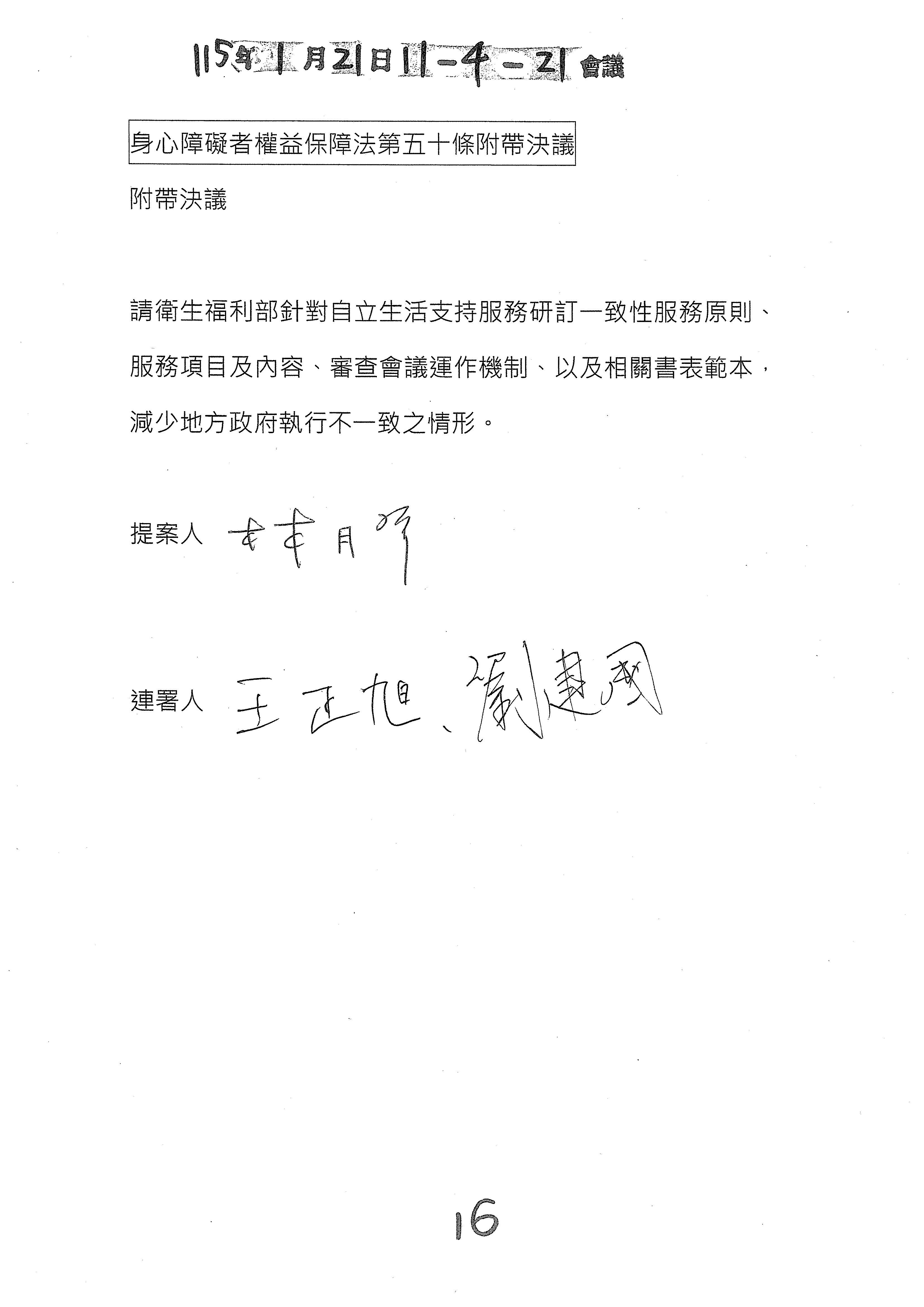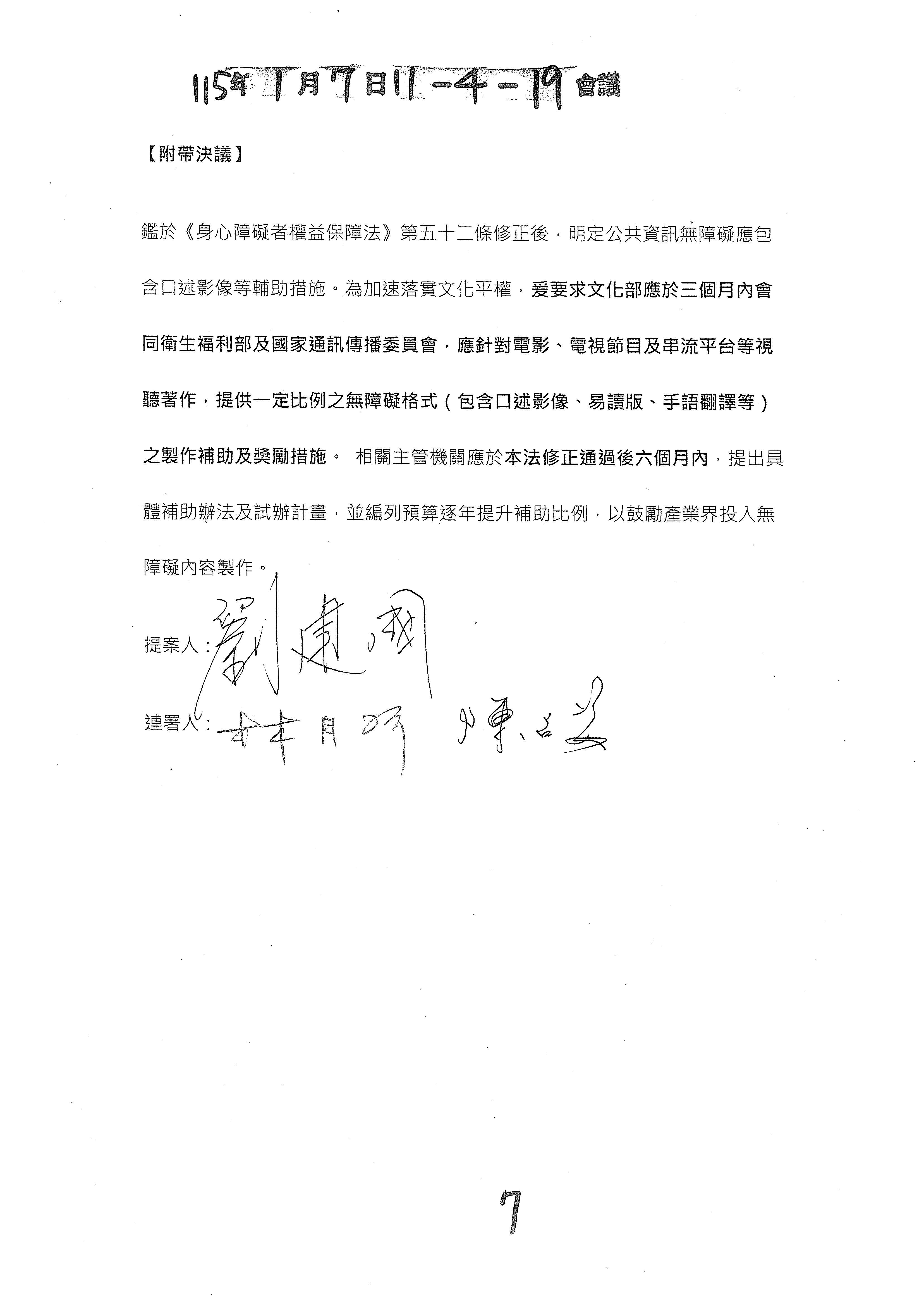 所以除了參考幾位委員的修正動議文字之外,我們也會建議是不是再加上一個附帶決議的文字?對於這類的一次性服務原則以及審查書表、規範等等,我們會提供一個附帶決議的文字版本,如果這樣的處理方向是OK的,我們就趕快把那個附帶決議的文字提供給各位委員來審閱。以上。