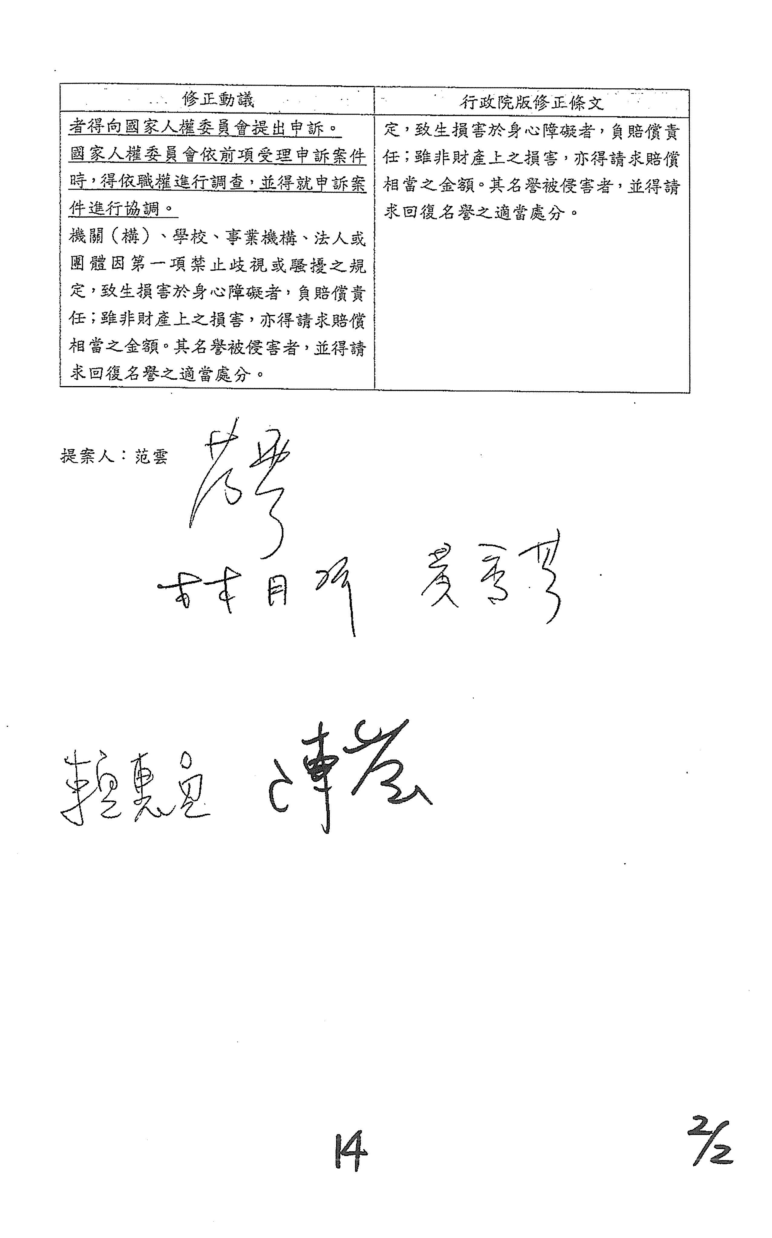 (二)委員范雲等17人擬具「身心障礙者權益保障法部分條文修正草案」案。