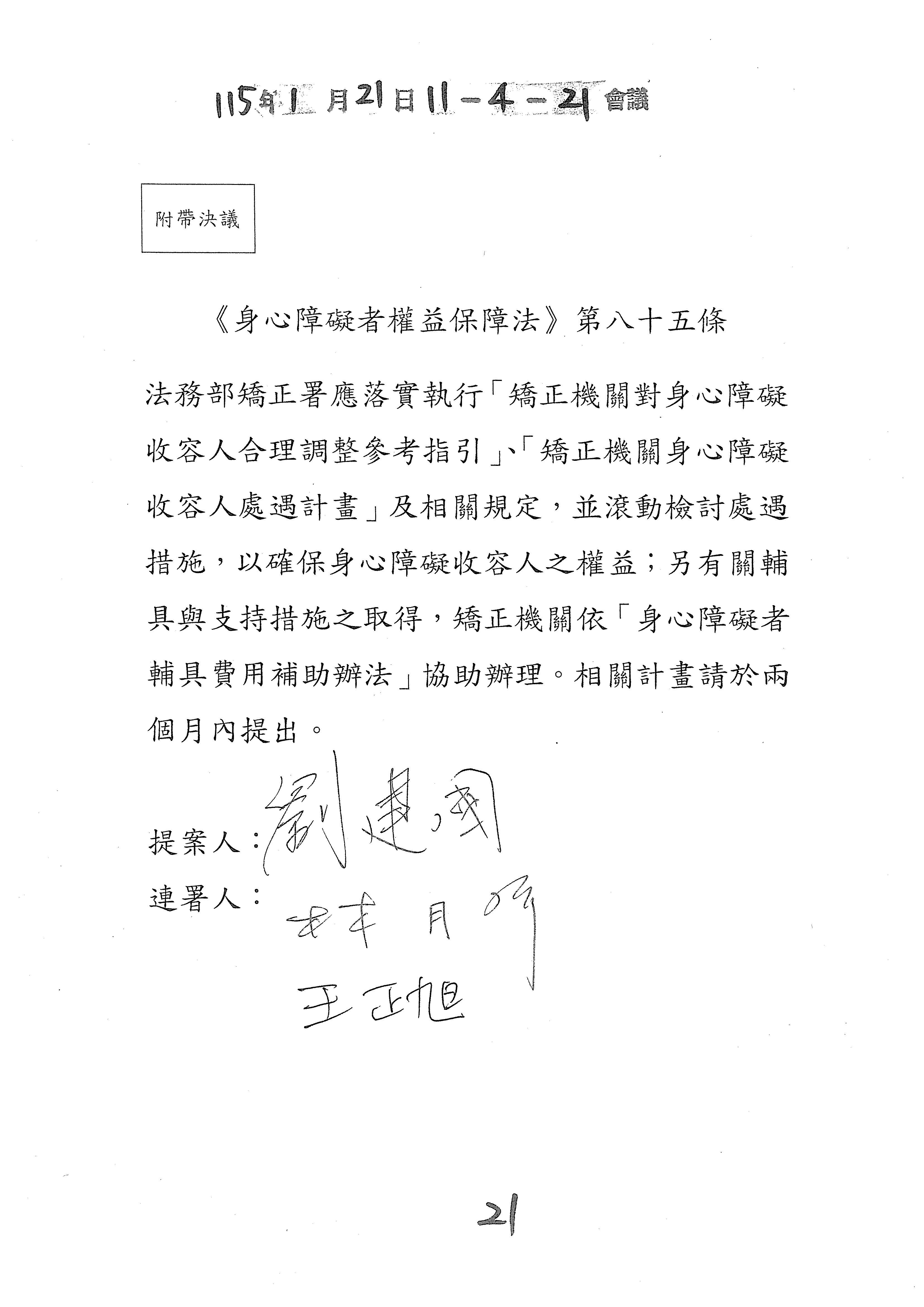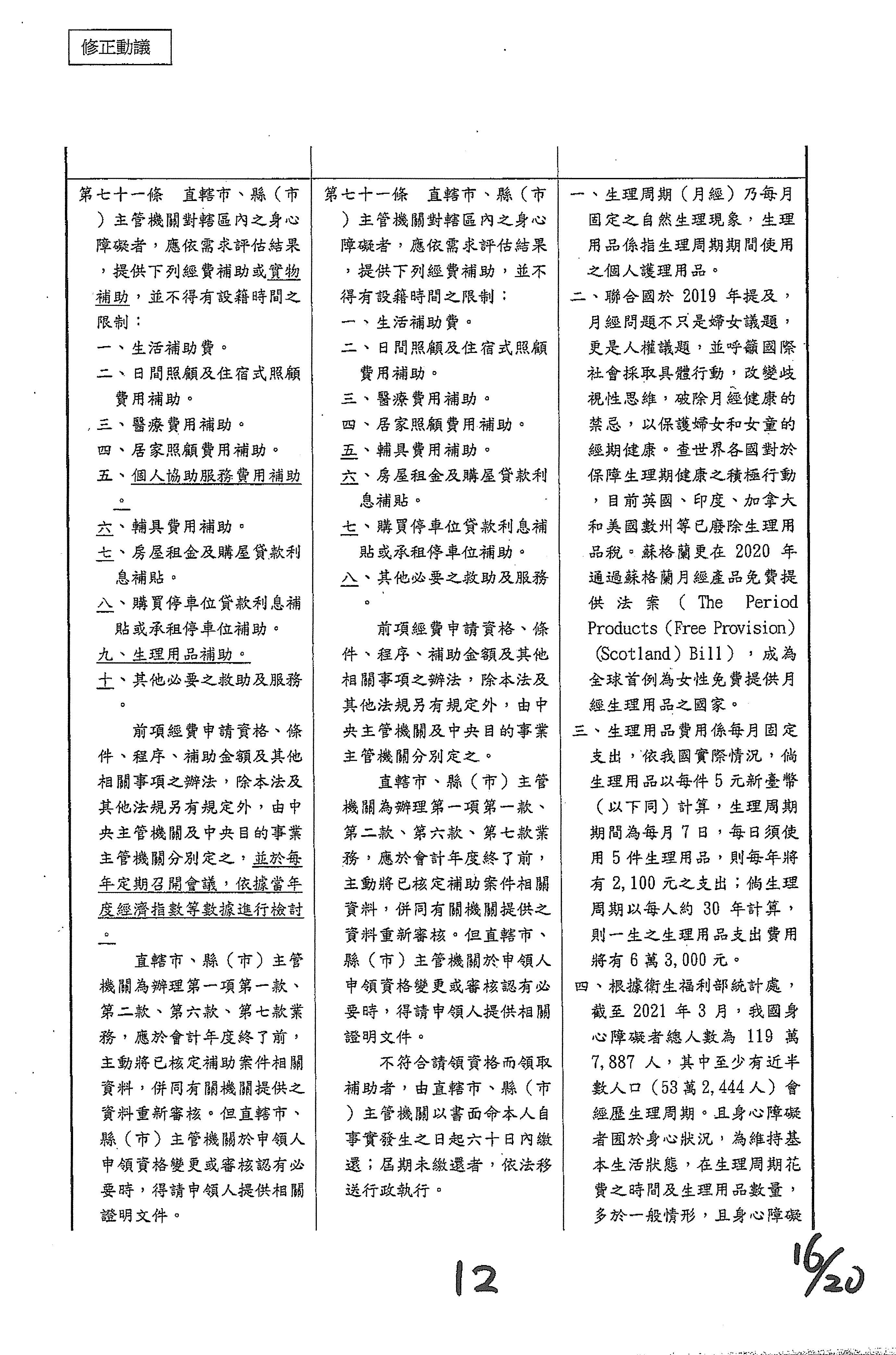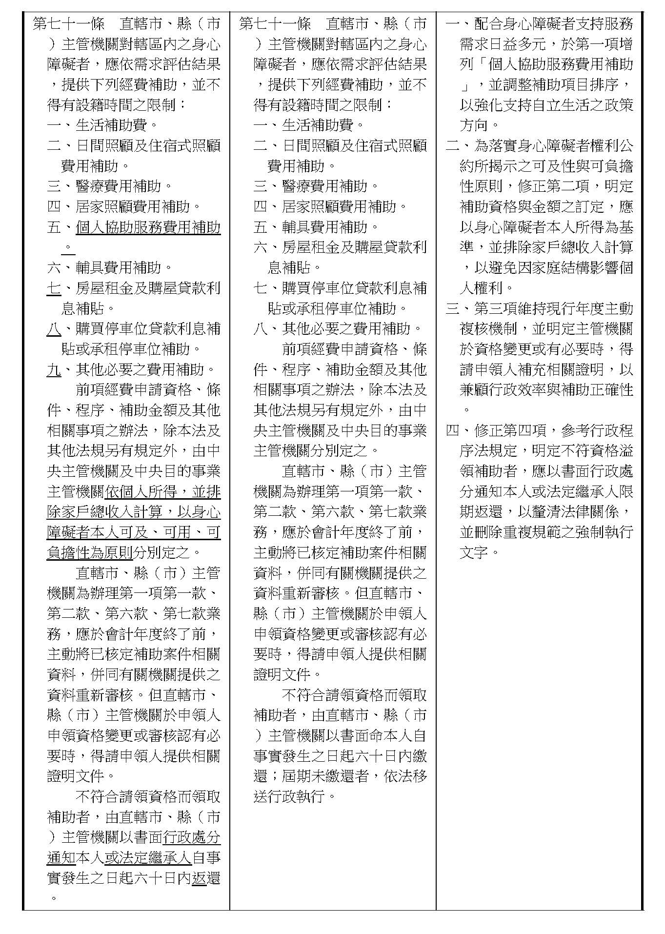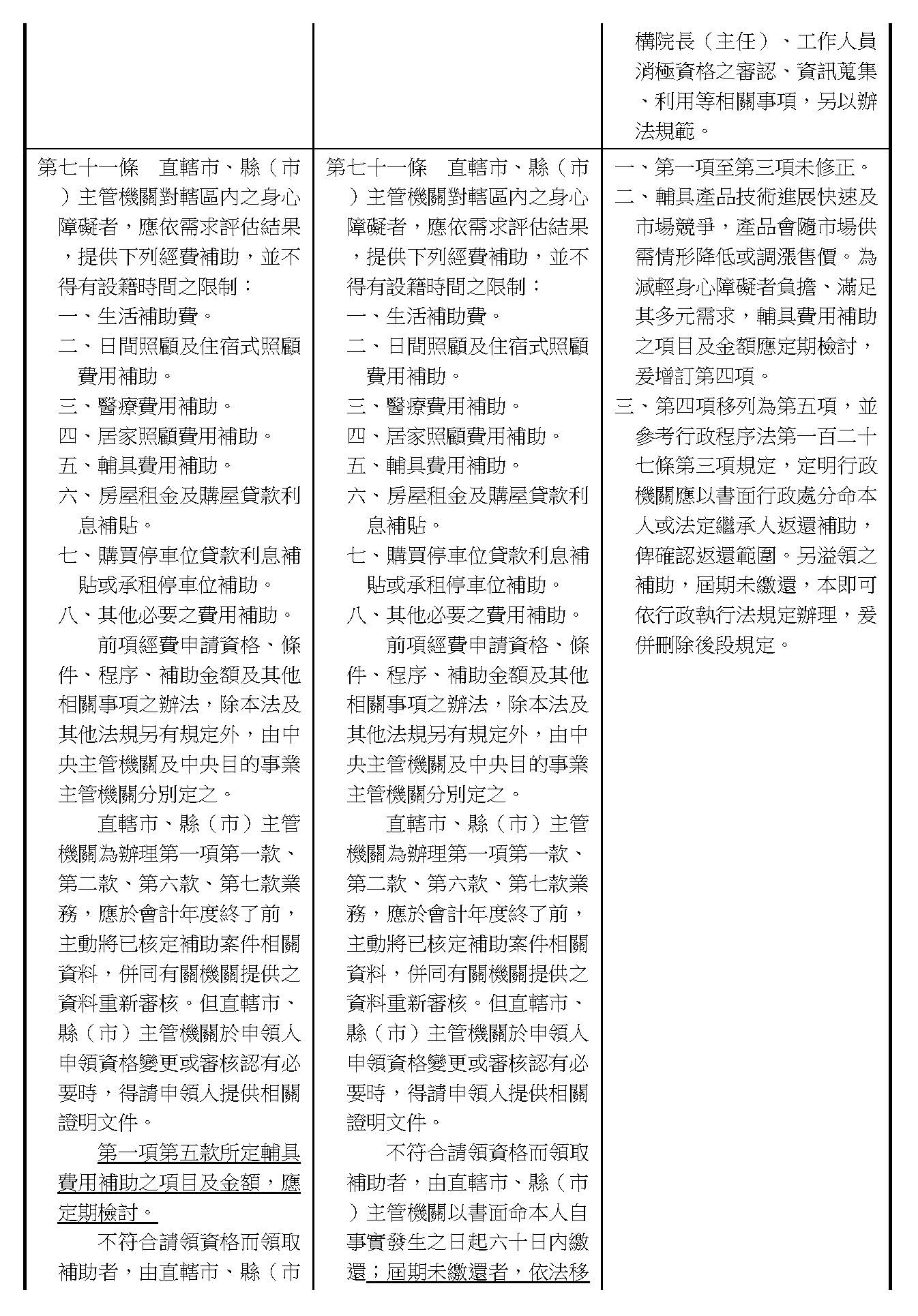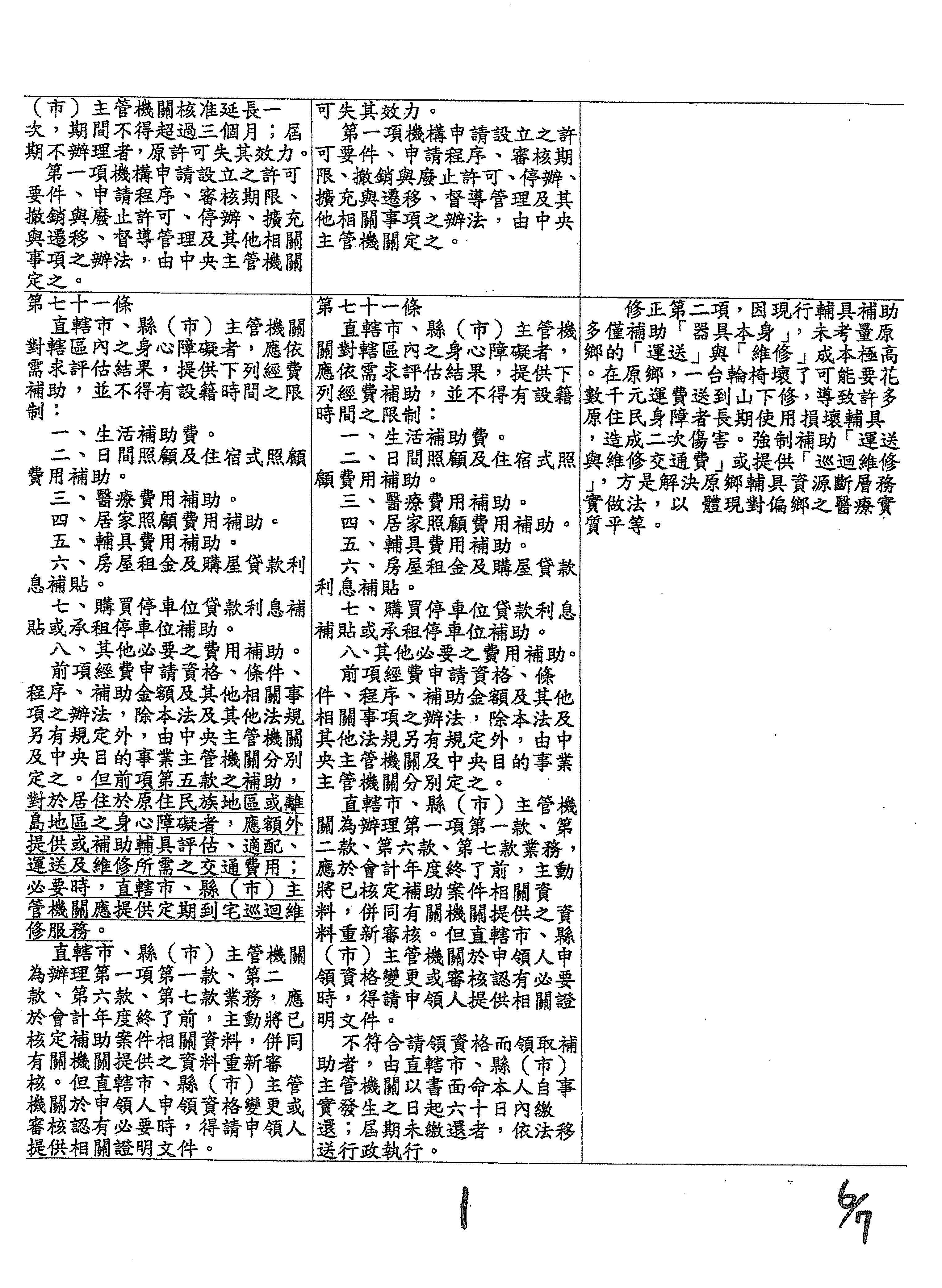(二十一)委員林楚茵等17人擬具「身心障礙者權益保障法第七十一條條文修正草案」案。
