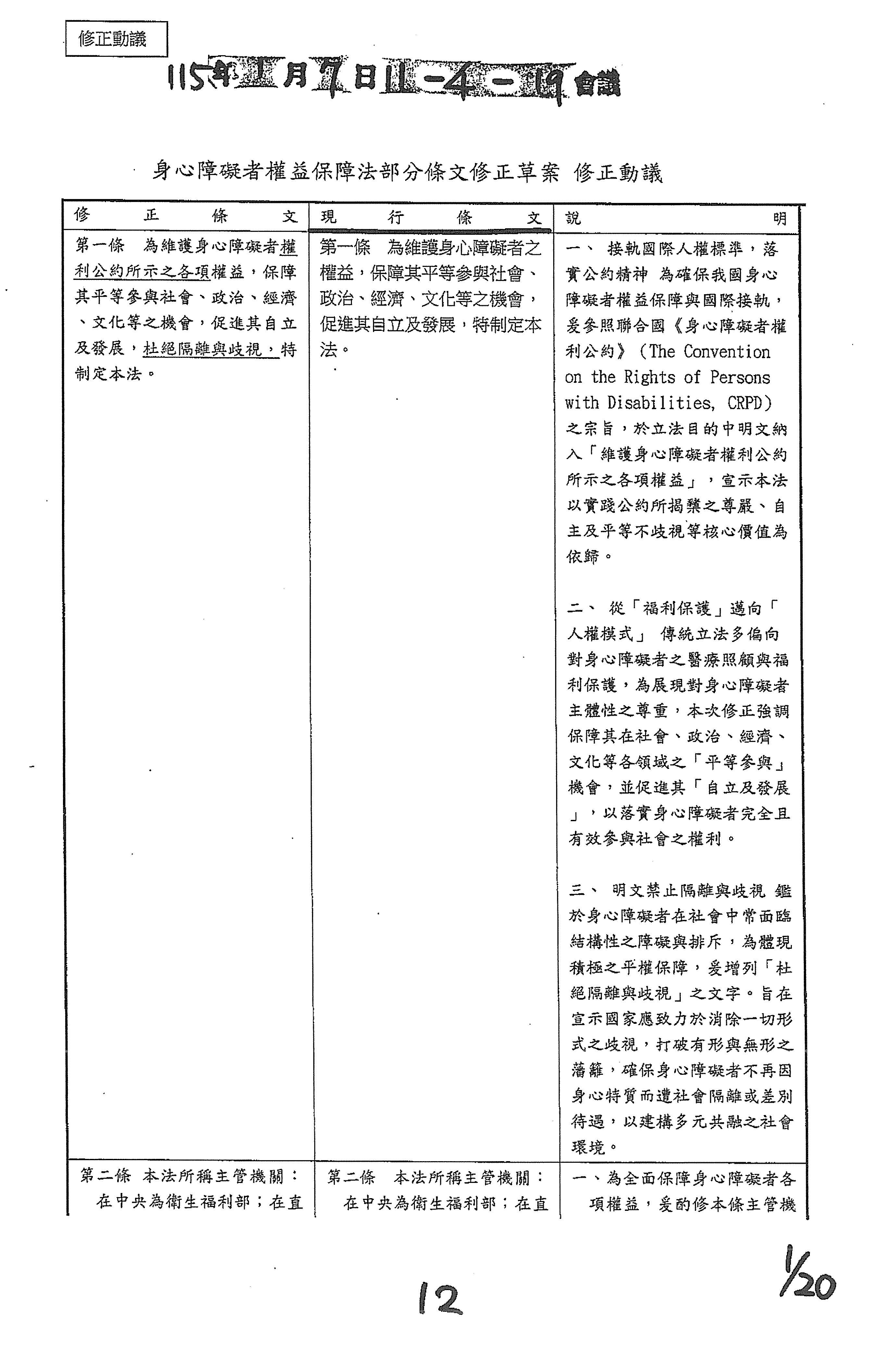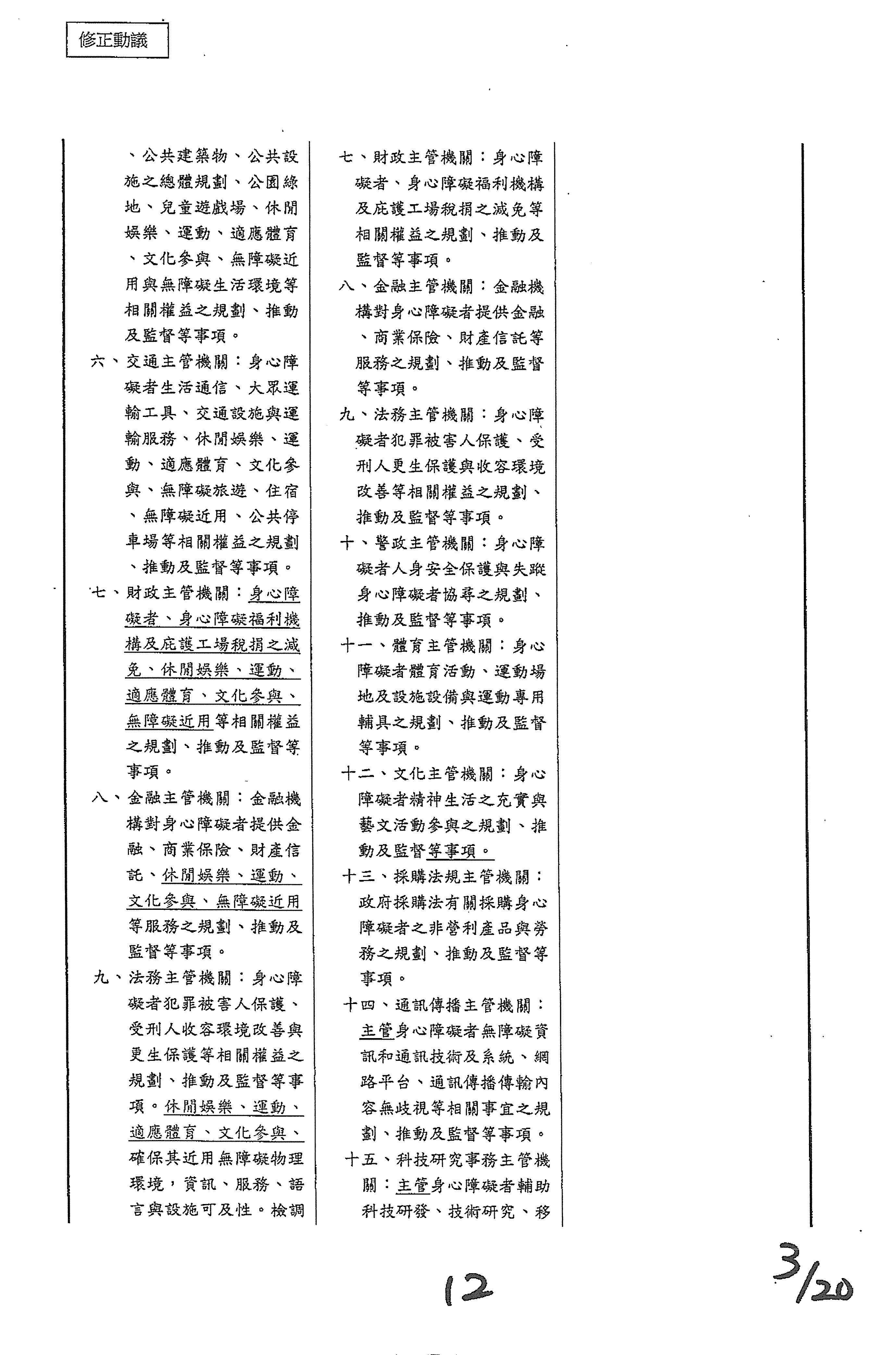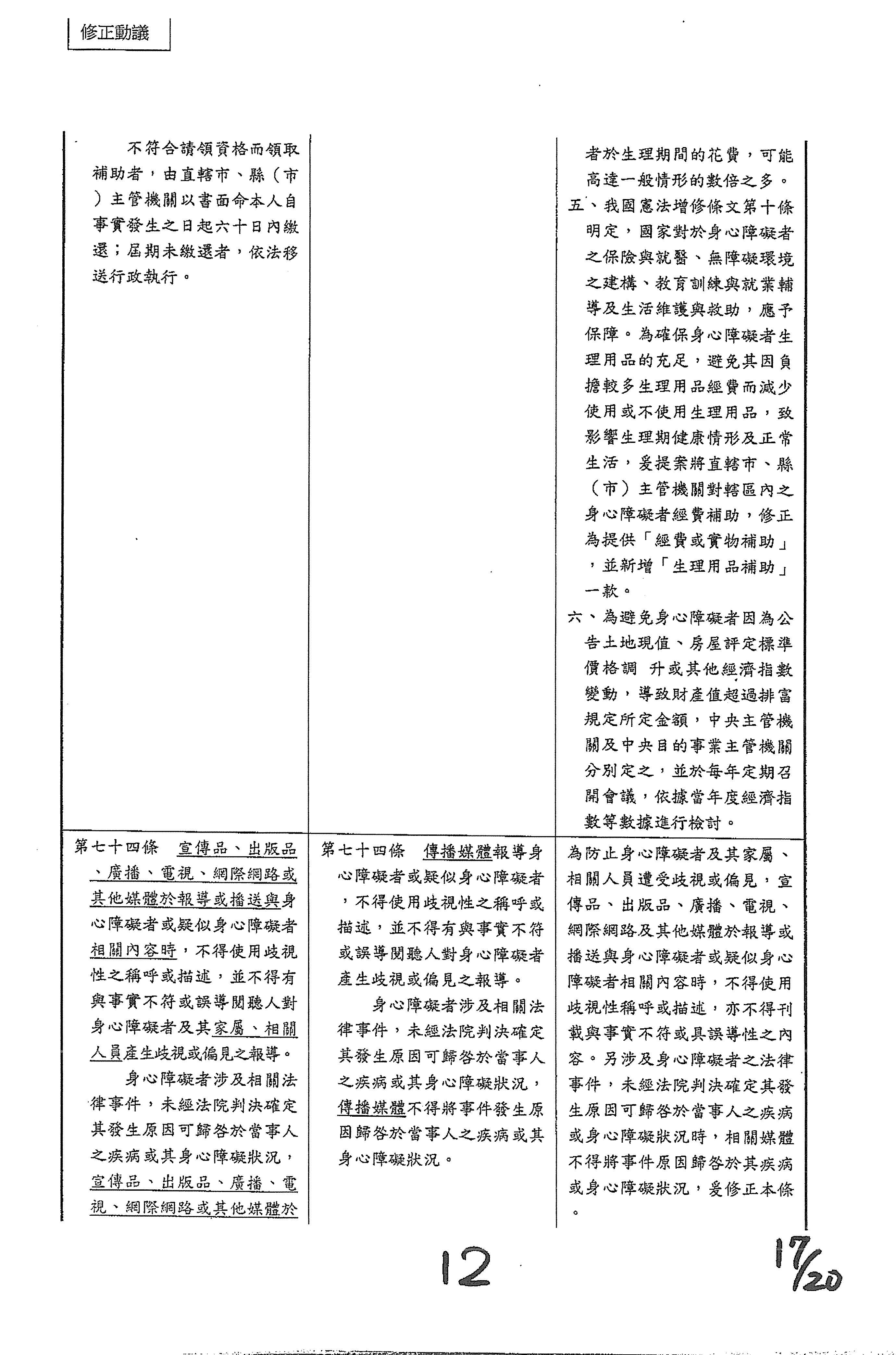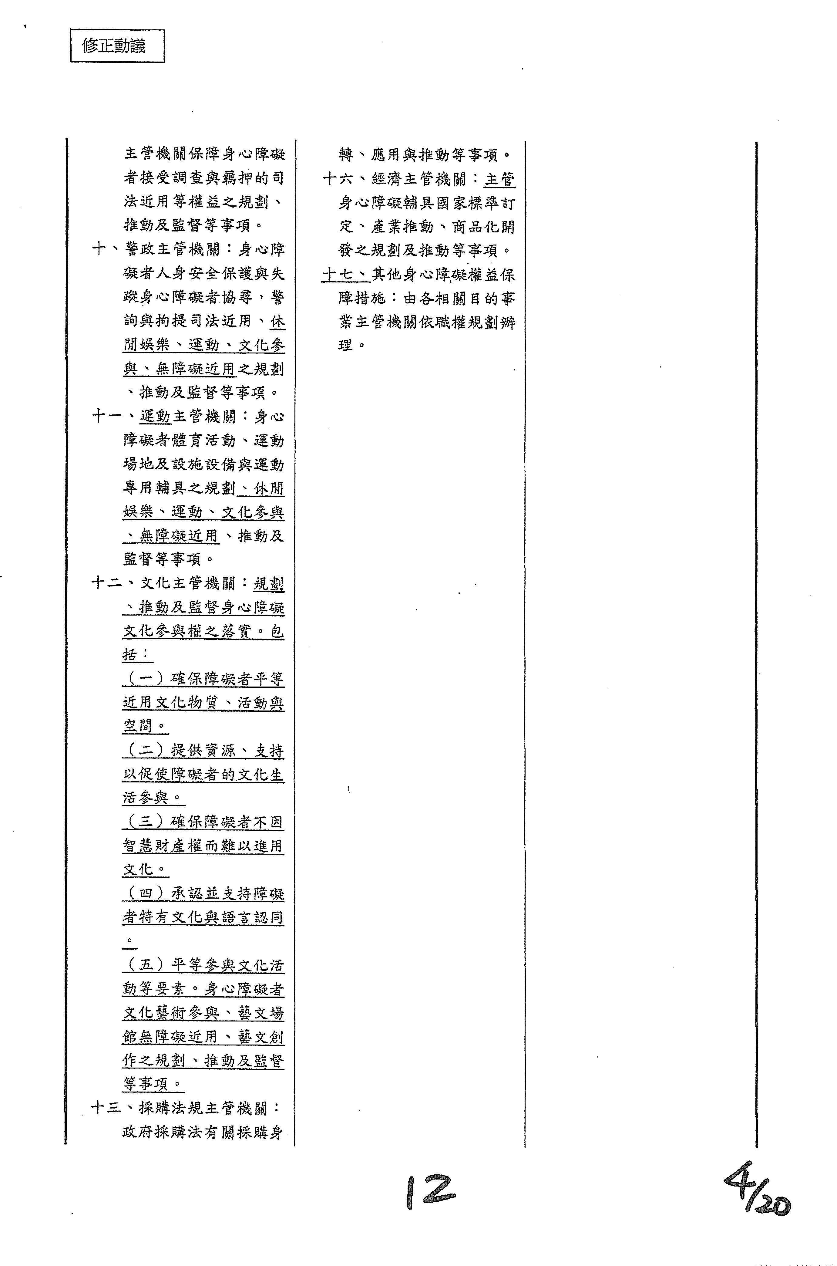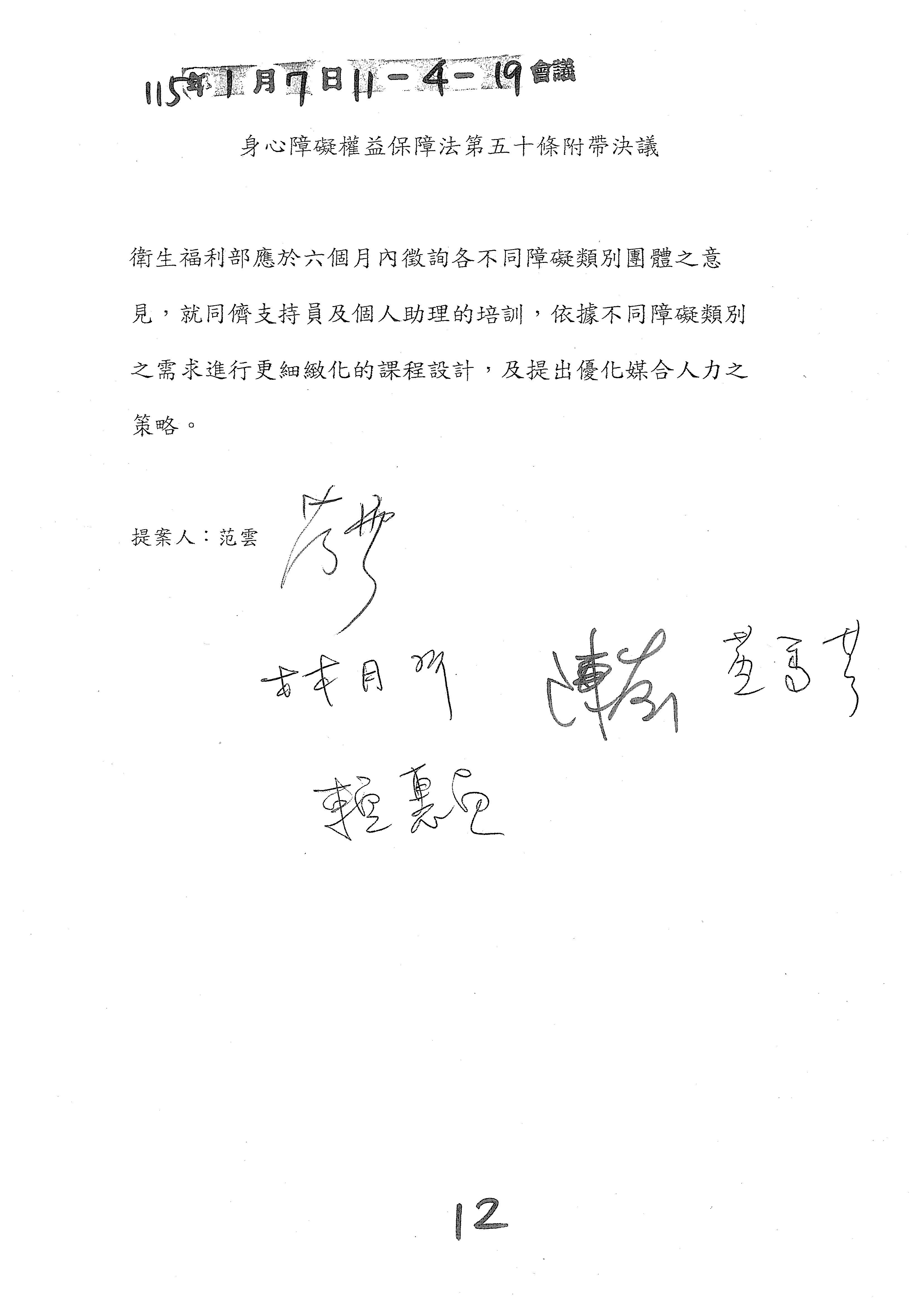 (十二)委員柯志恩等17人擬具「身心障礙者權益保障法第六十條之一條文修正草案」案。