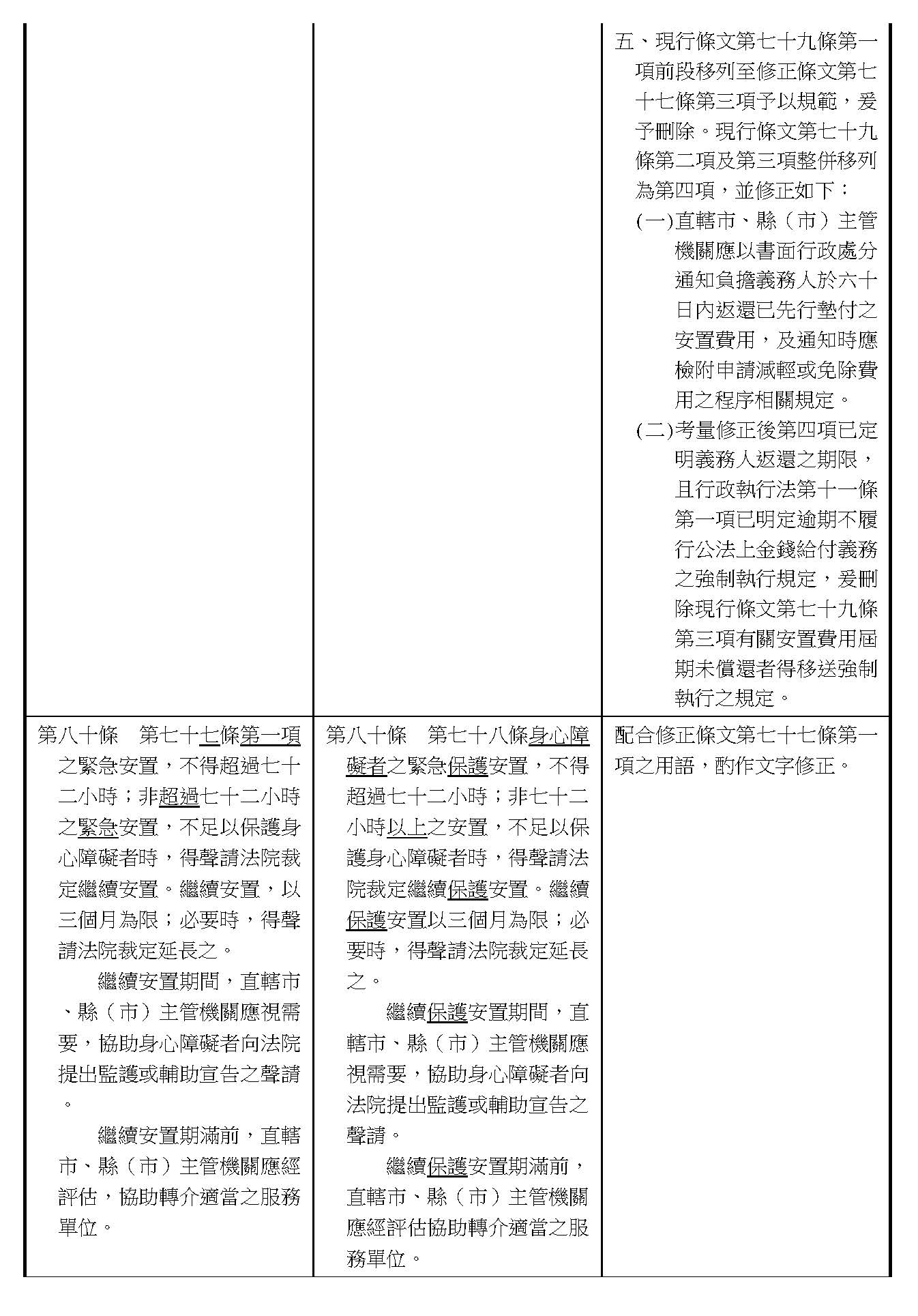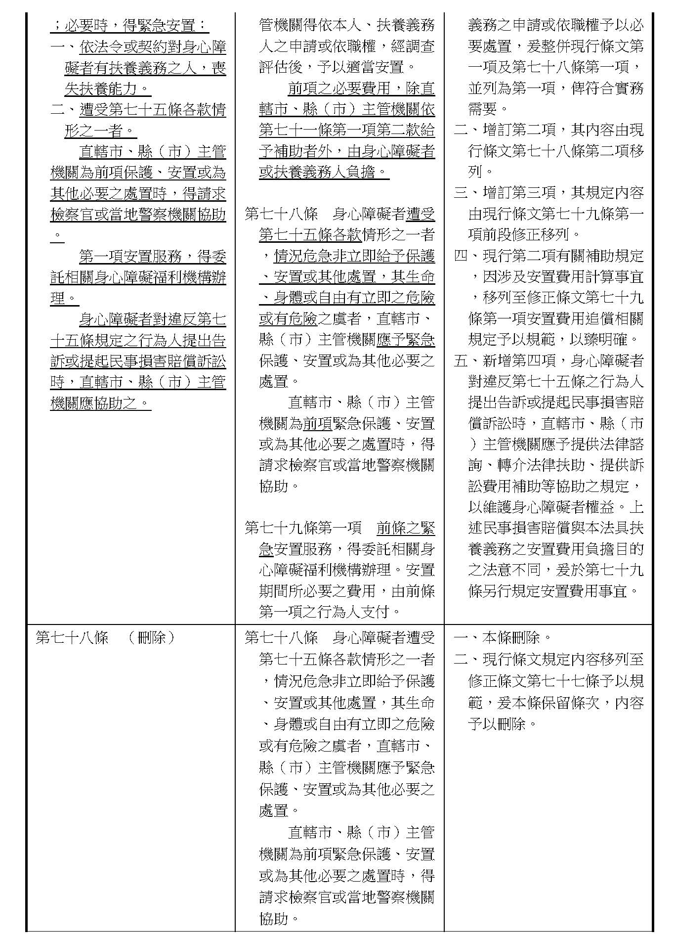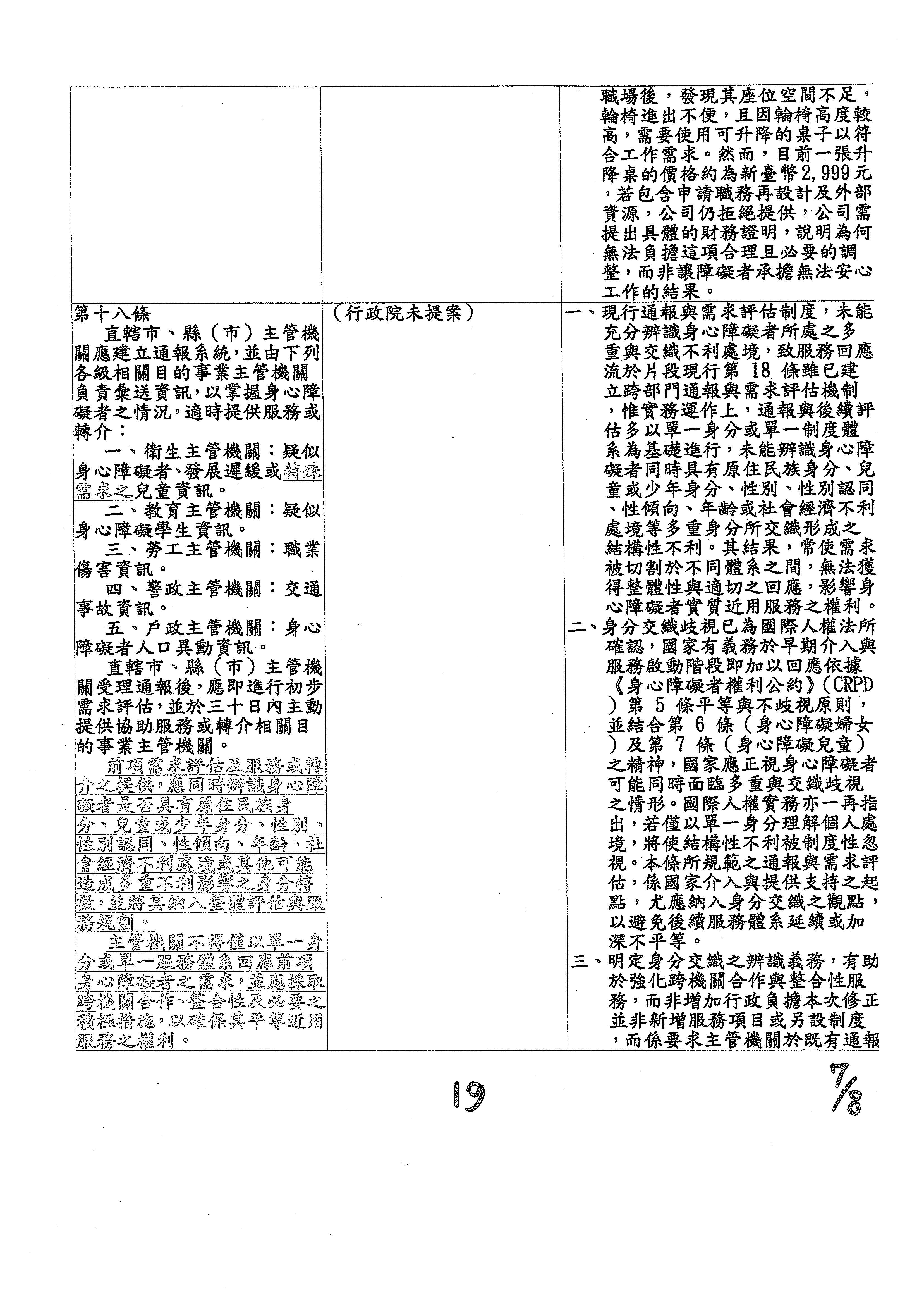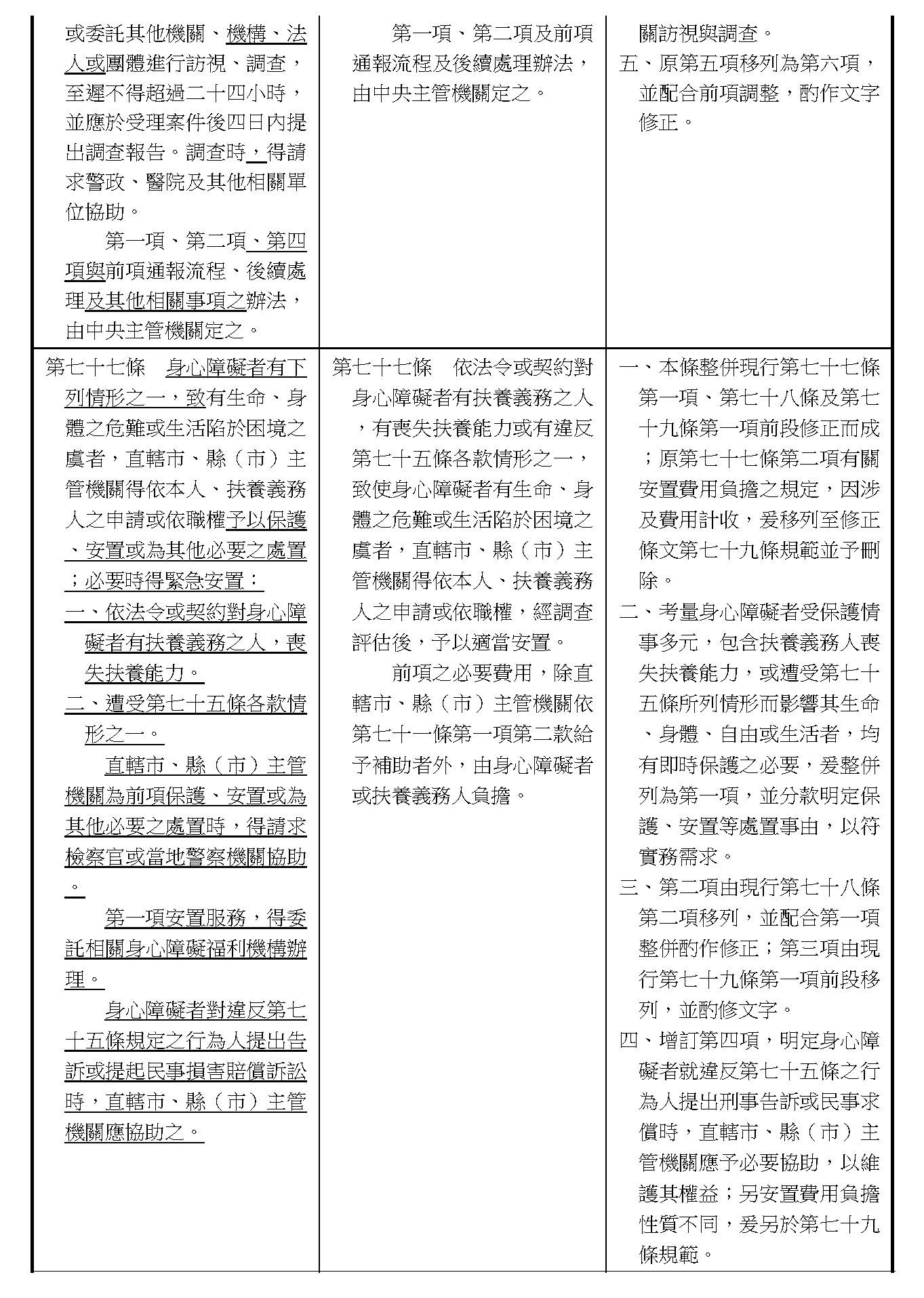周署長道君:各位委員所增訂這一章的部分,在行政院的版本目前並沒有額外去增訂這個章節。第四章之一的部分因為都是針對個人協助,委員的版本都要訂一個個別的專章。行政院版本的部分的話,在這個條文的建議,我們會在第五十條之後有一個條文要做相關不同的處理,所以我們建議這個部分是不是不予增列?以上。