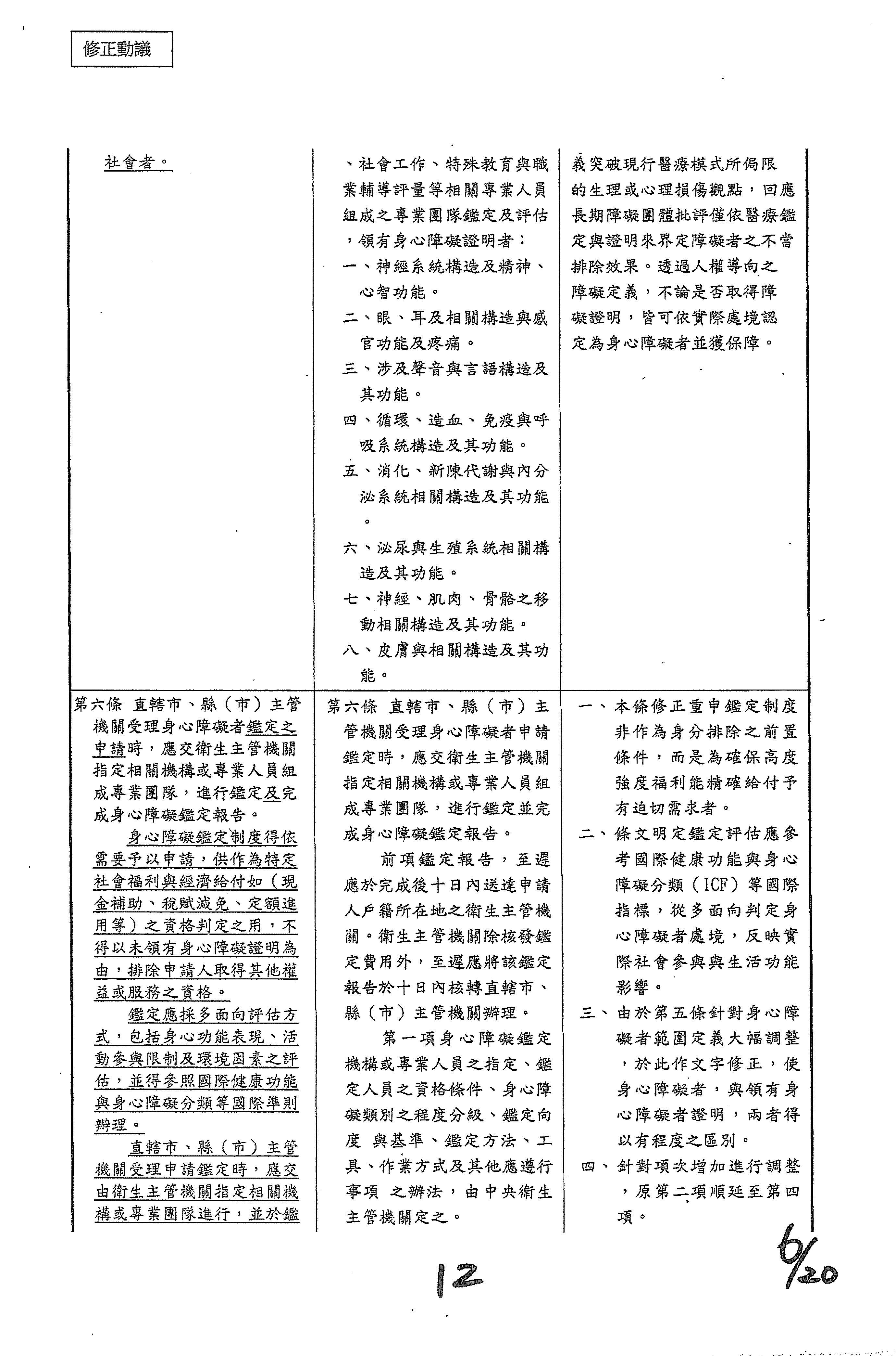 (六)委員陳冠廷等20人擬具「身心障礙者權益保障法第二條、第五十三條及第九十九條條文修正草案」案。